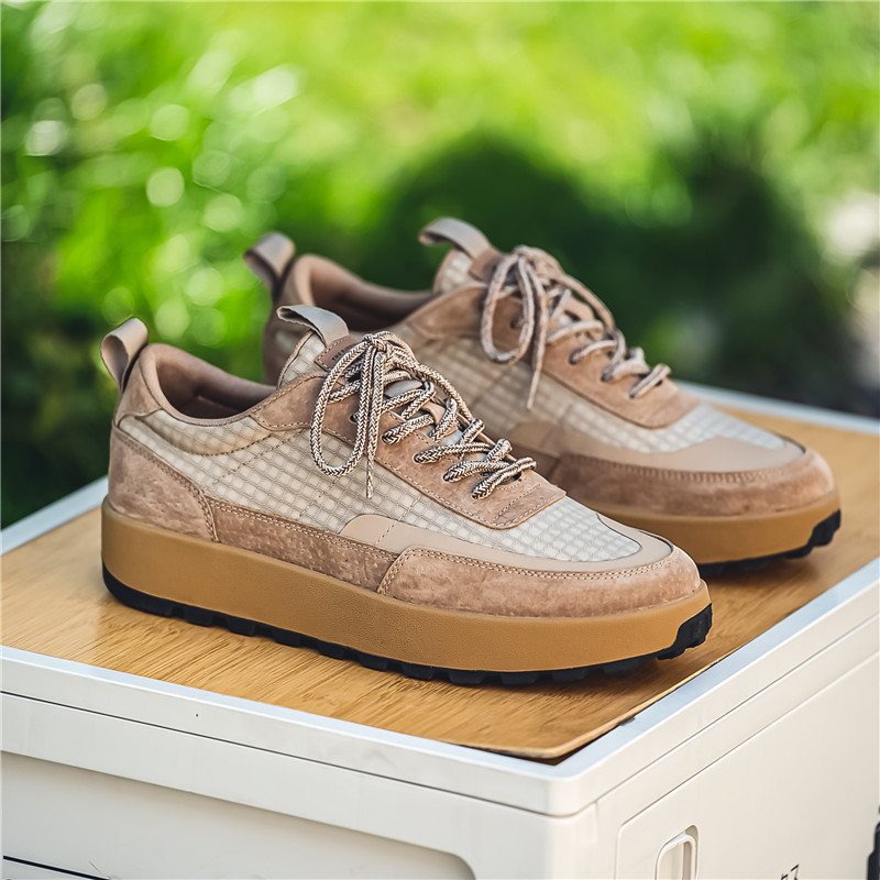 여름 통기성 메쉬 남성 신발 2024 새로운 빈티지 조깅 신발 스포츠 로우 탑 캐주얼 신발 두꺼운 단독 미끄럼 방지 보드 신발스토어 가기