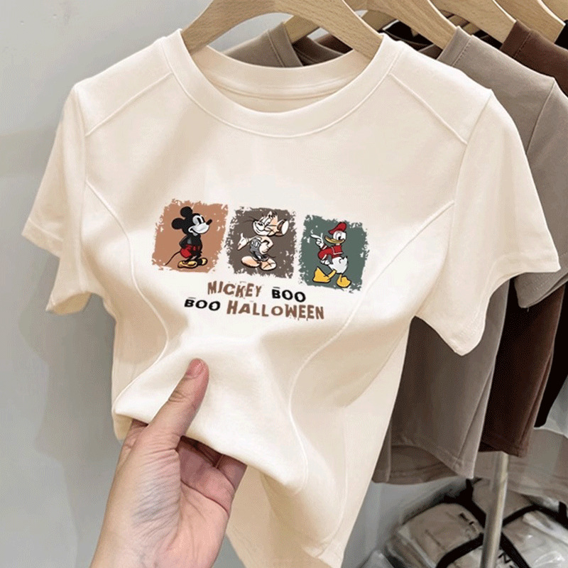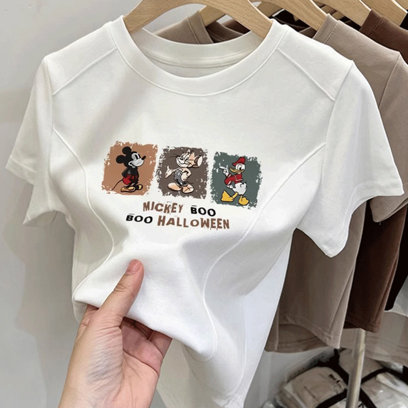 여성용 여름용 오버사이즈 디자인의 유럽풍 반팔 티셔츠, 허리를 잘록하게 잡아주는 불규칙한 피쉬본 디자인의 라운드넥 상의스토어 가기
