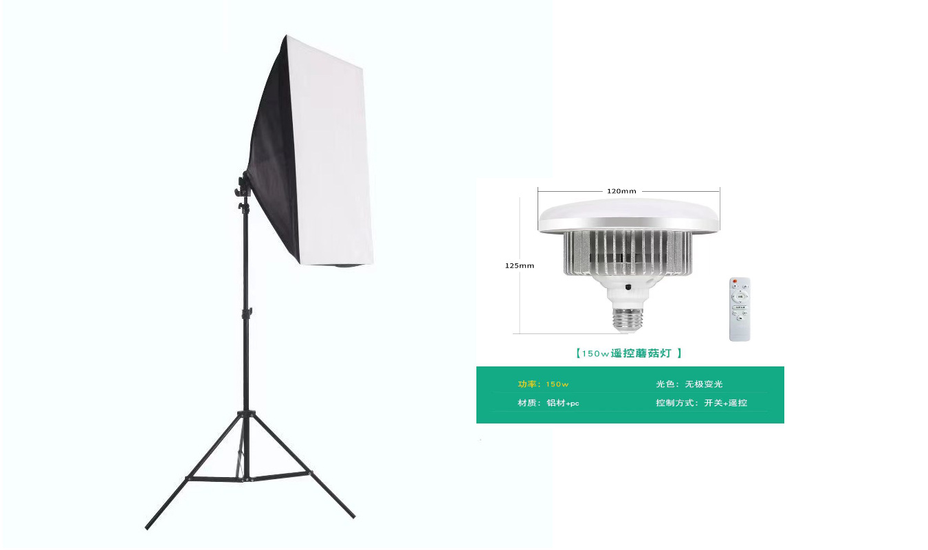 • 정사각형 소프트 박스 + 2m 라이트 스탠드 + 150W 3색 원격 제어 사진 조명