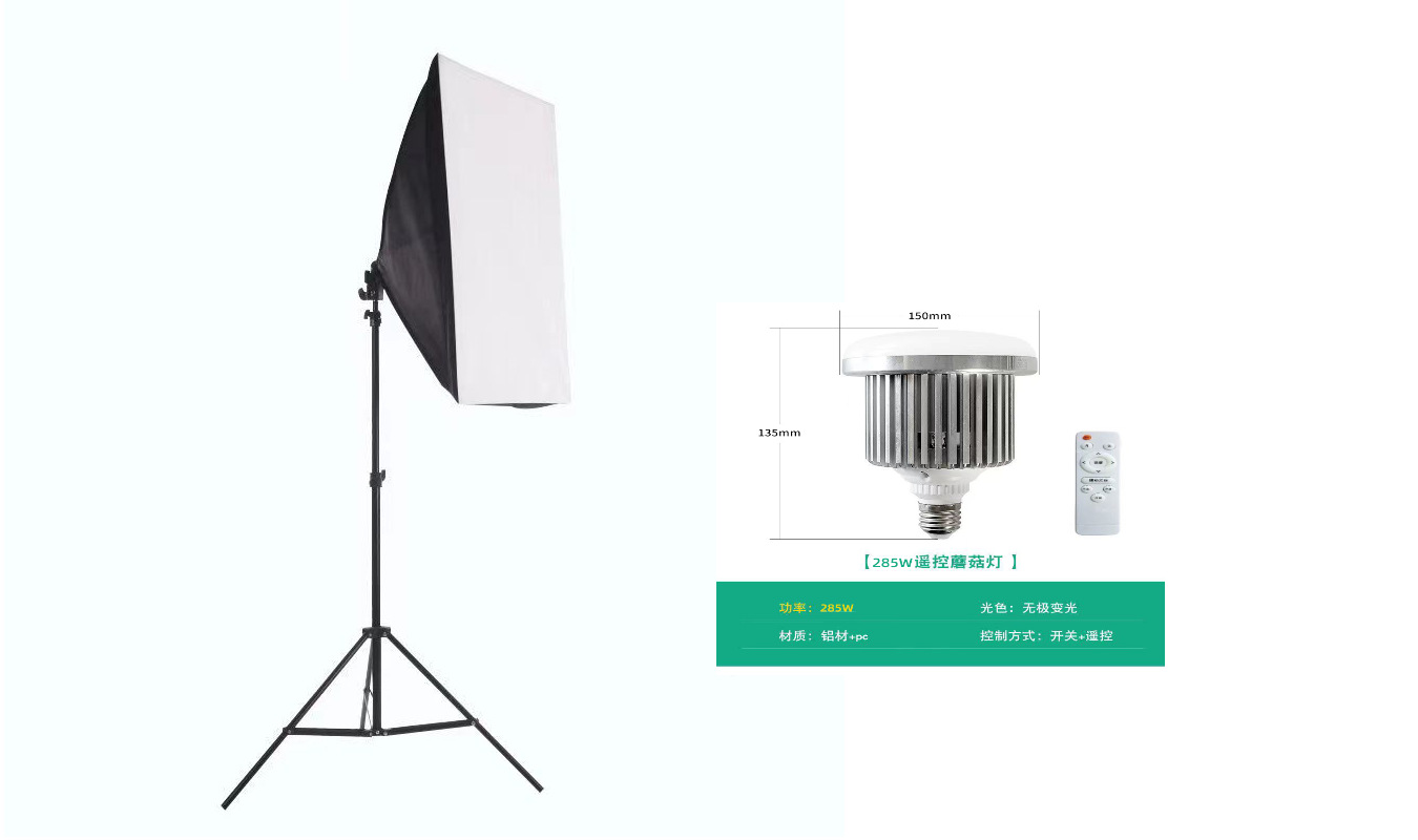 • 정사각형 소프트 박스 + 2m 라이트 스탠드 + 285W 3색 원격 제어 사진 조명