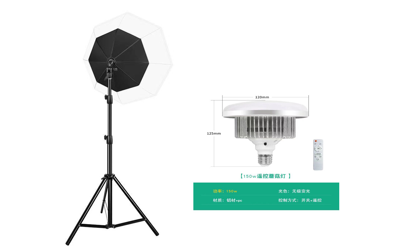 • 팔각형 소프트 박스 + 2m 라이트 스탠드 + 150W 3색 원격 제어 사진 조명