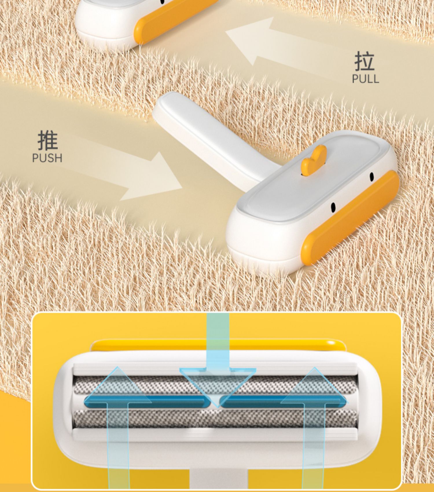 • ✾※※※※✾작은 노란 오리 + 오른손 빗질 및 고양이 빗질 장갑 [빗질과 끈끈한 털 조합]✾※※※※✾