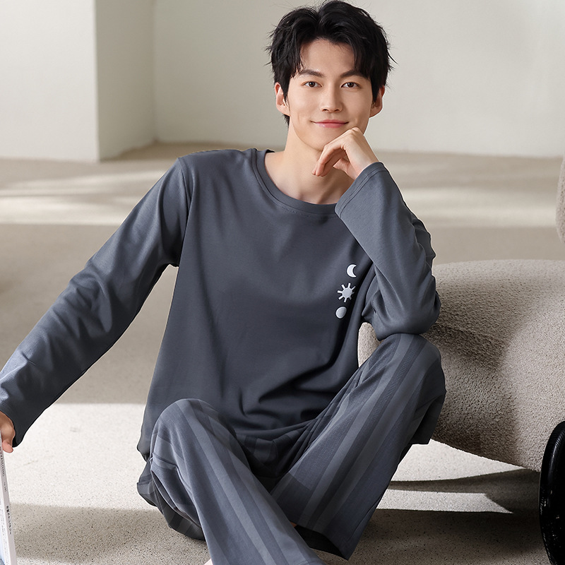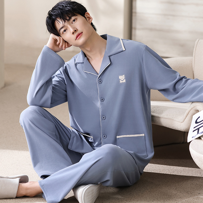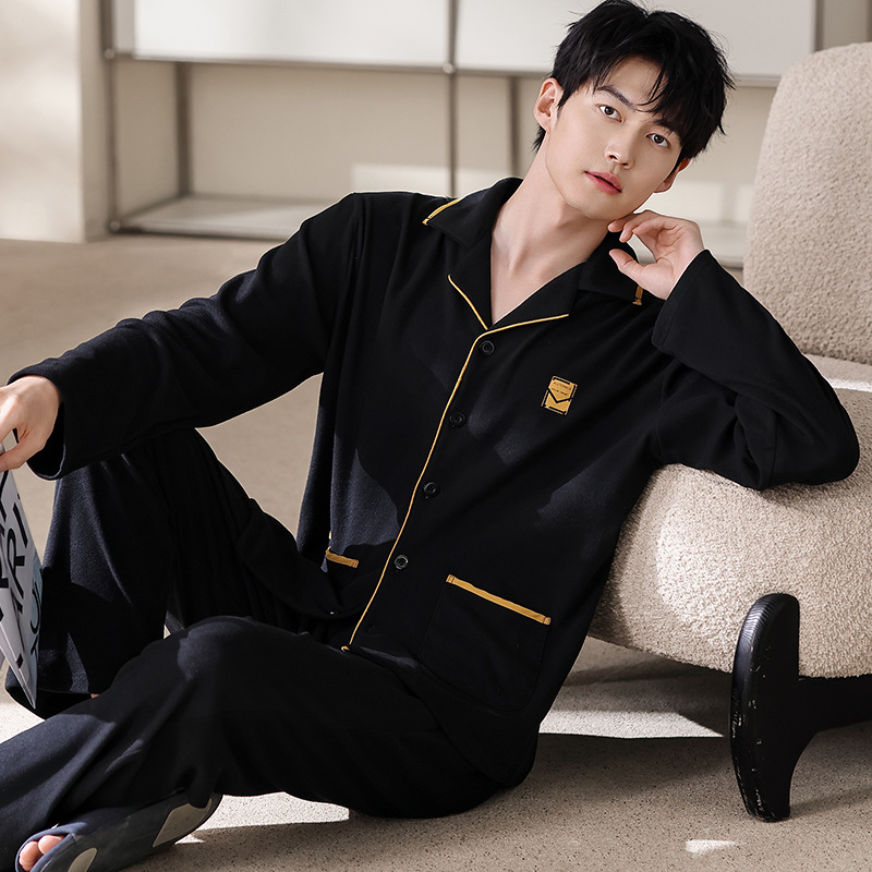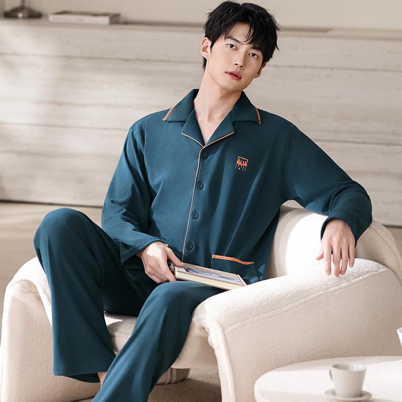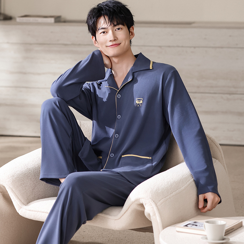 남성용 모달 긴팔 긴바지 잠옷, 남성용 얇은 겨울용 고품질 긴팔 세트, 홈웨어, 트렌디스토어 가기