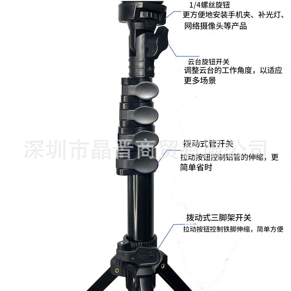 可拆卸和可扩展三脚架,支持视频录制,适用于手机、小型单反和各类运动相机。