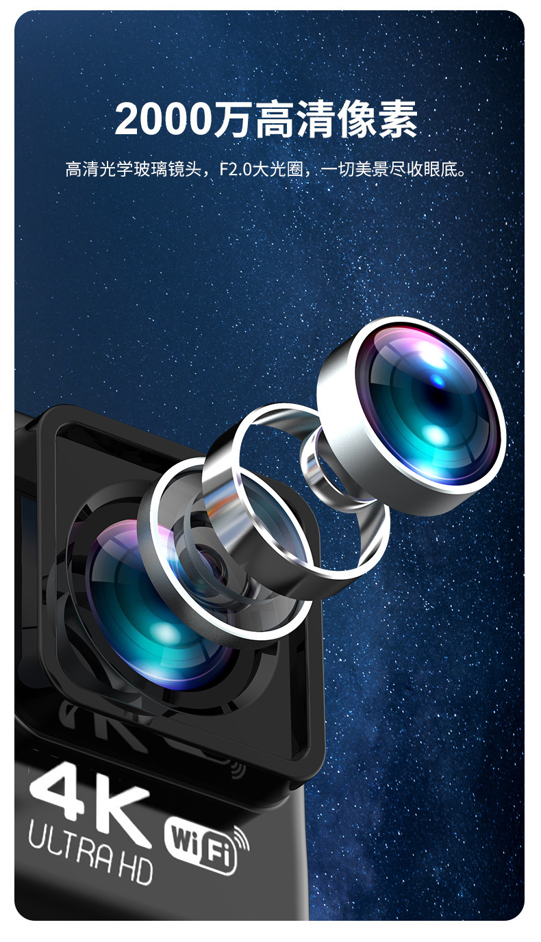 국경을 넘는 고화질 4K 듀얼 컬러 액션 카메라, 휴대용 소형 포켓형 야외용 학생용 공장 도매 수출용 소형 카메라