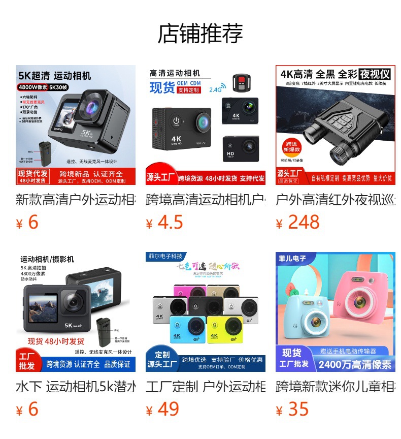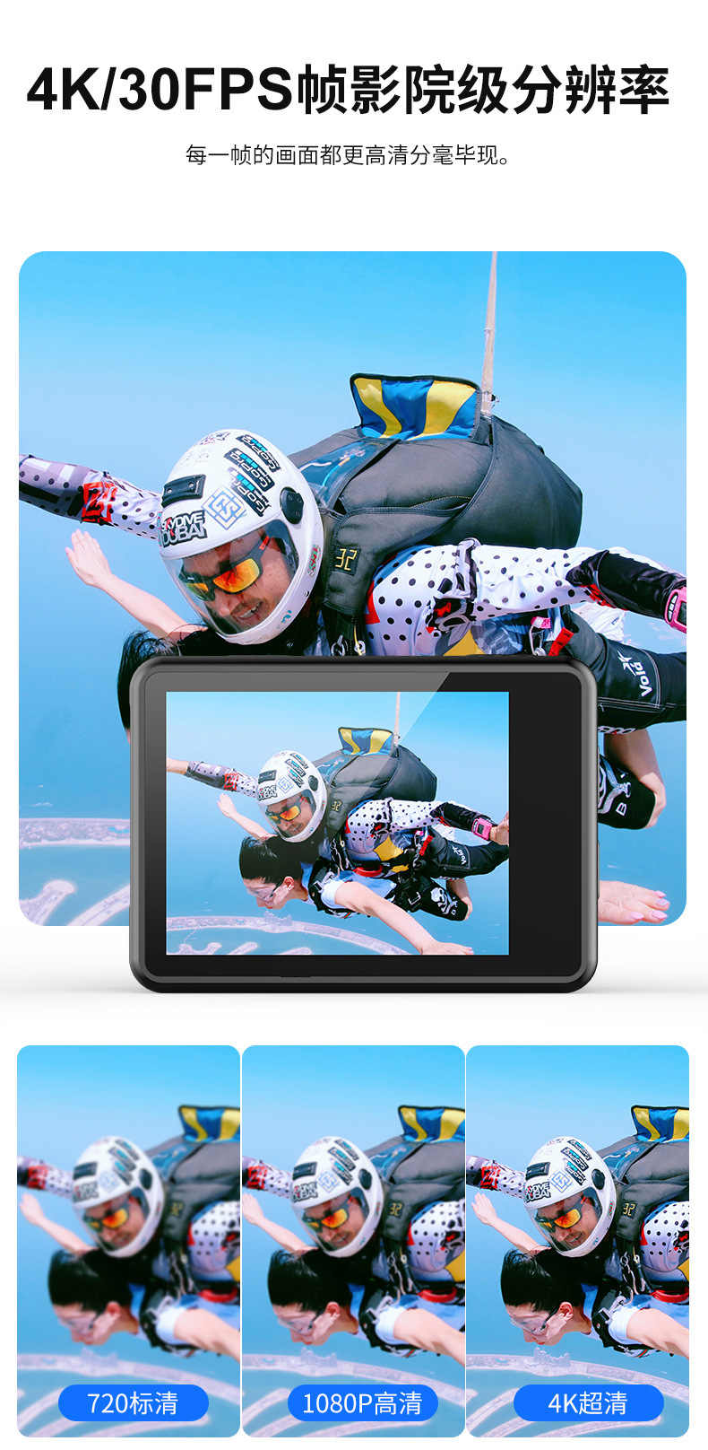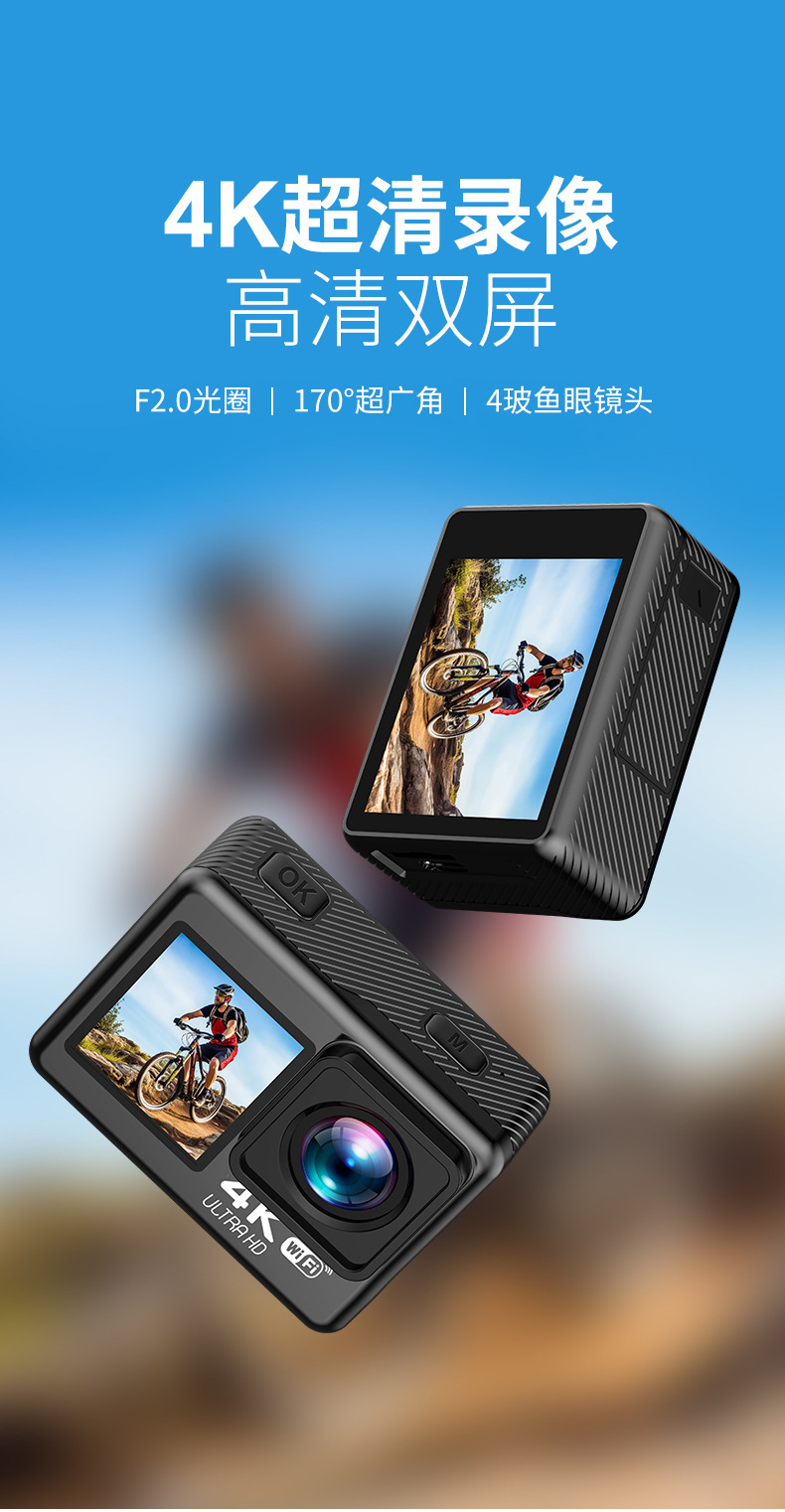 국경을 넘는 고화질 4K 듀얼 컬러 액션 카메라, 휴대용 소형 포켓형 야외용 학생용 공장 도매 수출용 소형 카메라스토어 가기