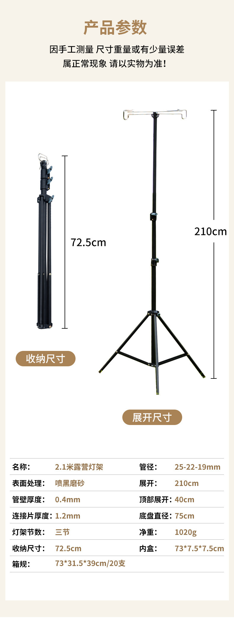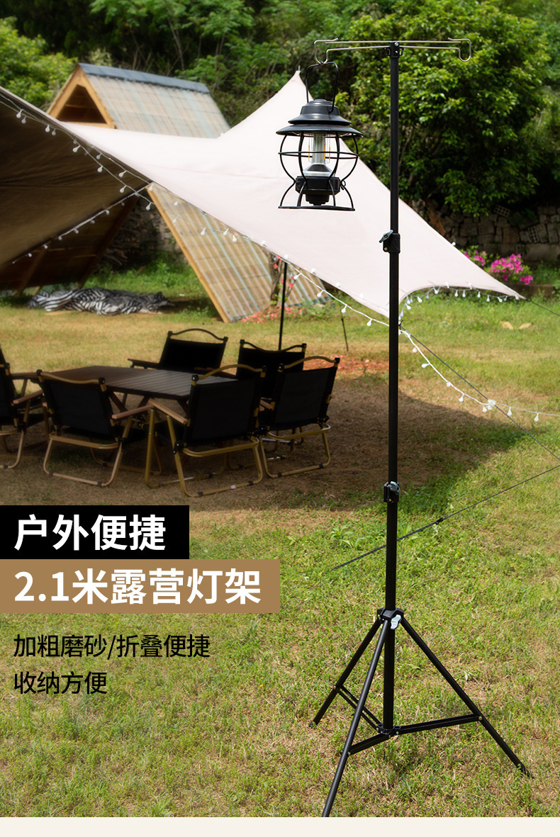 2.1m 합금봉 이중 후크 걸이형 조명 램프 스탠드, 바닥에 놓을 수 있는 접이식 텔레스코픽 삼각 램프 스탠드, 접이식 가능
