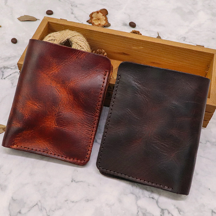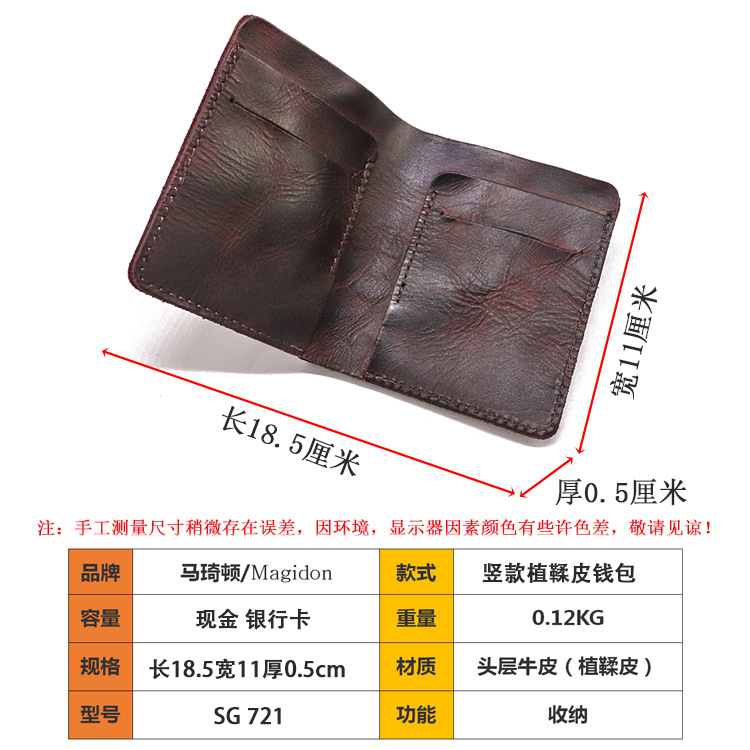 새로운 유행 야채 탄닝 가죽 탑 레이어 카우보이 지갑 남자의 수직 간단한 지갑 손으로 그린 빈티지 지갑스토어 가기