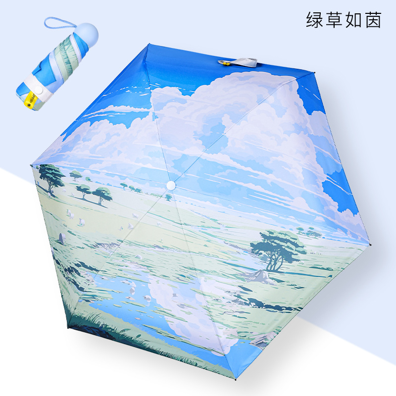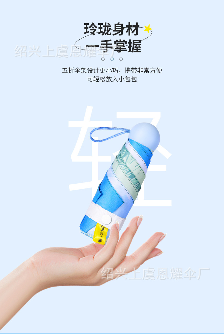 다섯 접힌 미니 우산 작은 휴대용 접히는 우산 태양 우산 자외선 차단 블랙 고무 햇빛 선 스크린 선 스크린 선 스크린 우산