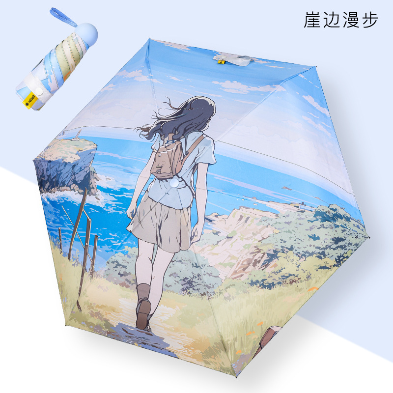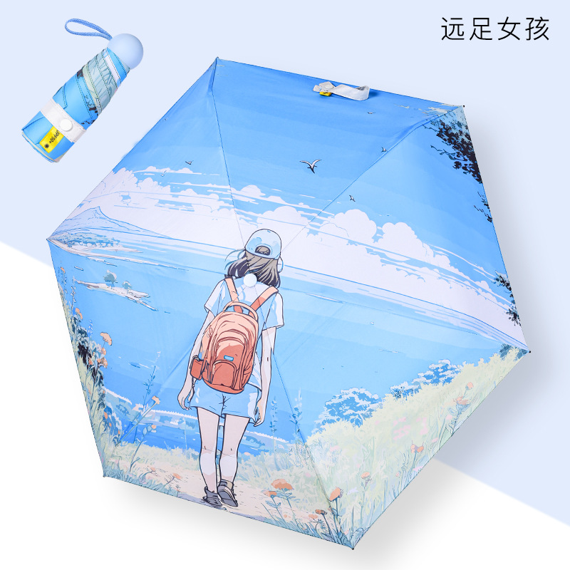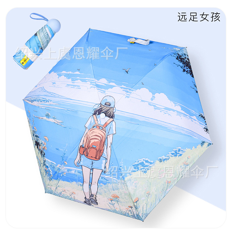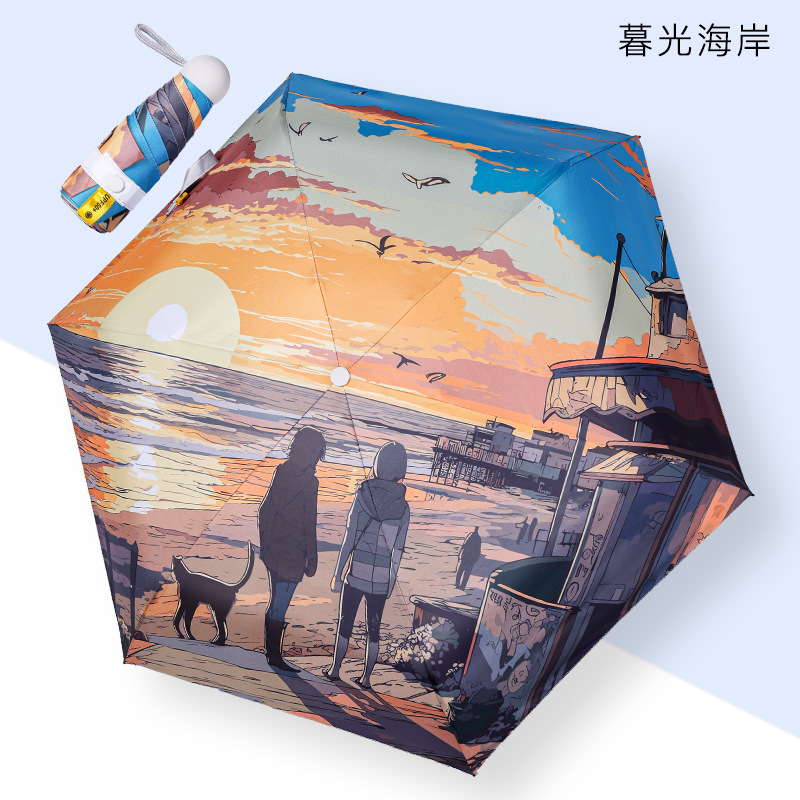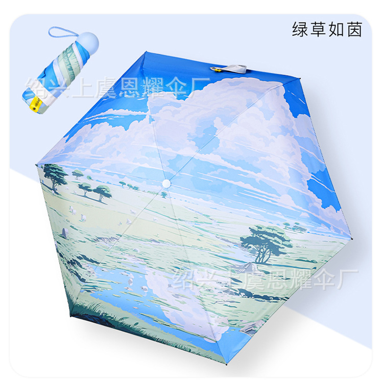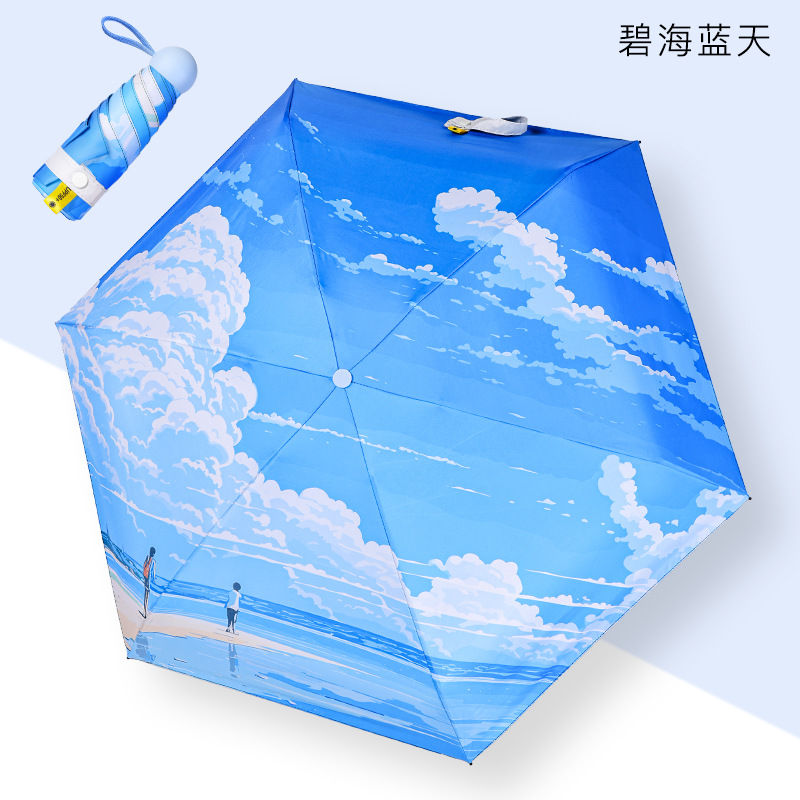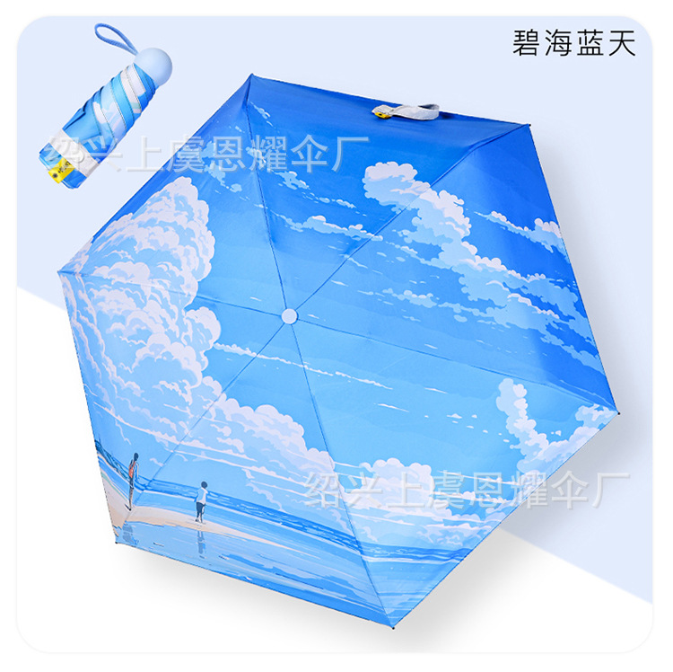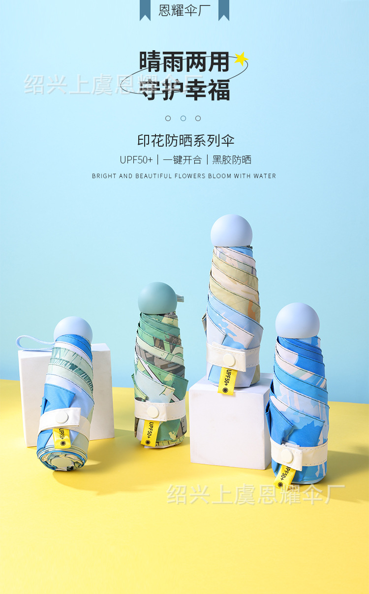 다섯 접힌 미니 우산 작은 휴대용 접히는 우산 태양 우산 자외선 차단 블랙 고무 햇빛 선 스크린 선 스크린 선 스크린 우산스토어 가기