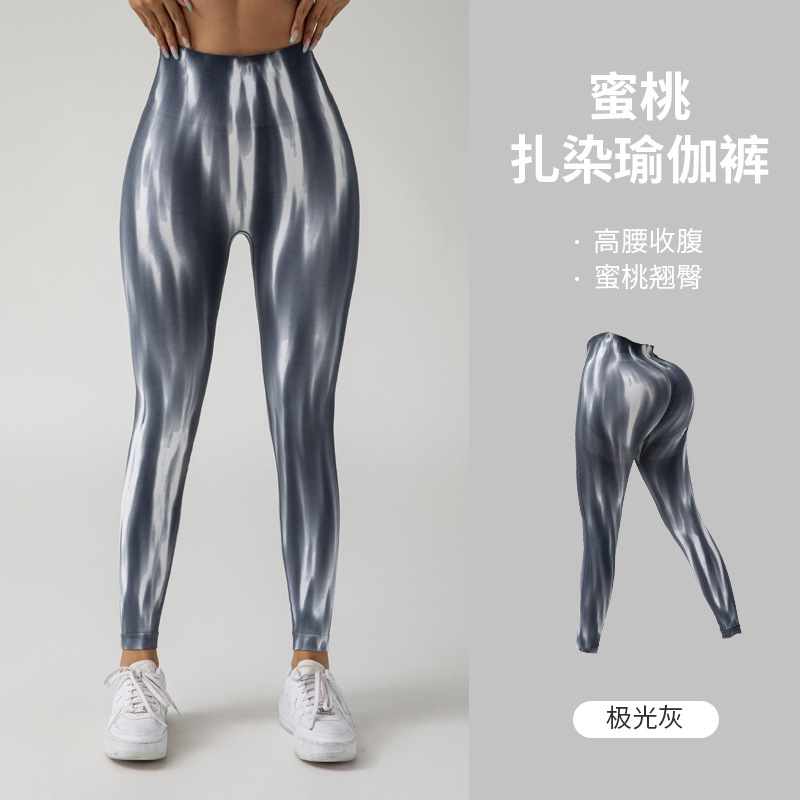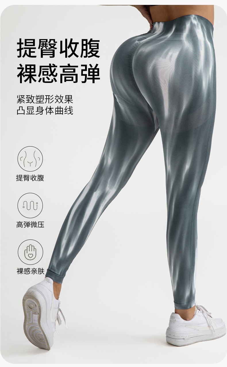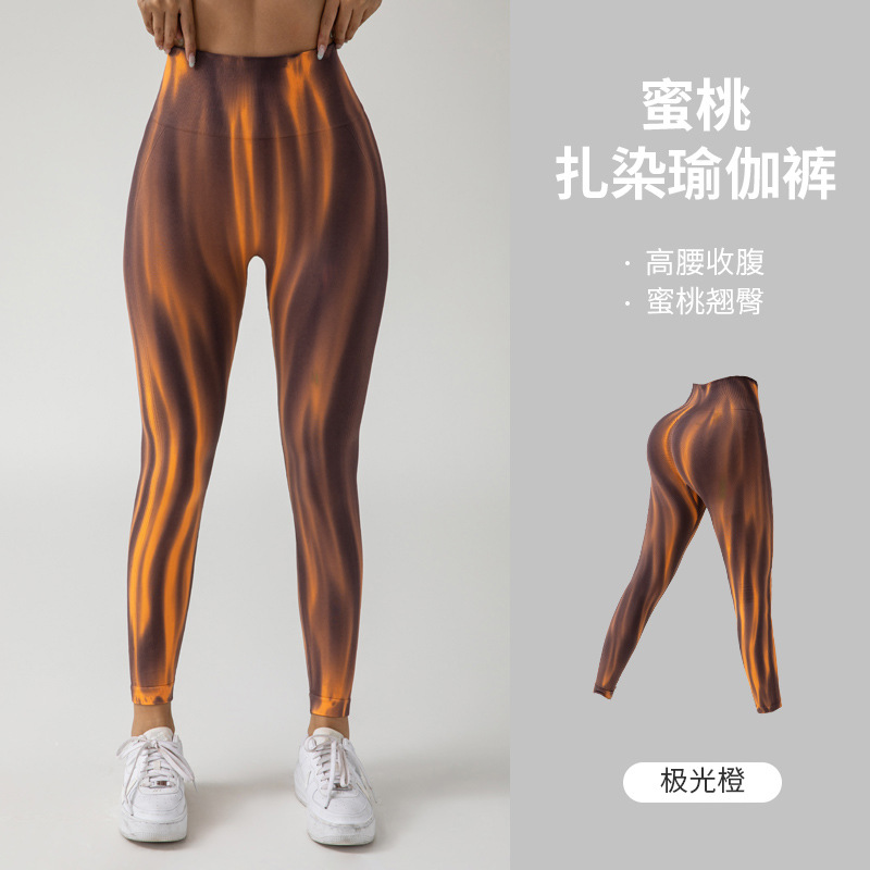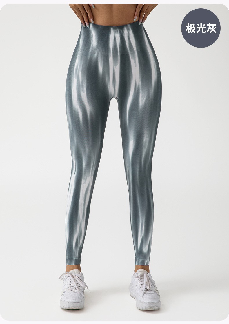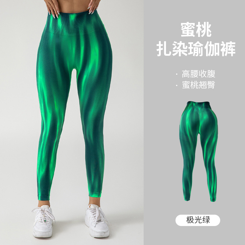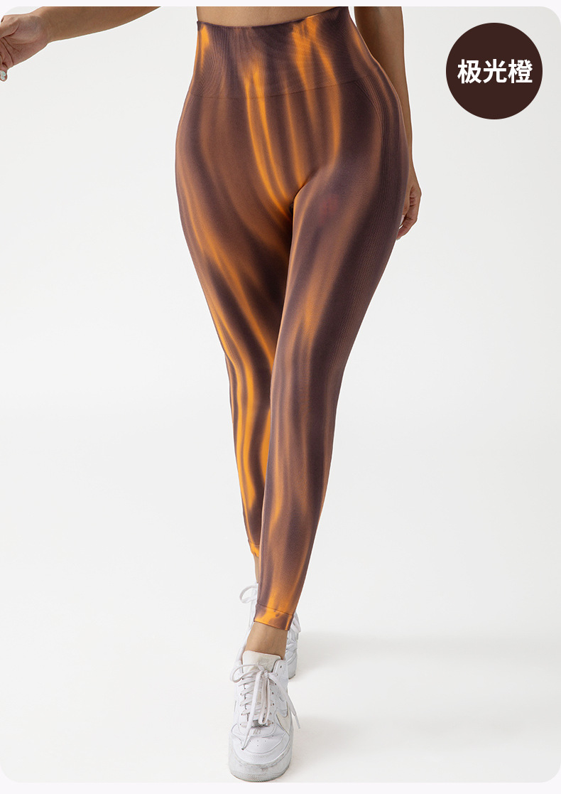 여름 폭발 천연 항균 넥타이 염색 오로라 원활한 기술 달리기 스포츠 피트니스 바지 복부 높은 탄성 요가 바지