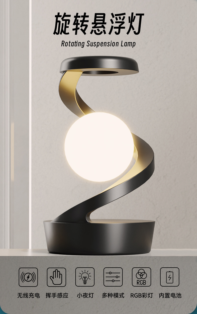 아마존 새로운 유도 책상 램프 시각적 서스펜션 회전 다채로운 분위기 램프 휴대 전화 무선 충전 야간 조명