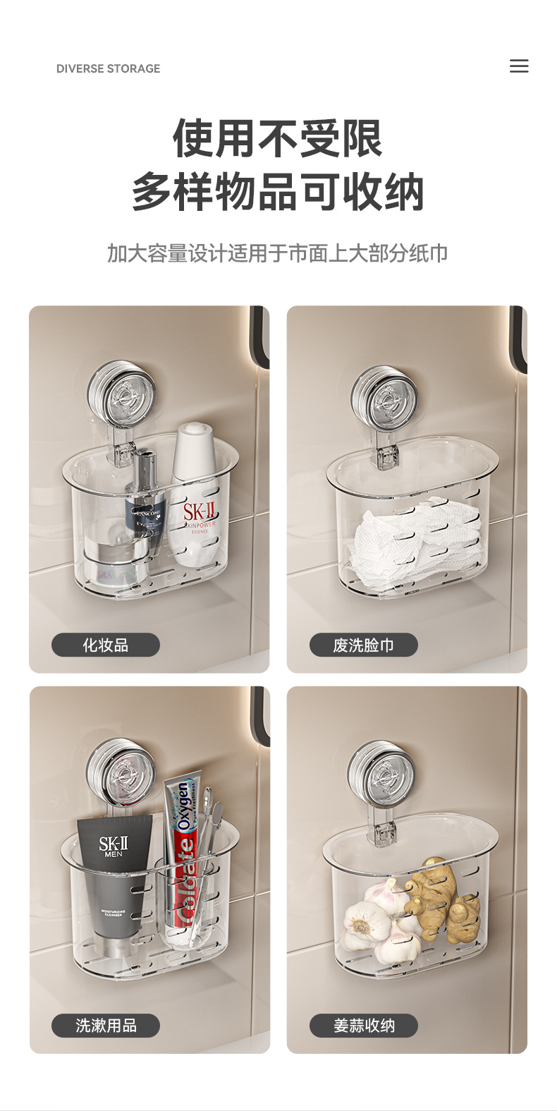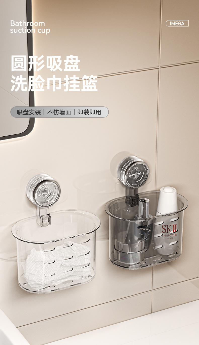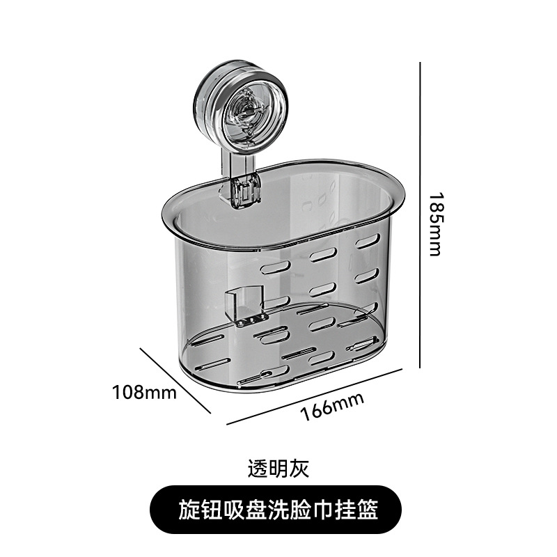 • 흡착컵 페이스 타올 걸이 바구니 [투명 그레이]