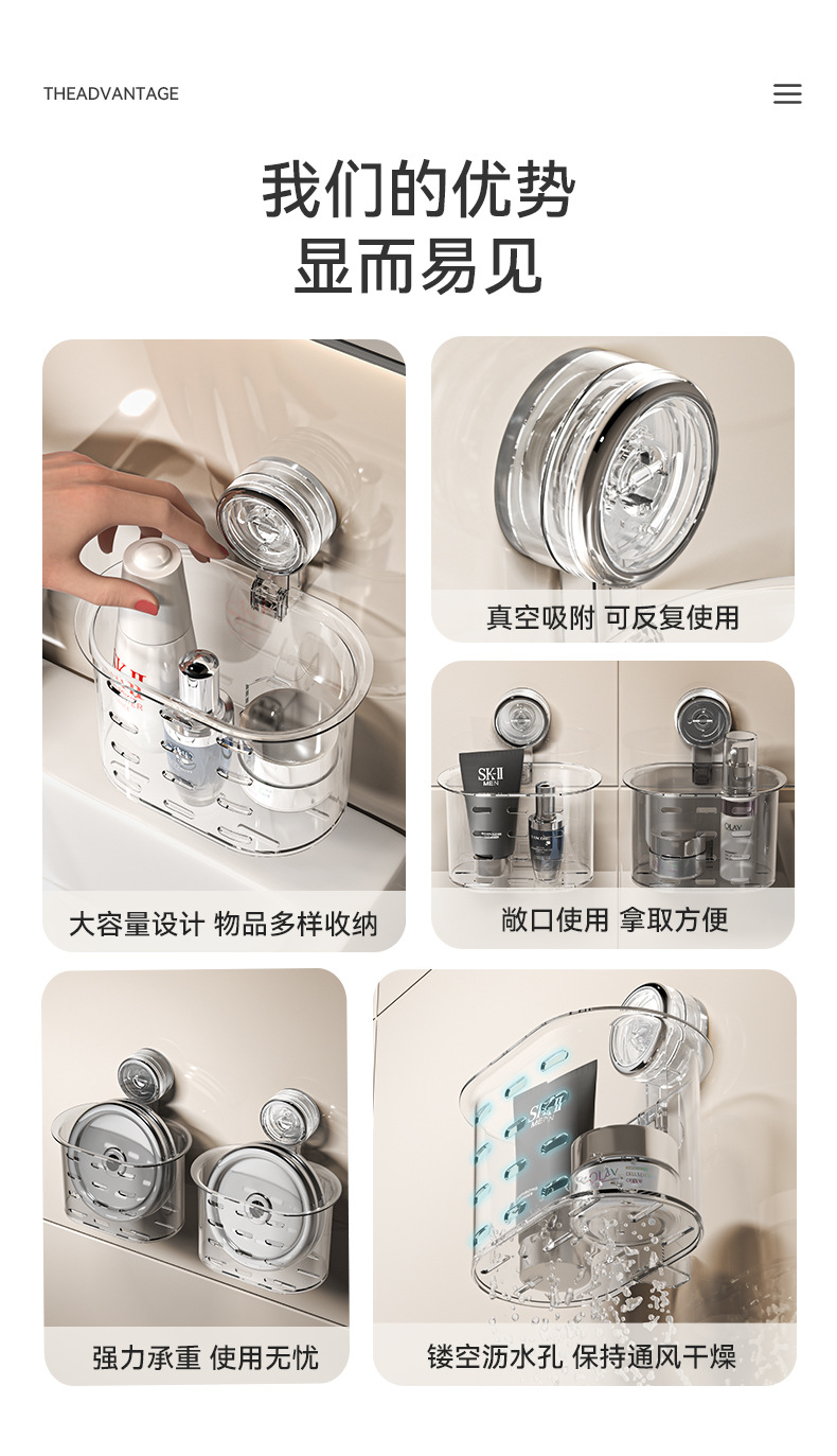 浴室收纳架 吸盘收纳架 浴室置物架 吸盘置物架 浴室免打孔吸盘置物架