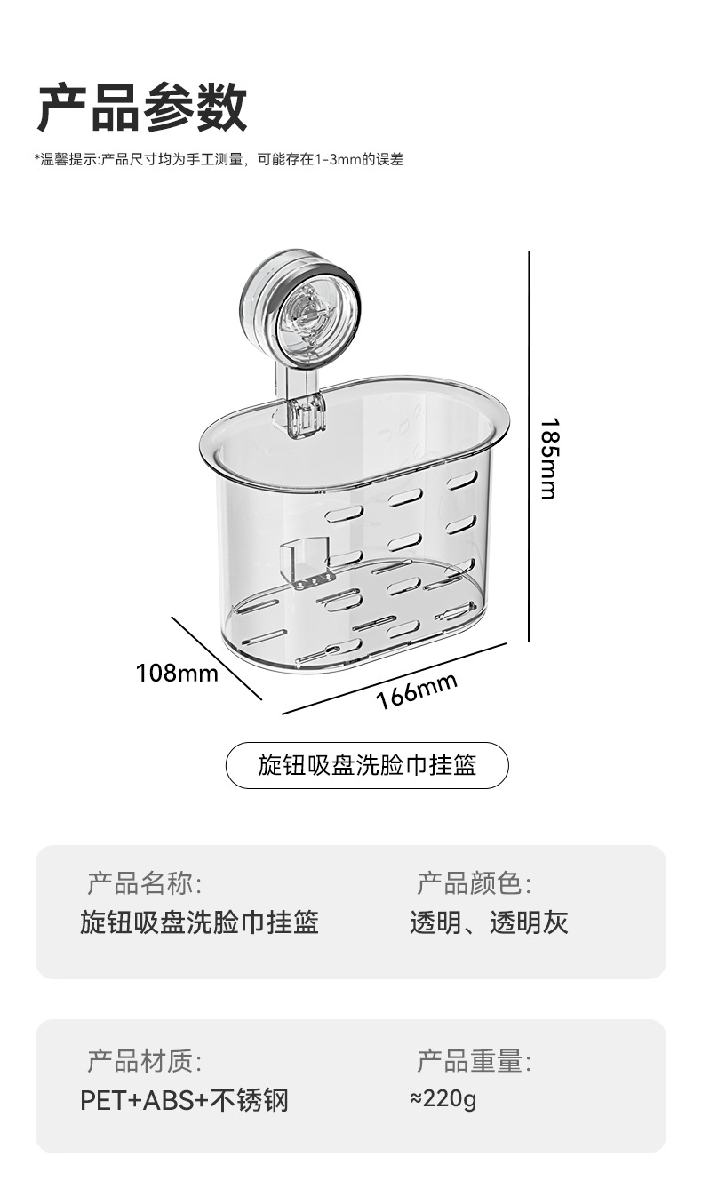 • 흡입 컵 세척 수건 매달려 바구니 [투명]]