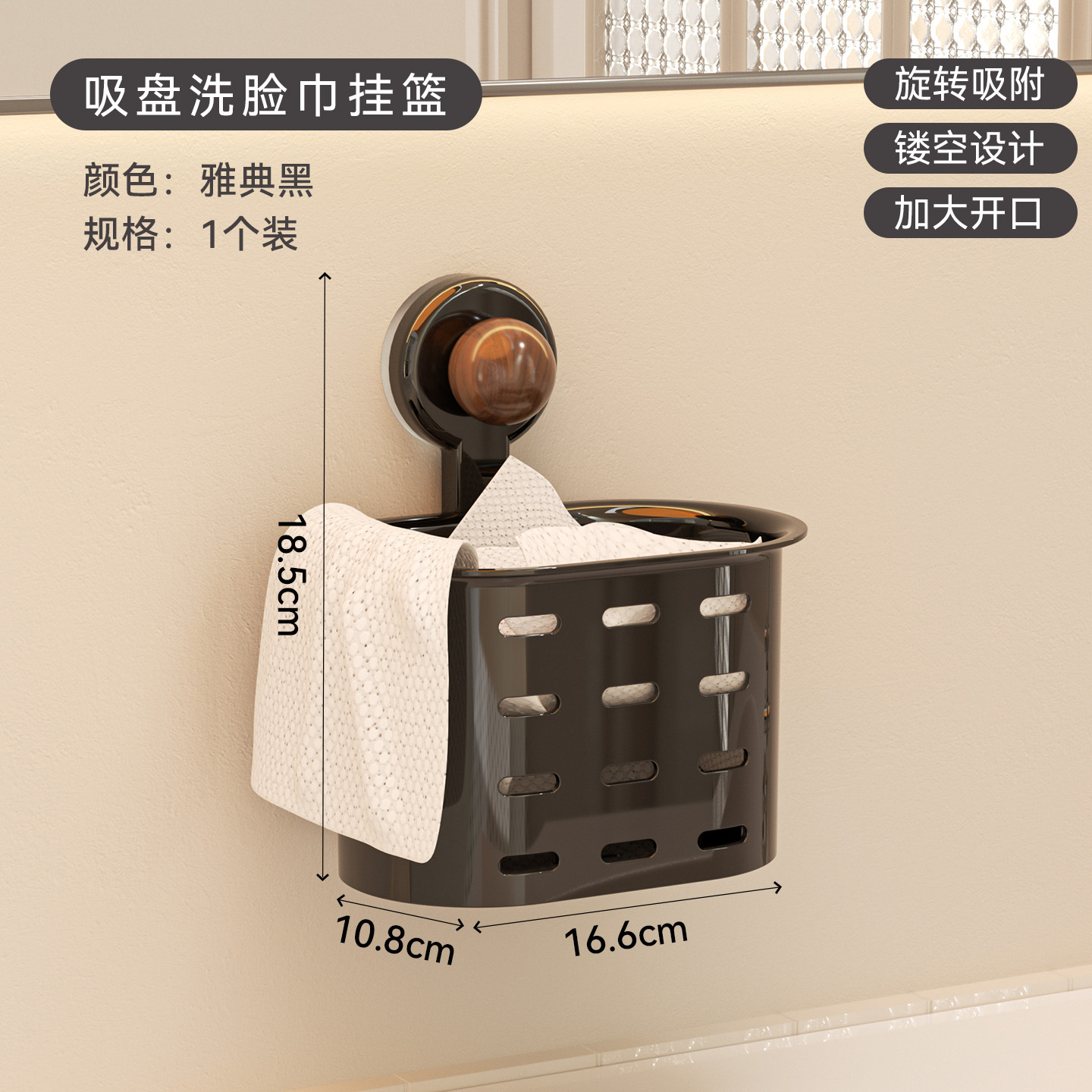 • 흡착컵 페이스타월 걸이바구니 [월넛블랙]