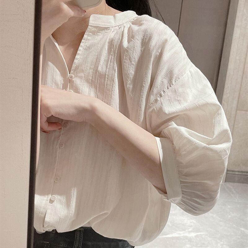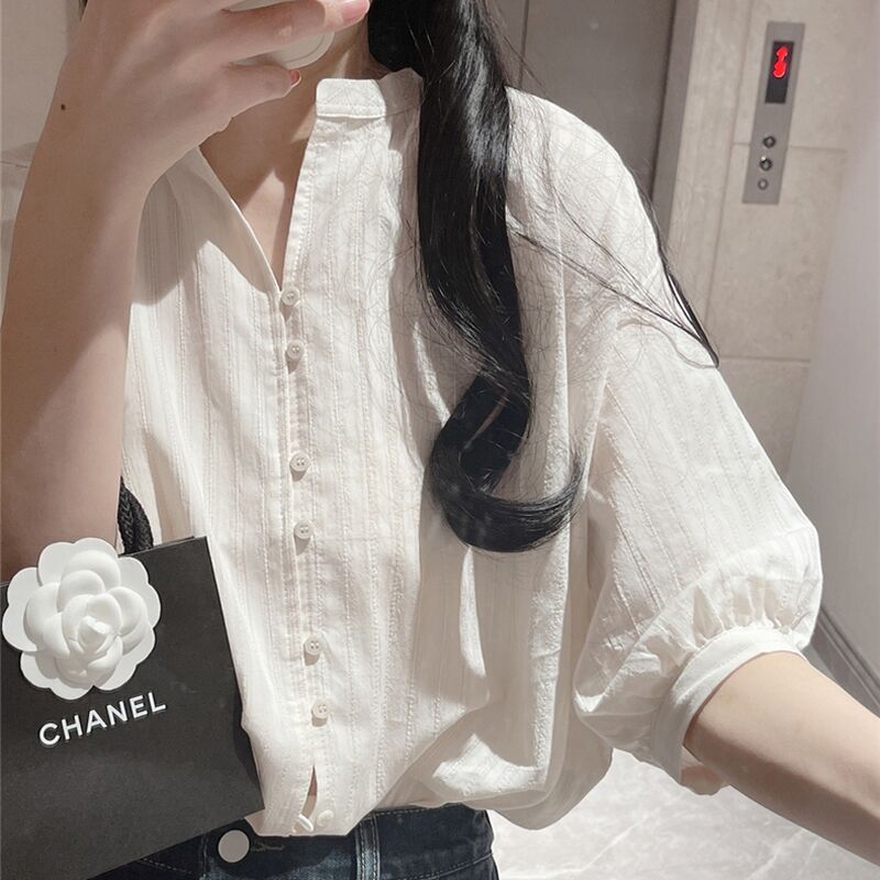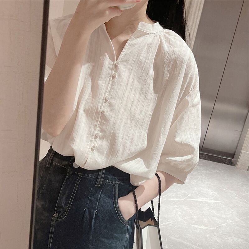 화이트 셔츠 여성용 1688 여름 신상 프렌치 스타일 루즈핏 탑 독특한 디자인의 반팔 셔츠 트렌디한 디자인
