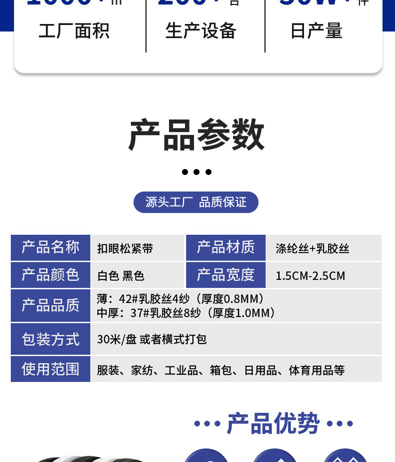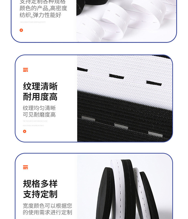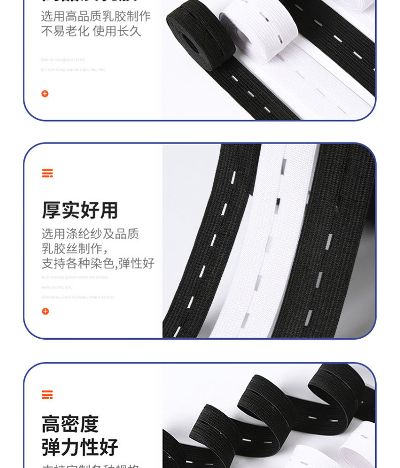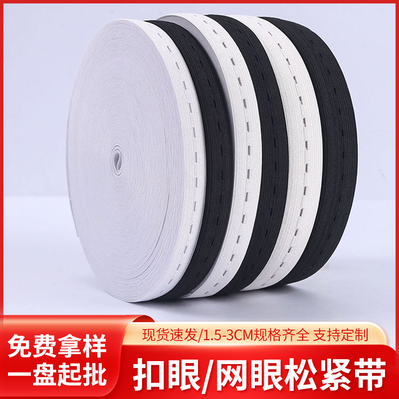 재고 공급 조절 가능한 단추 구멍 탄성 밴드 고무 밴드 흑백 버클 탄성 로프 어린이 바지 탄성 벨트