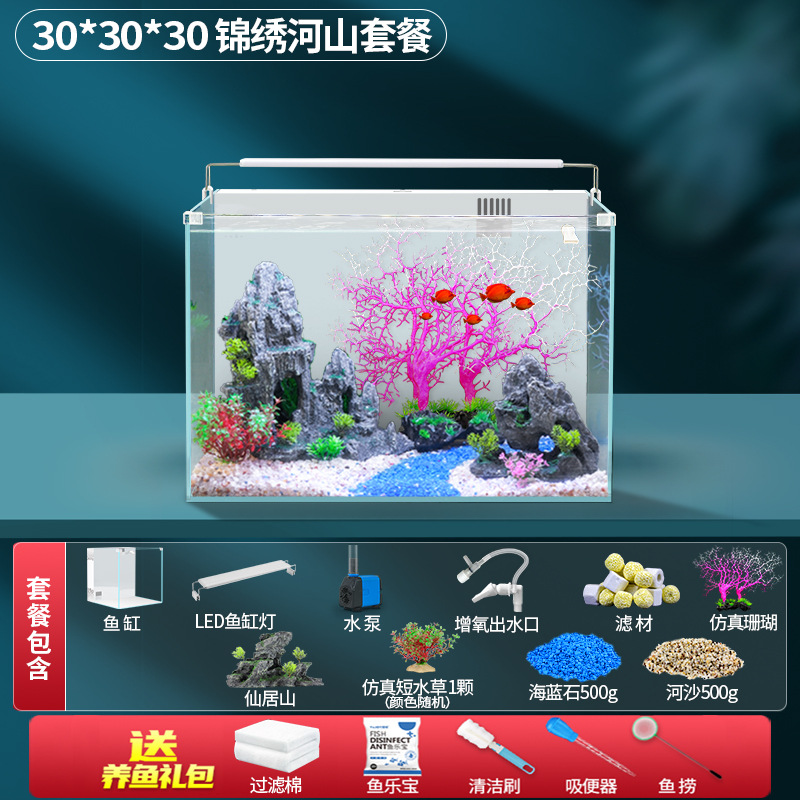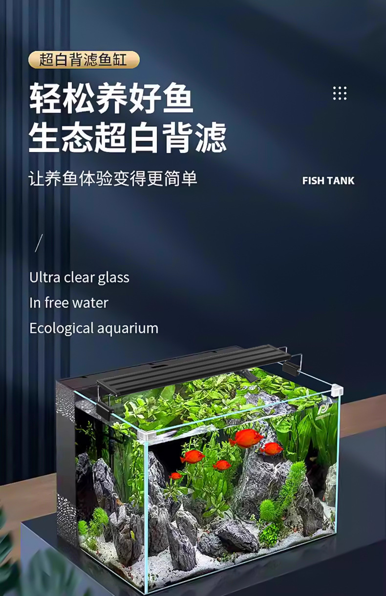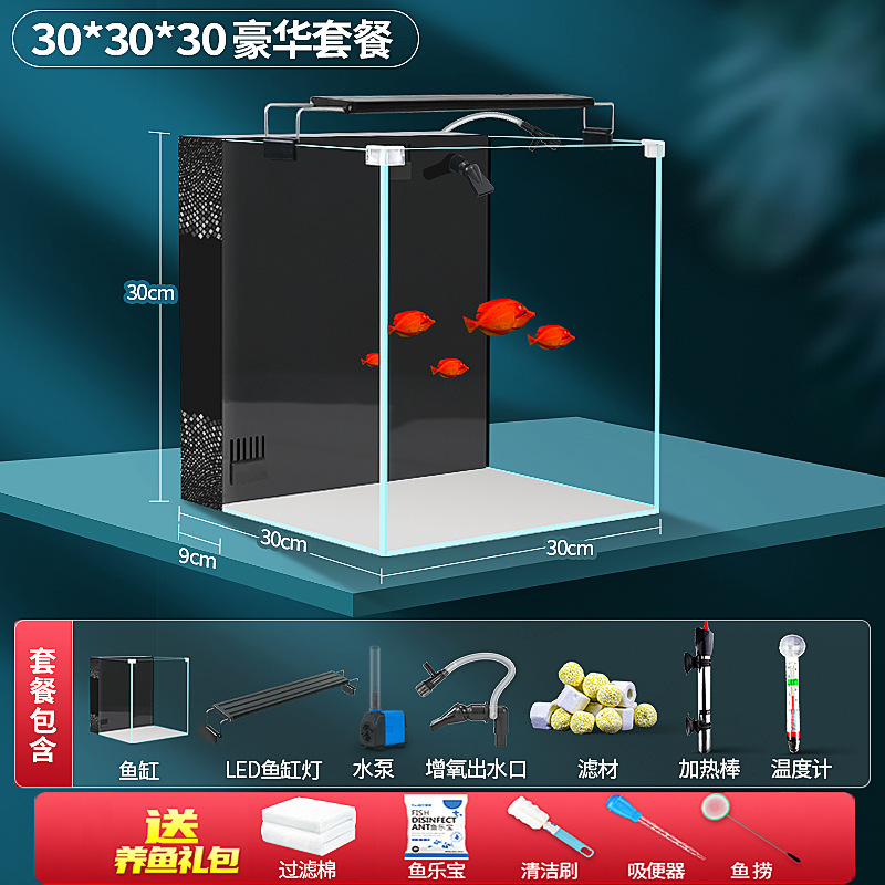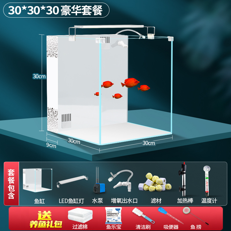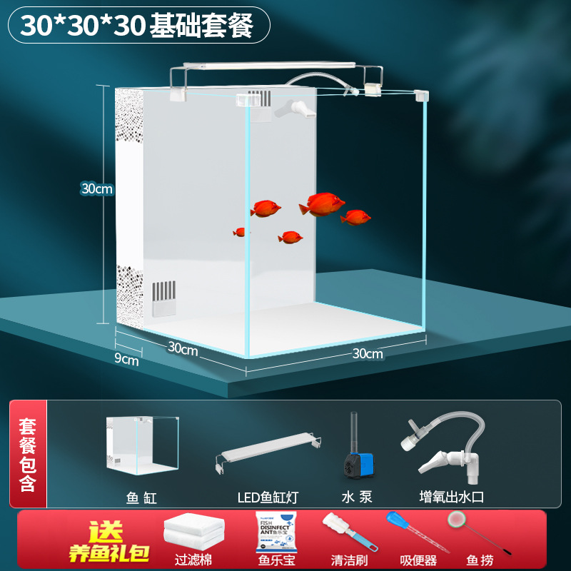 초백색 백 필터 어항 소형 거실 산소 생산을위한 자기 순환 생태 데스크탑 탱크 물고기 사육을위한 게으른 풍경 아쿠아 탱크