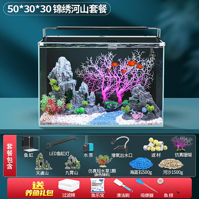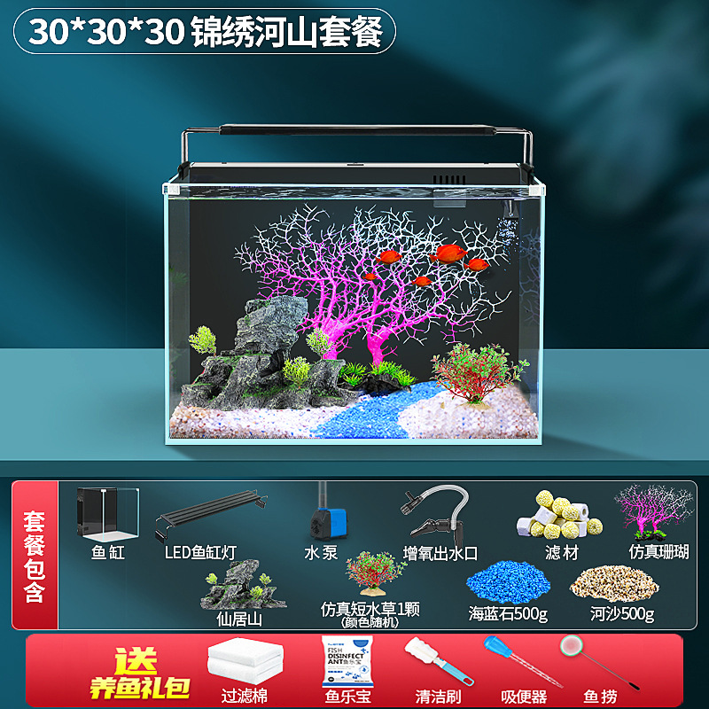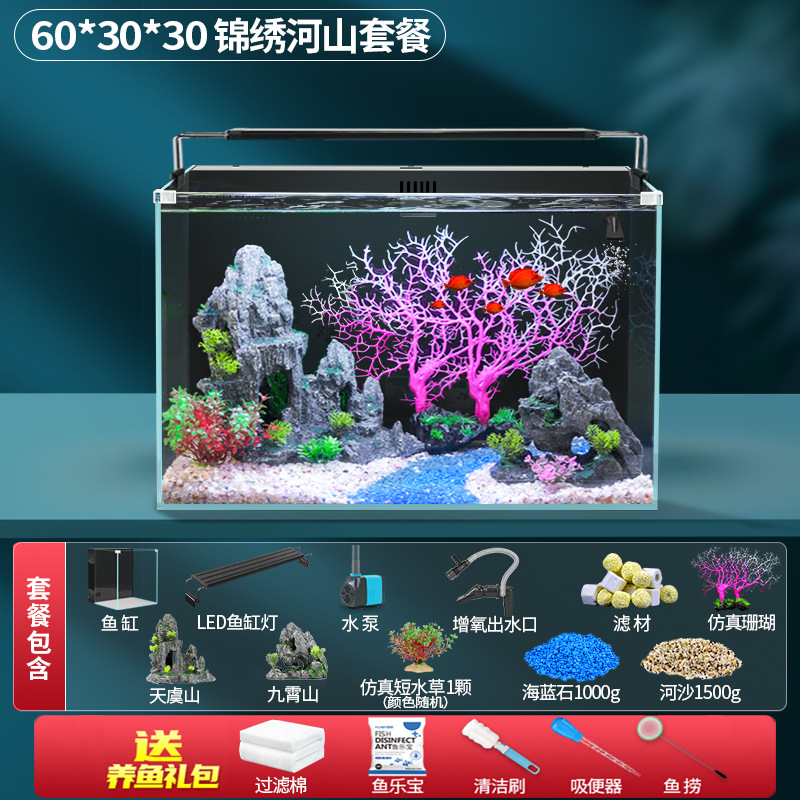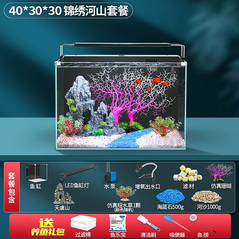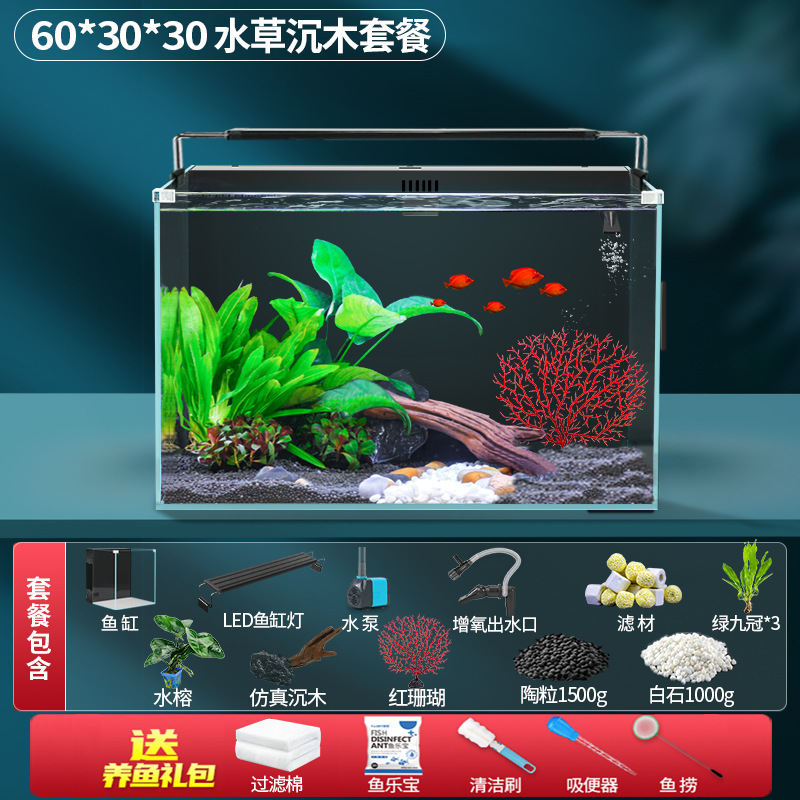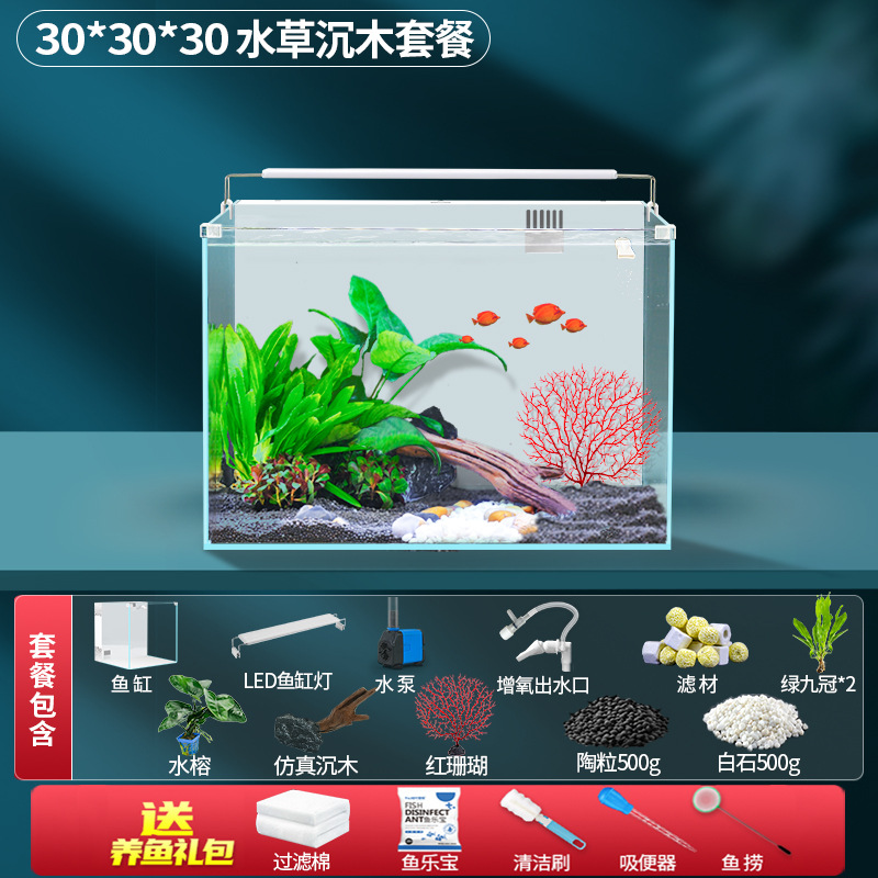 초백색 백 필터 어항 소형 거실 산소 생산을위한 자기 순환 생태 데스크탑 탱크 물고기 사육을위한 게으른 풍경 아쿠아 탱크