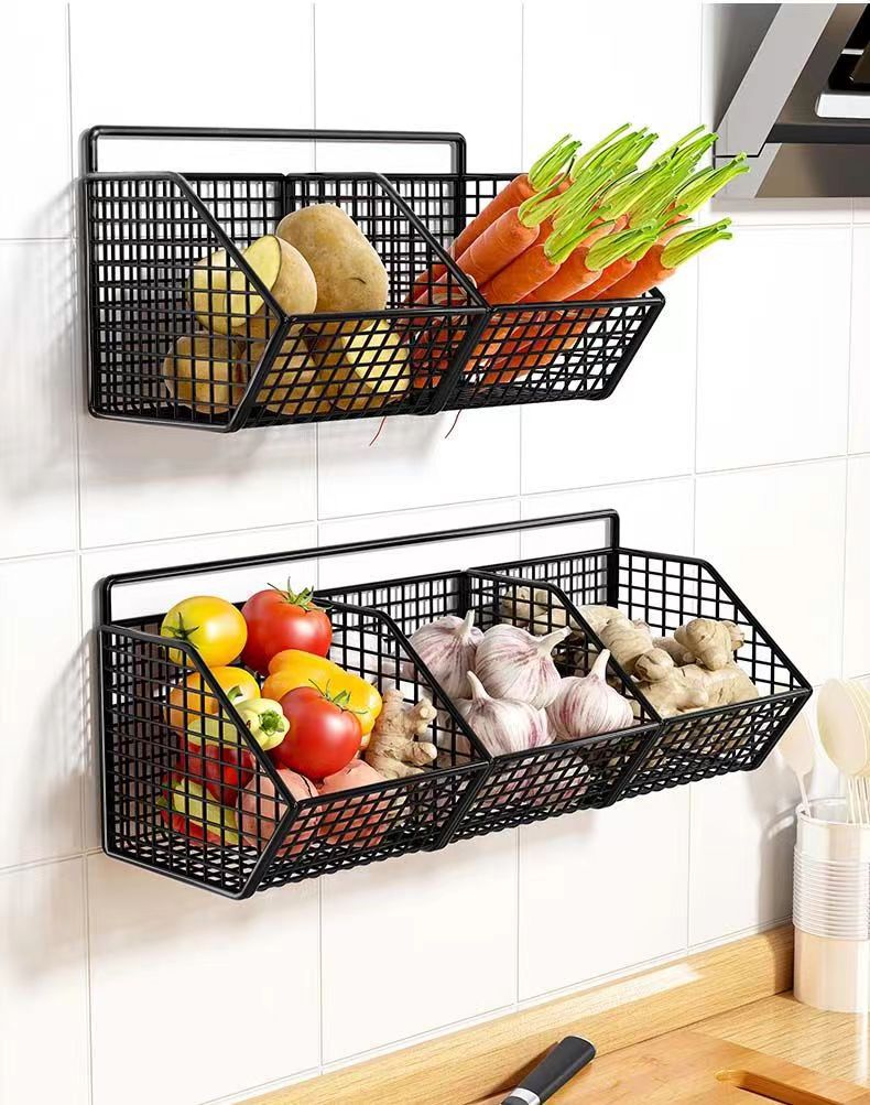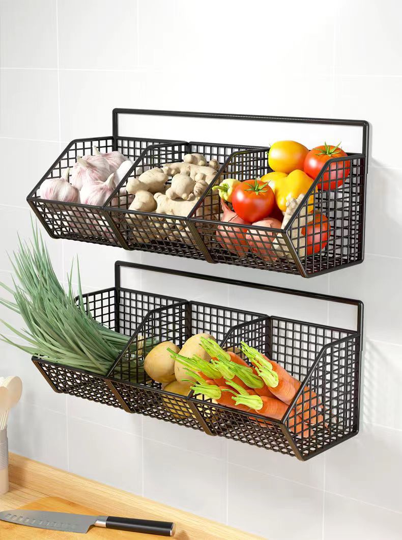 종아리, 생강 및 마늘 저장 바구니 주방 저장 선반 야채 바구니 생강과 마늘 교수형 바구니 벽 매달린 향신료 상자 벽 교수형 아티팩트스토어 가기