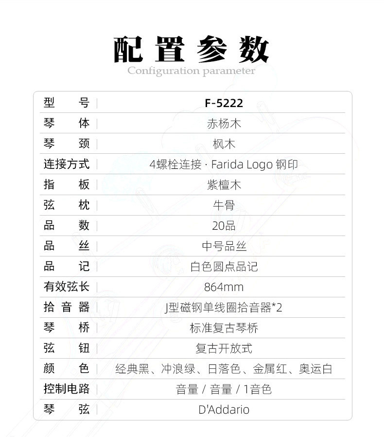 Farida Farida 일렉트릭베이스 F5222 재즈 J 타입베이스 기타 4 현베이스 초보자 소개스토어 가기