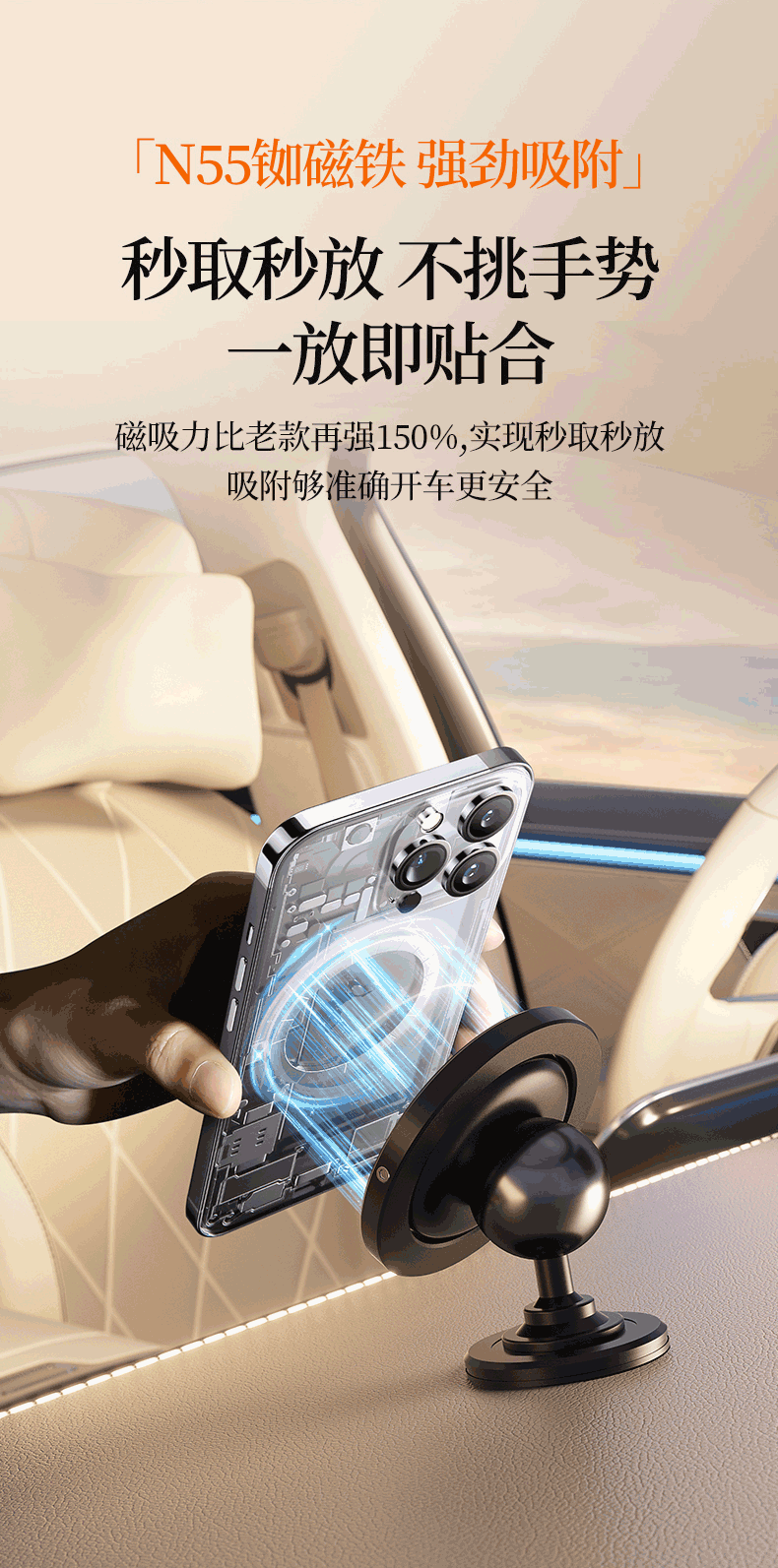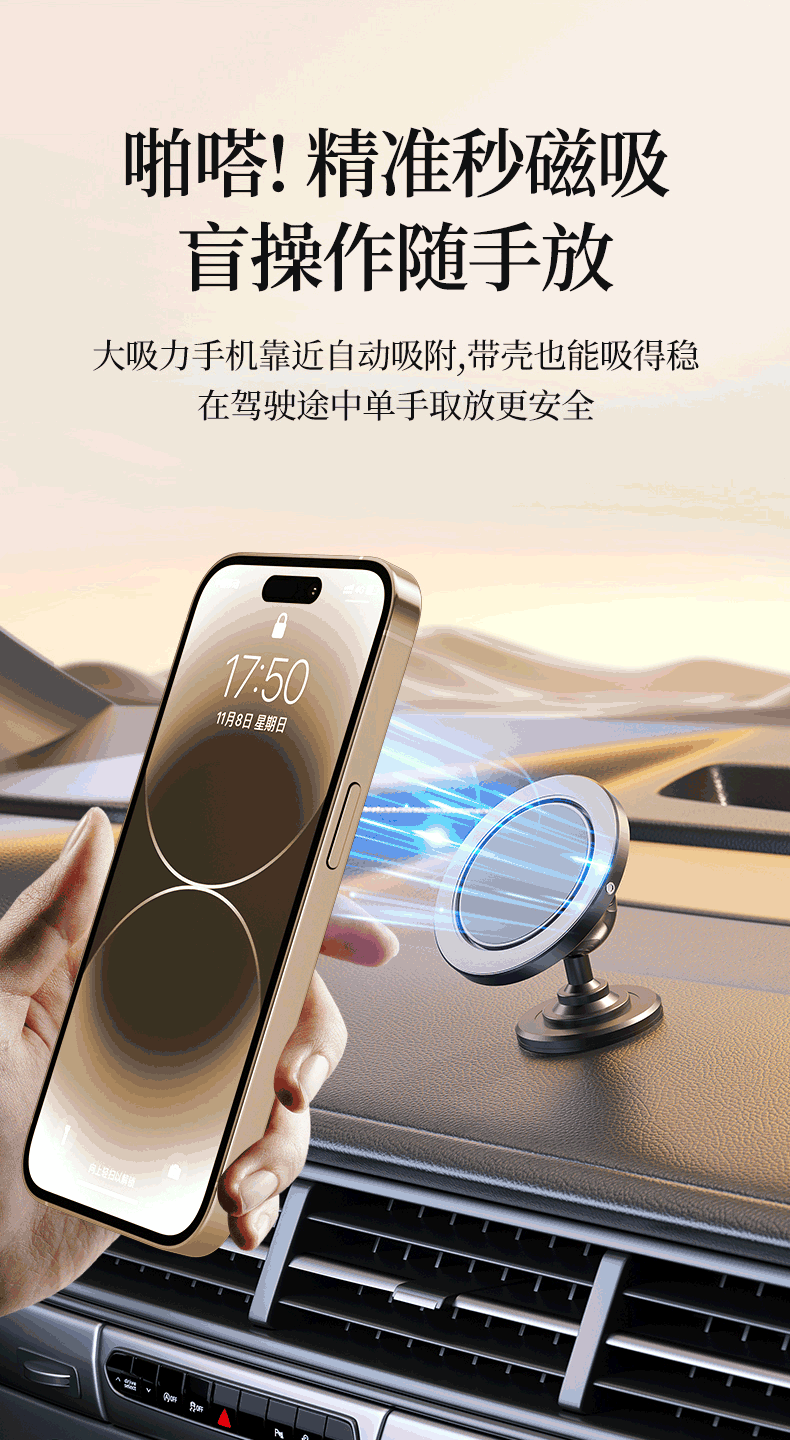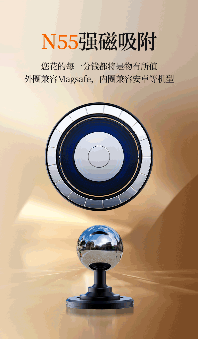 功能特点: 1:IPOHONE原生磁铁组,苹果、安卓机型全兼容,稳固吸附。