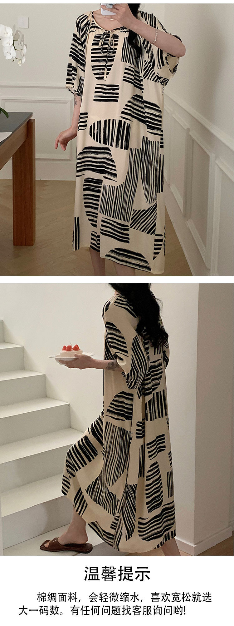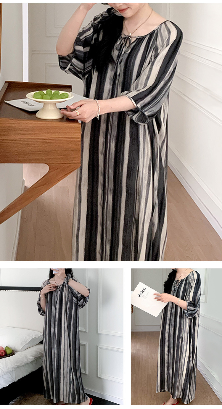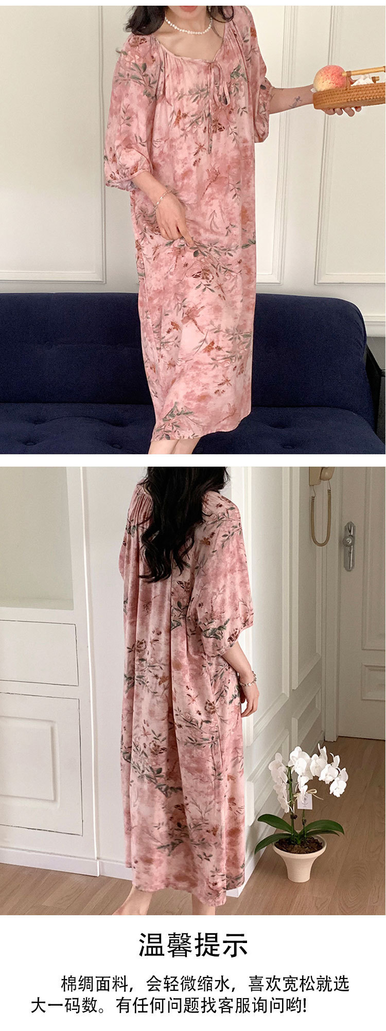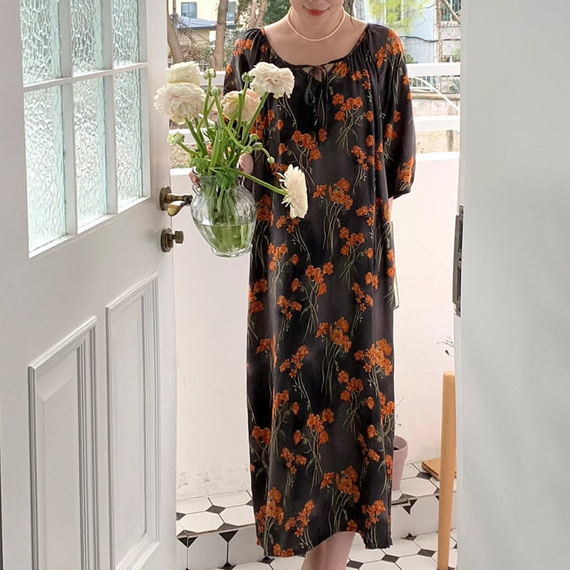 여성을위한 새로운 중국 스타일의 면 실크 잠옷 여름 얇은 느슨한 편안한 드레이프 반팔 라운드 넥 인공 면화 가정 의류스토어 가기