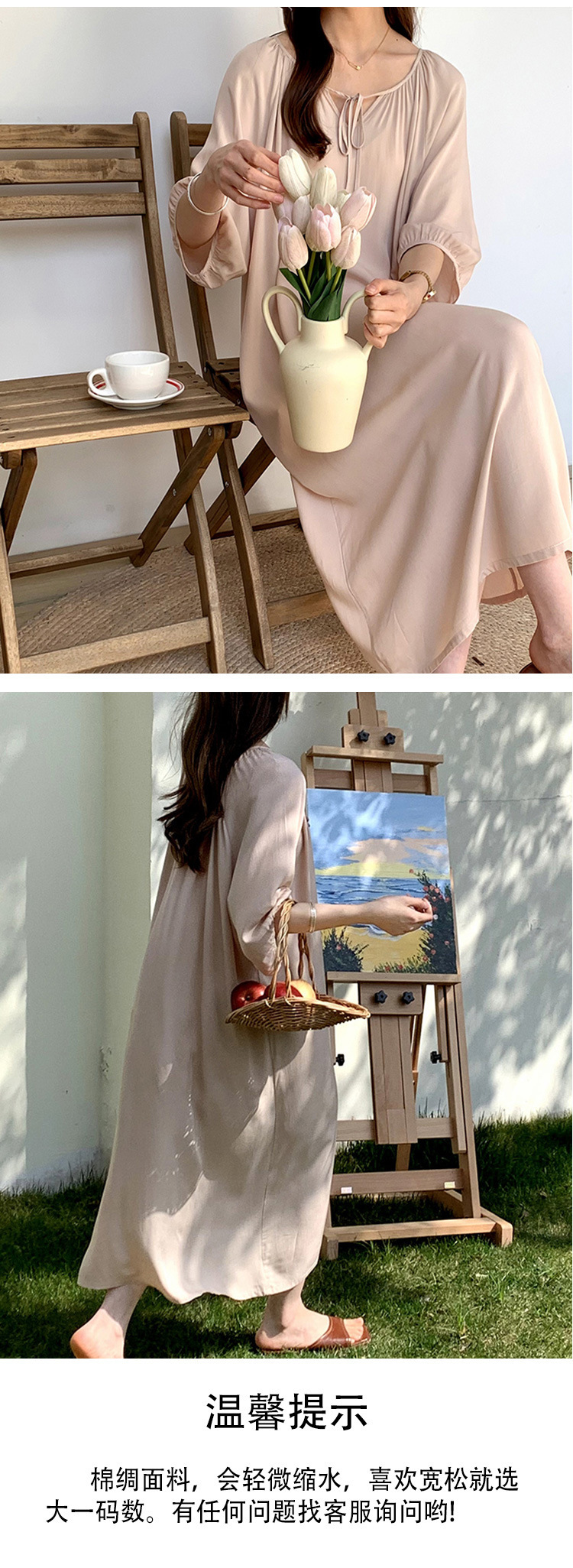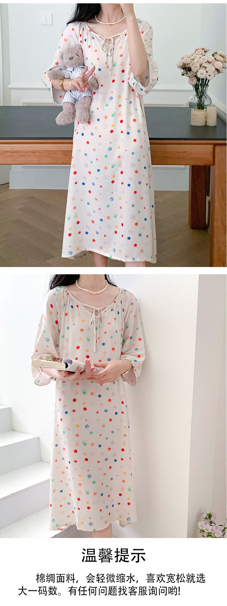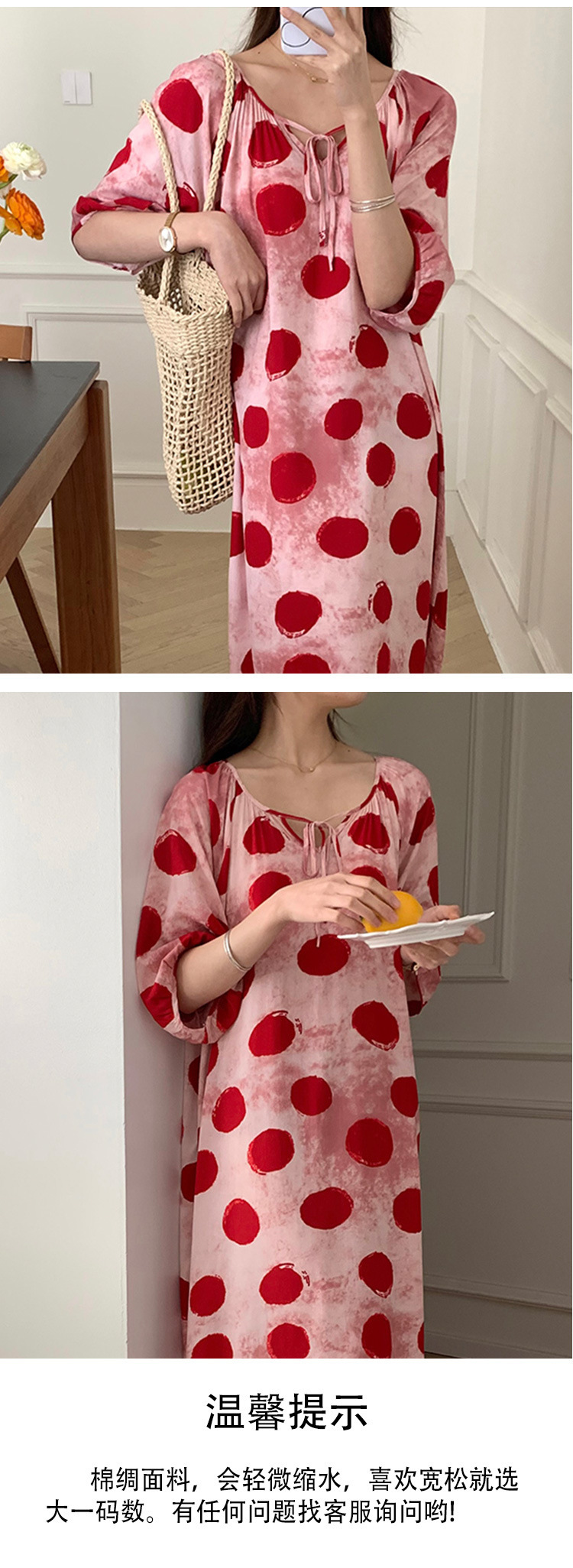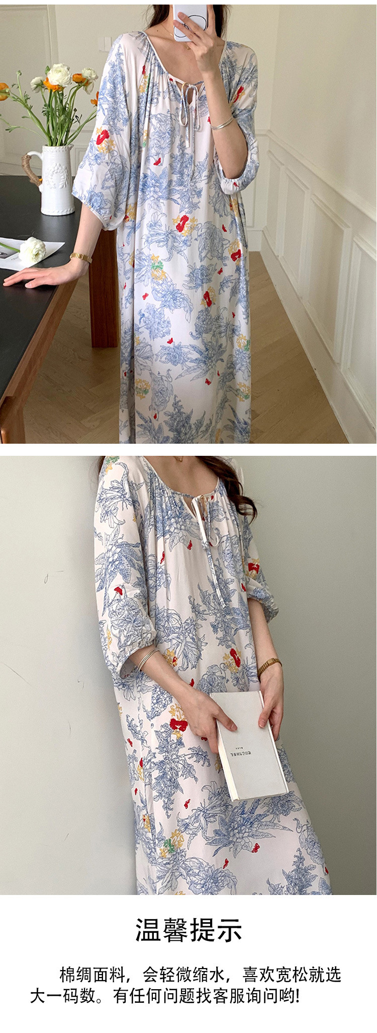 여성을위한 새로운 중국 스타일의 면 실크 잠옷 여름 얇은 느슨한 편안한 드레이프 반팔 라운드 넥 인공 면화 가정 의류스토어 가기