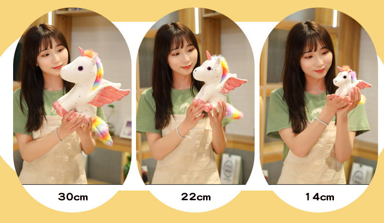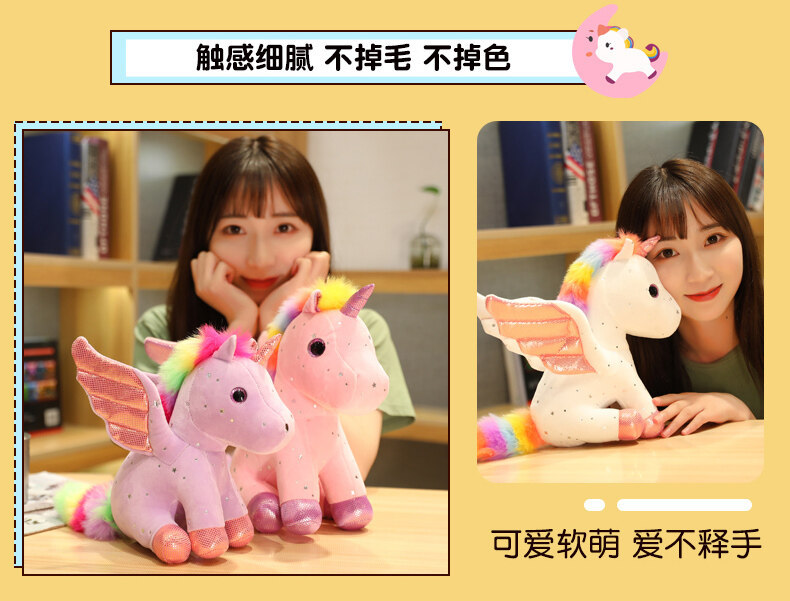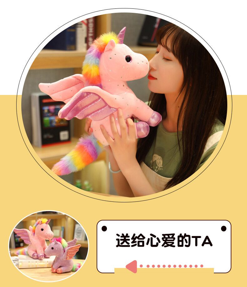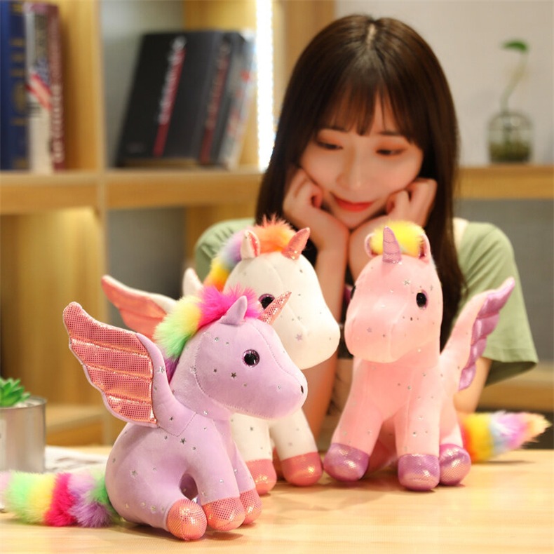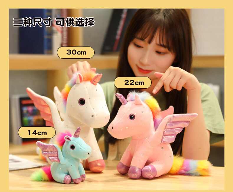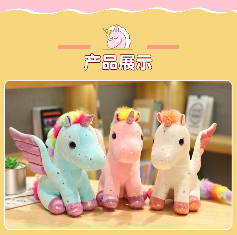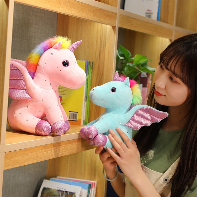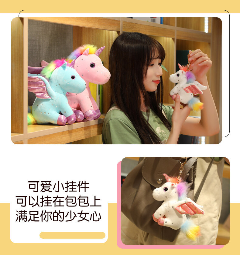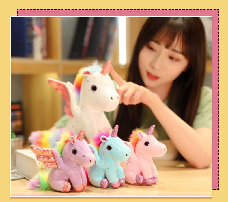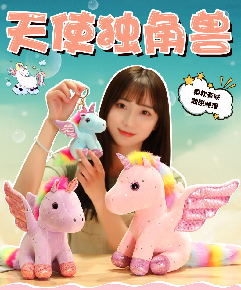 천사 날개 유니콘 인형 발톱 기계 스팽글 레인보우 페가수스 펜던트 어린이 다채로운 유니콘 헤어 맞춤형스토어 가기