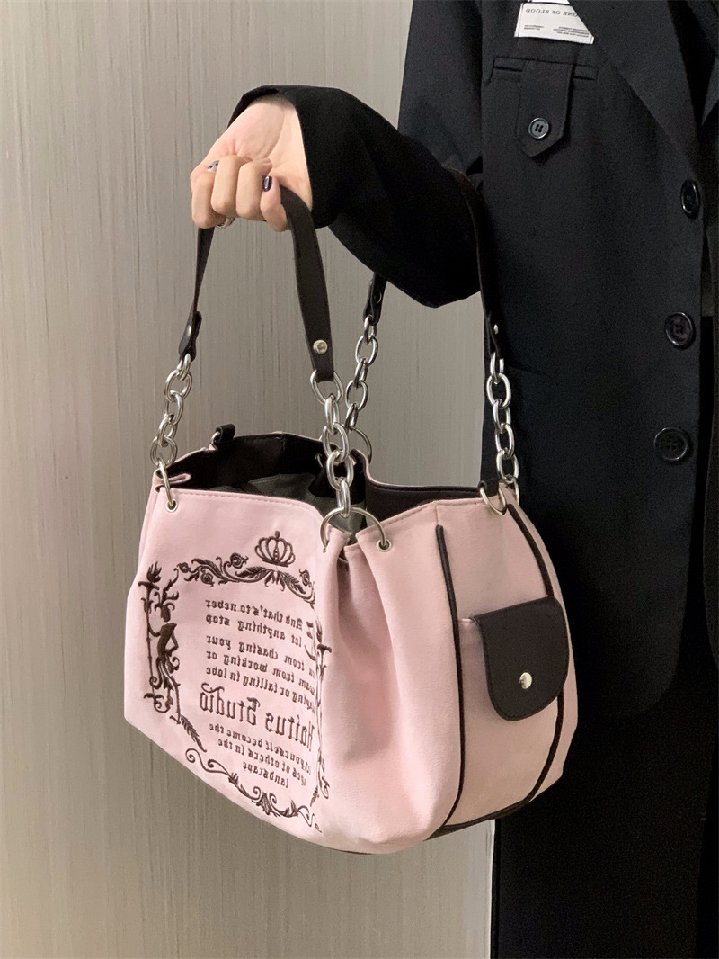 대용량 레트로 예술적 고딕 체인 토트 백 여성의 2022 새로운 유행 소프트 크로스 바디 호박 백스토어 가기