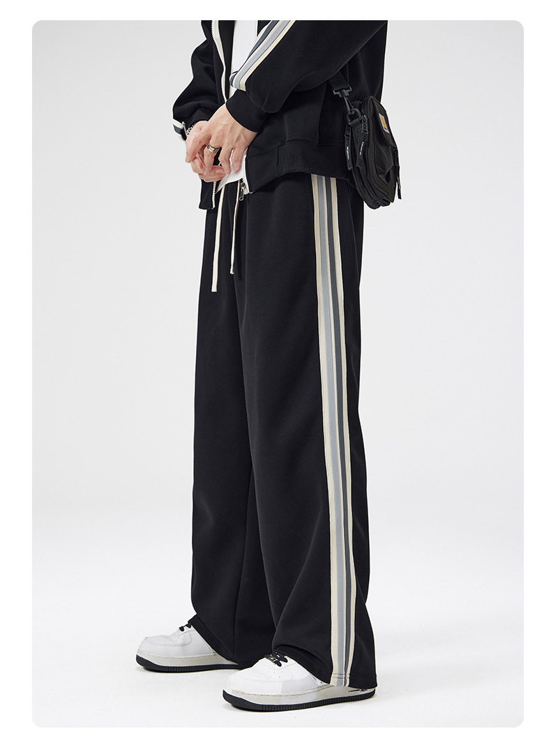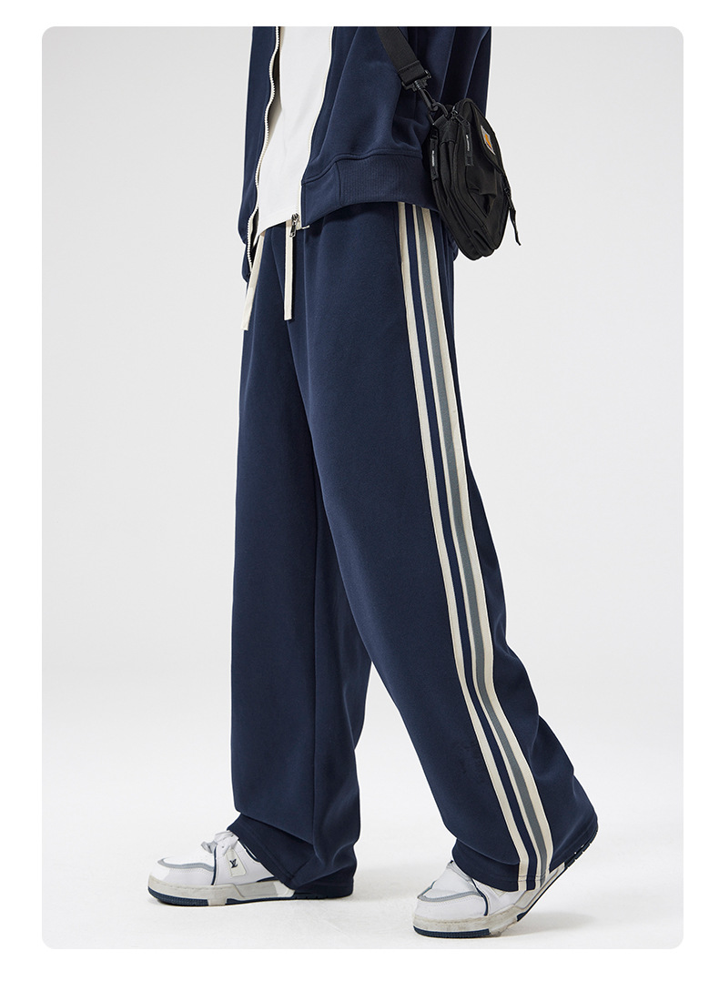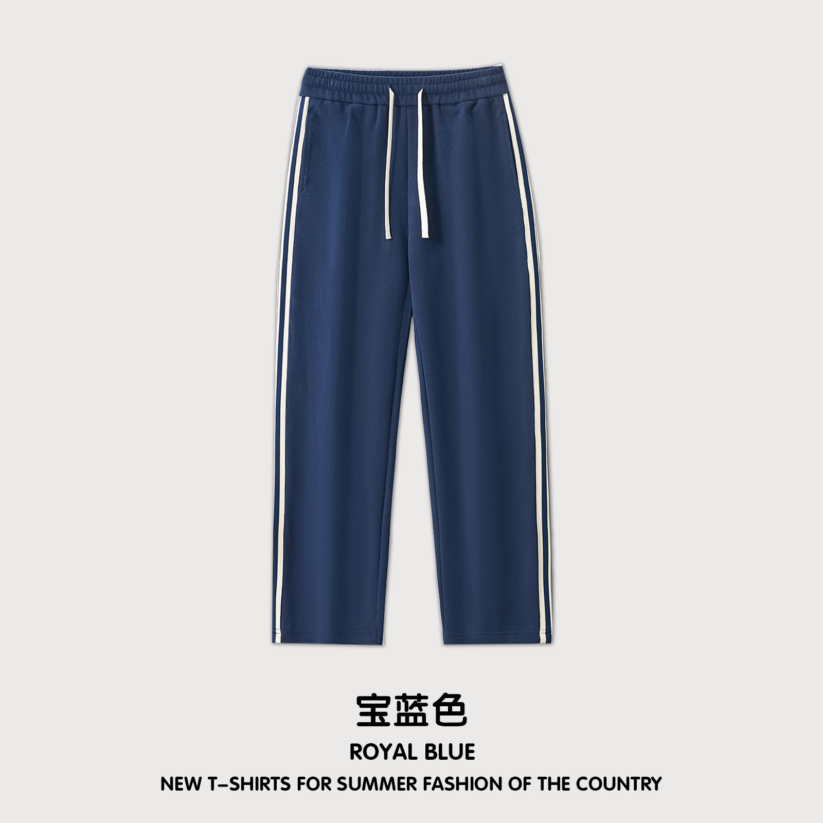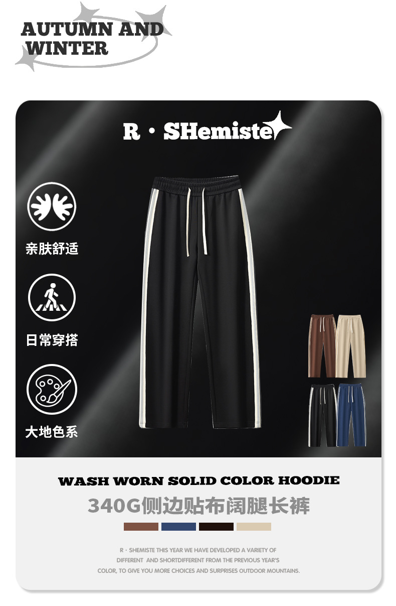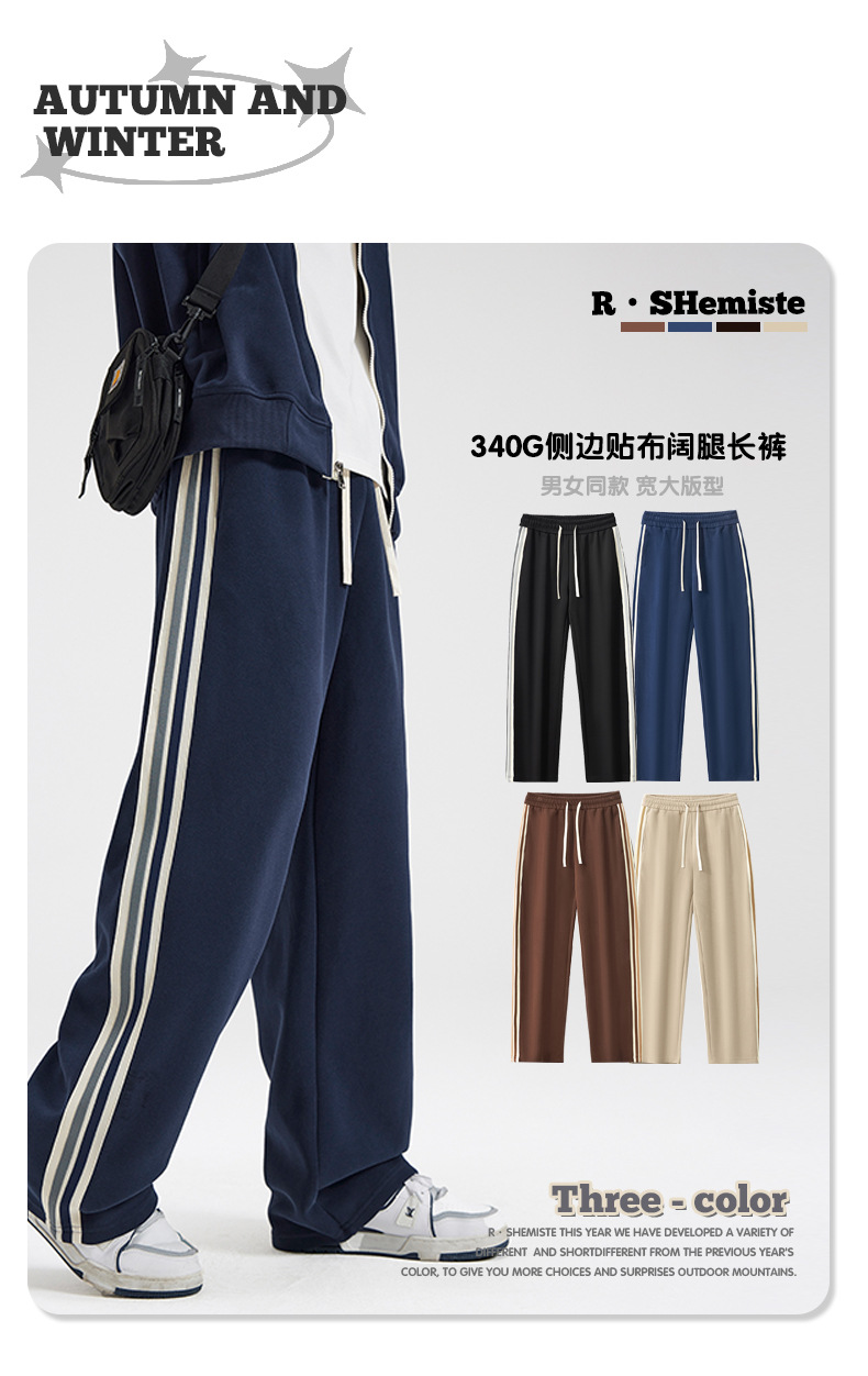 RS 남성복 | 봄과 가을 테이프 줄무늬 바지 남자 340G 무거운 넓은 다리 캐주얼 바지 남자 국경 남자 바지스토어 가기