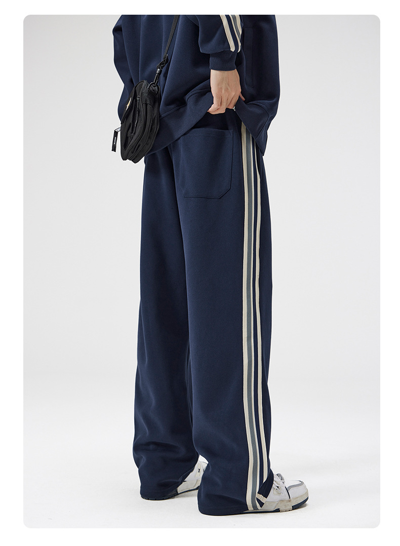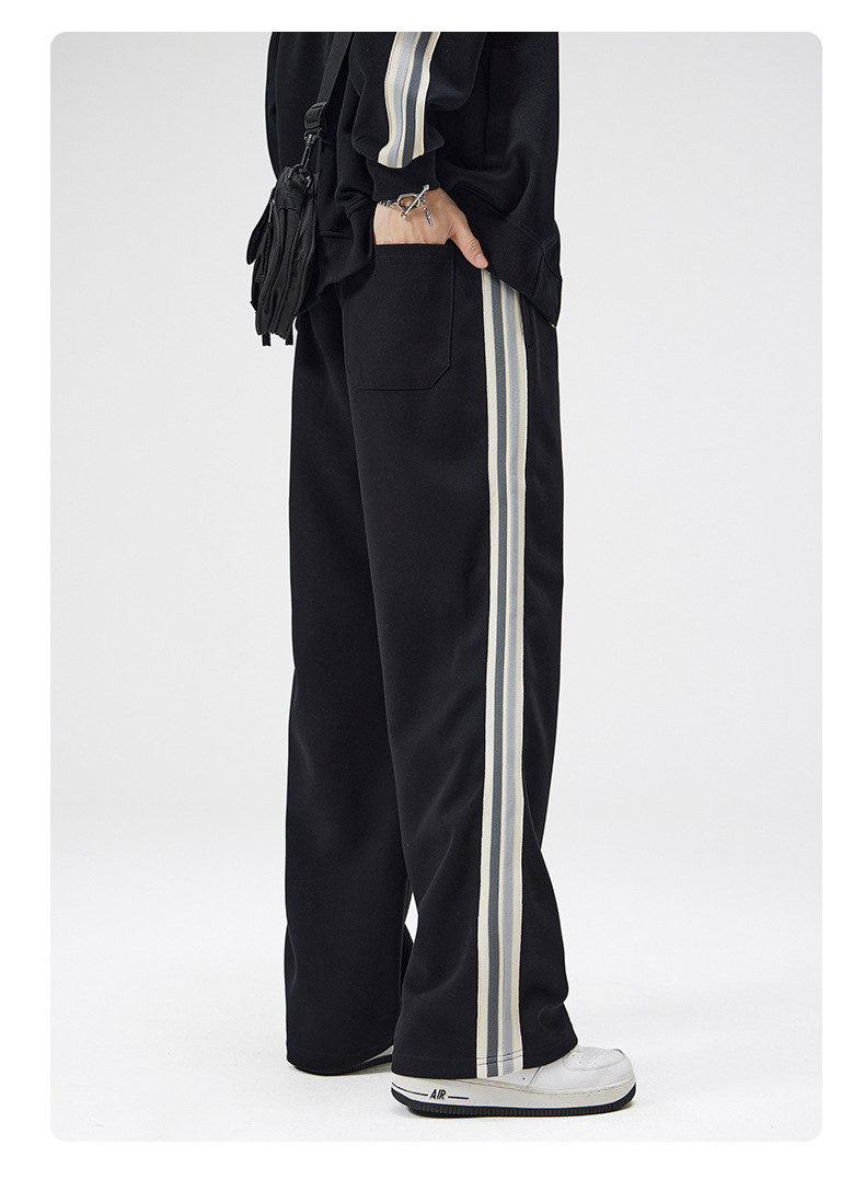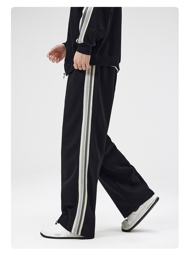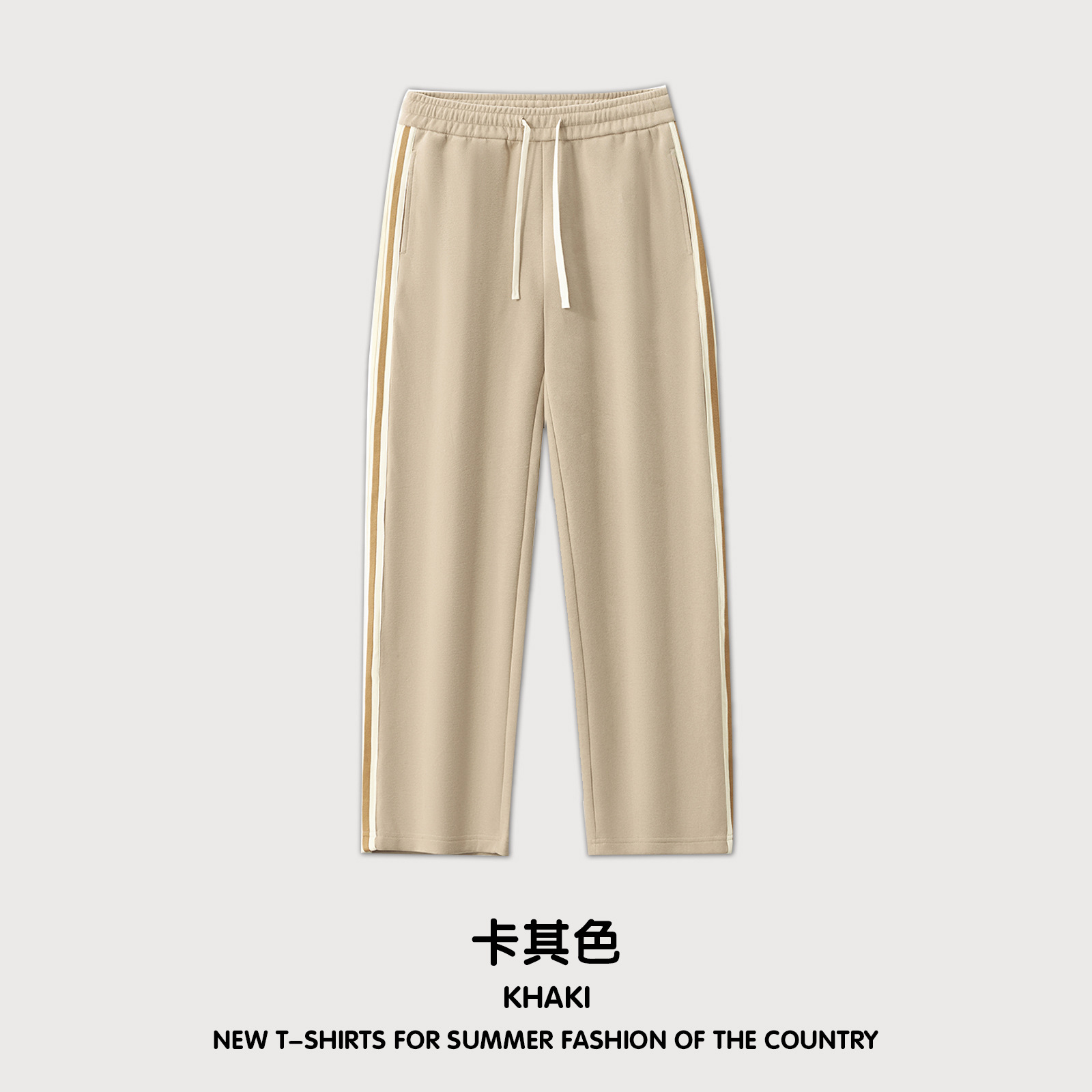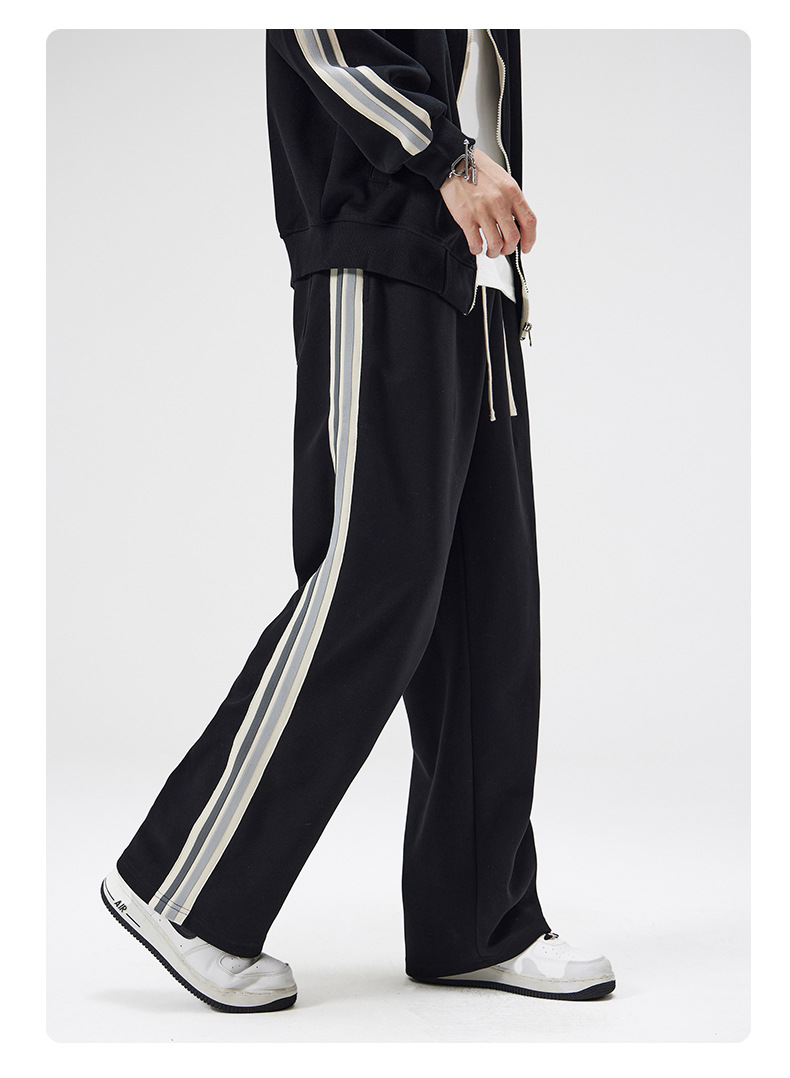 RS 남성복 | 봄과 가을 테이프 줄무늬 바지 남자 340G 무거운 넓은 다리 캐주얼 바지 남자 국경 남자 바지스토어 가기