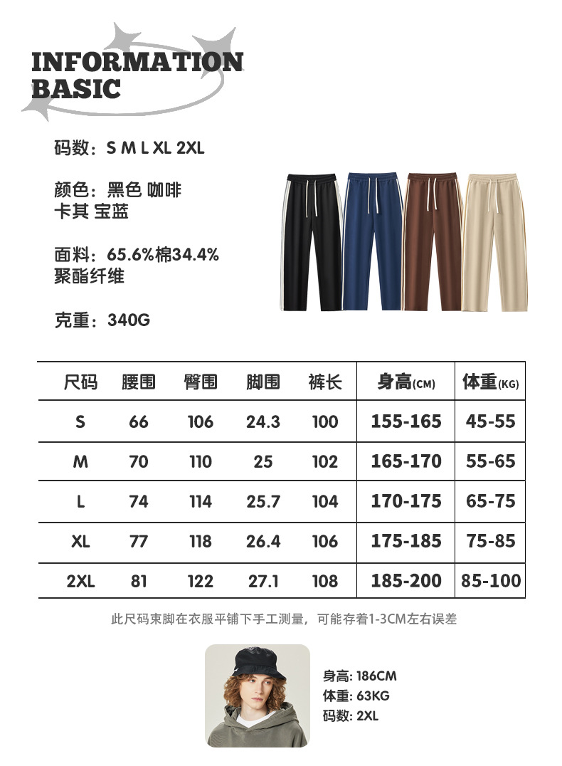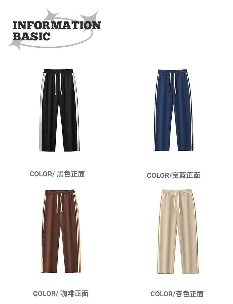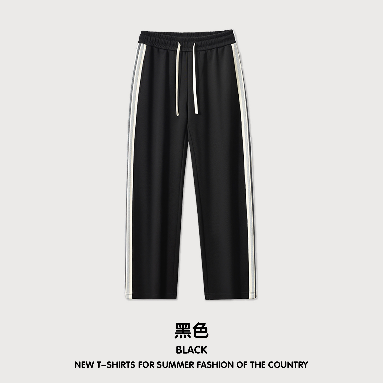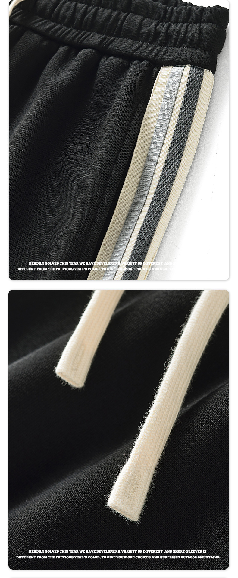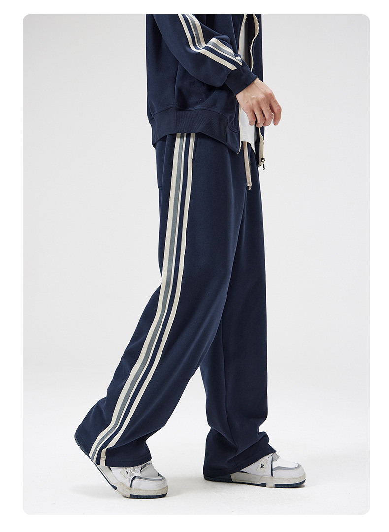 RS 남성복 | 봄과 가을 테이프 줄무늬 바지 남자 340G 무거운 넓은 다리 캐주얼 바지 남자 국경 남자 바지스토어 가기