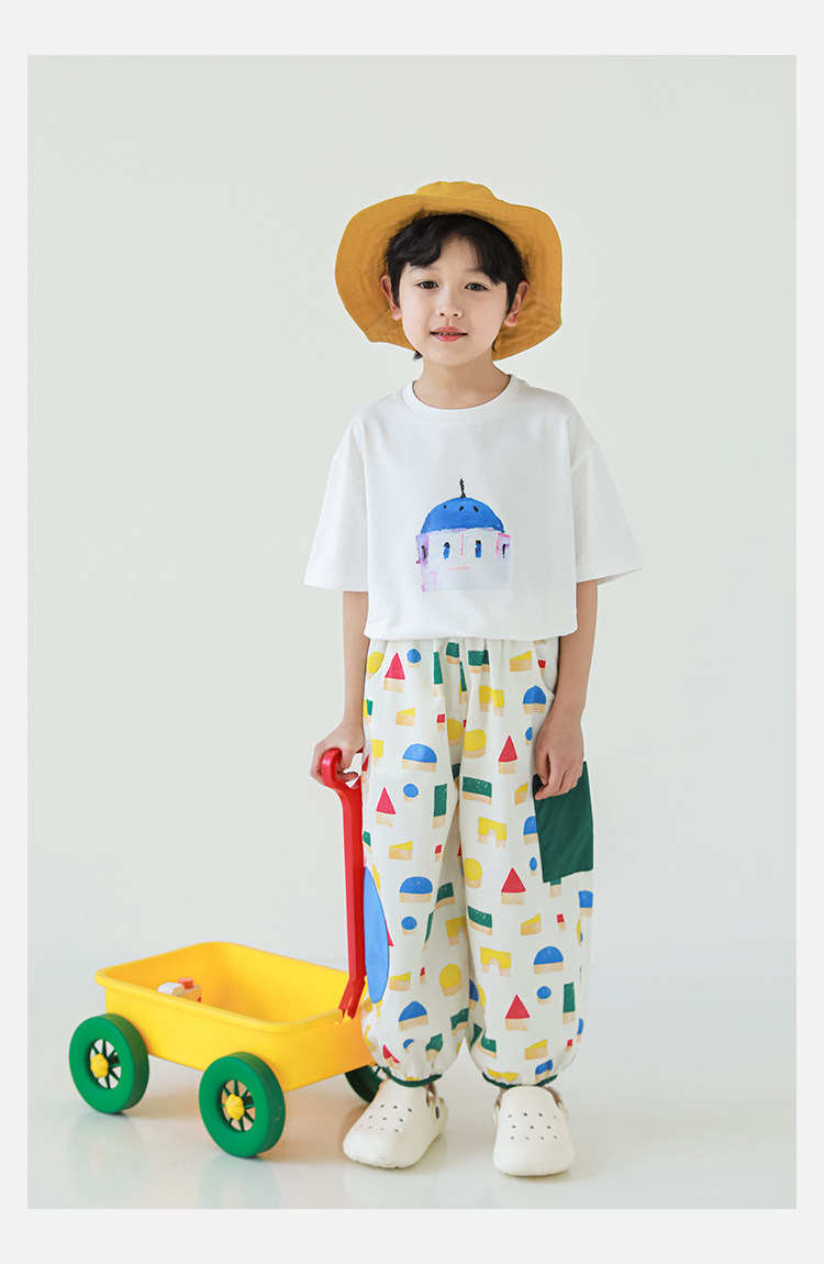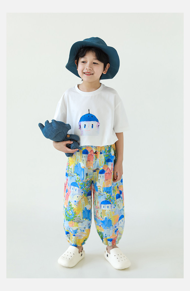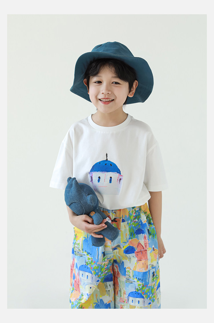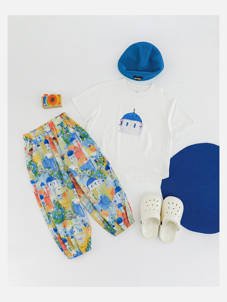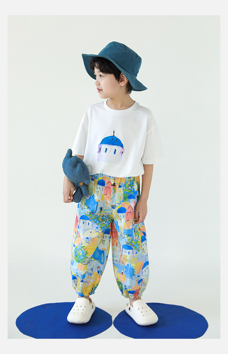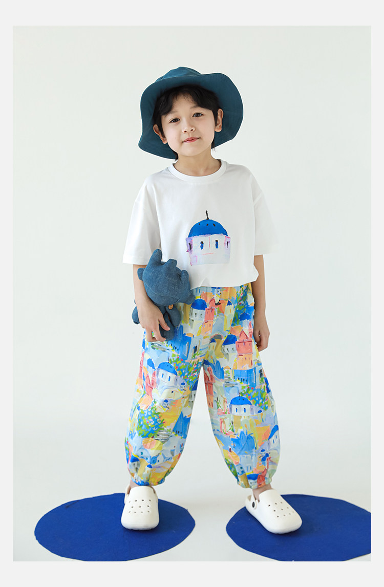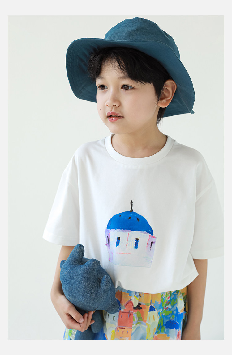 Wurib 소년 여름 새로운 유화 셔츠 짧은 소매 티셔츠 느슨한 도구 반바지 휴가 시리즈 세트스토어 가기