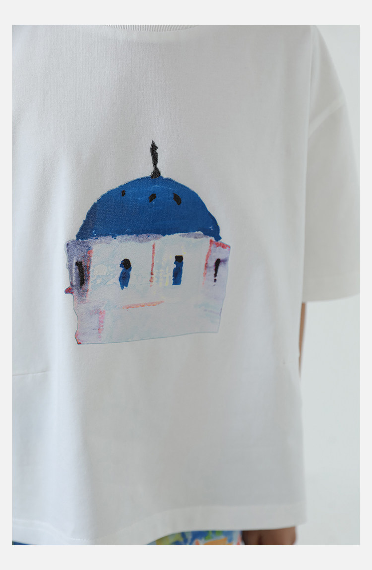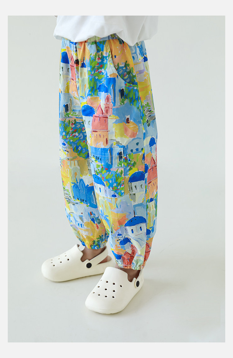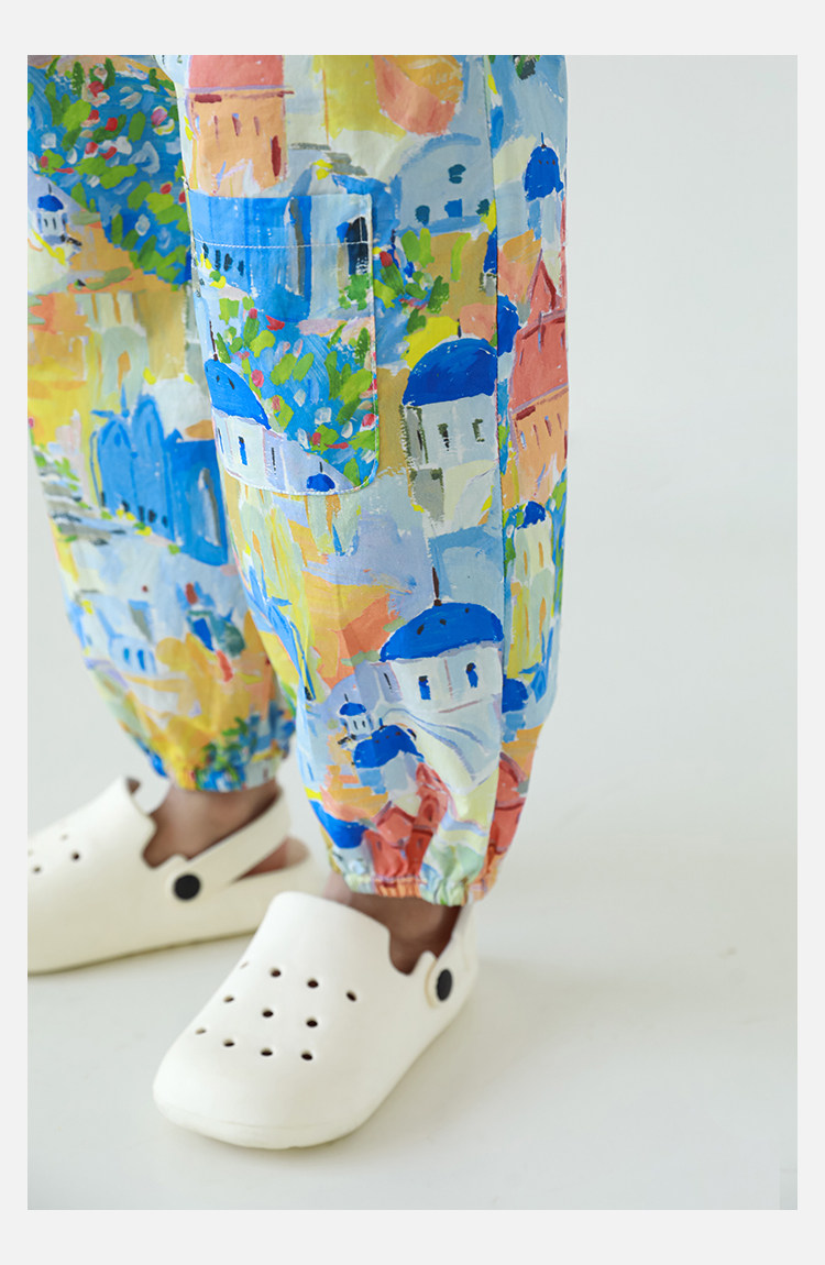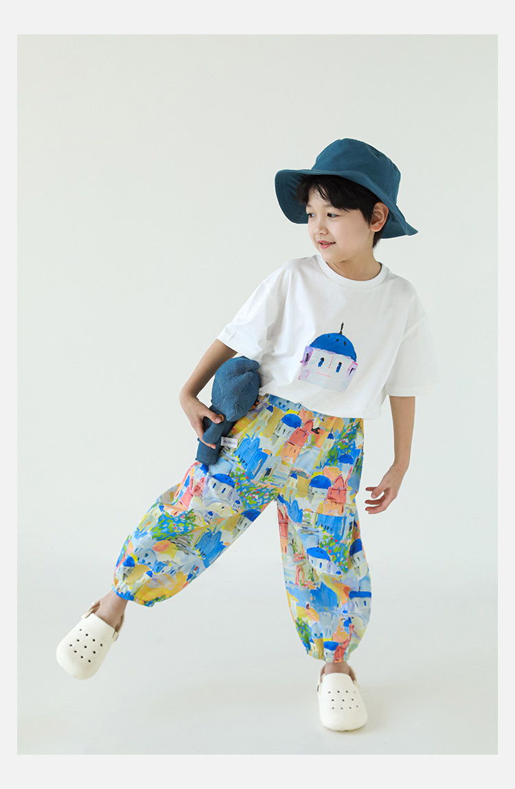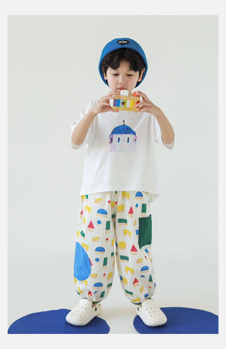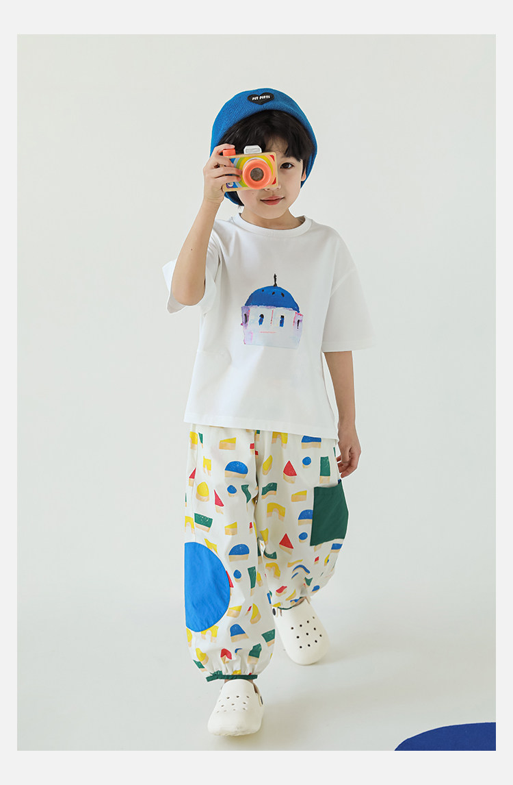 Wurib 소년 여름 새로운 유화 셔츠 짧은 소매 티셔츠 느슨한 도구 반바지 휴가 시리즈 세트스토어 가기