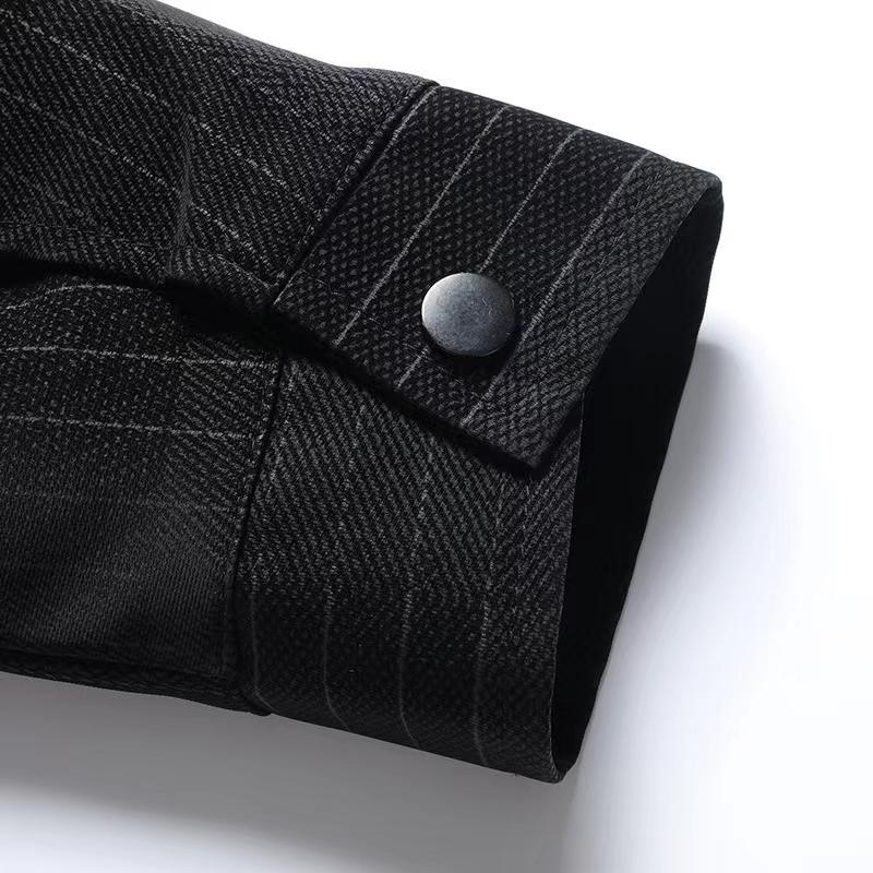 봄/가을 재킷 2026 신상 남성 트렌디 캐주얼 남성 세로 스트라이프 라펠 패션 가죽 재킷 폴로스토어 가기