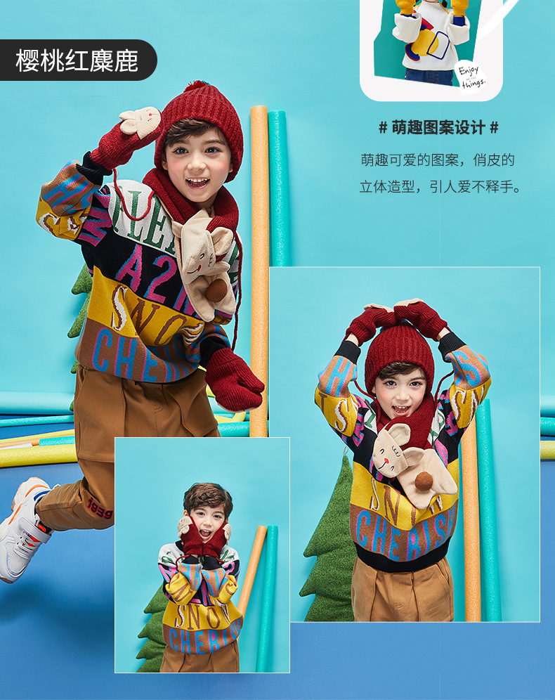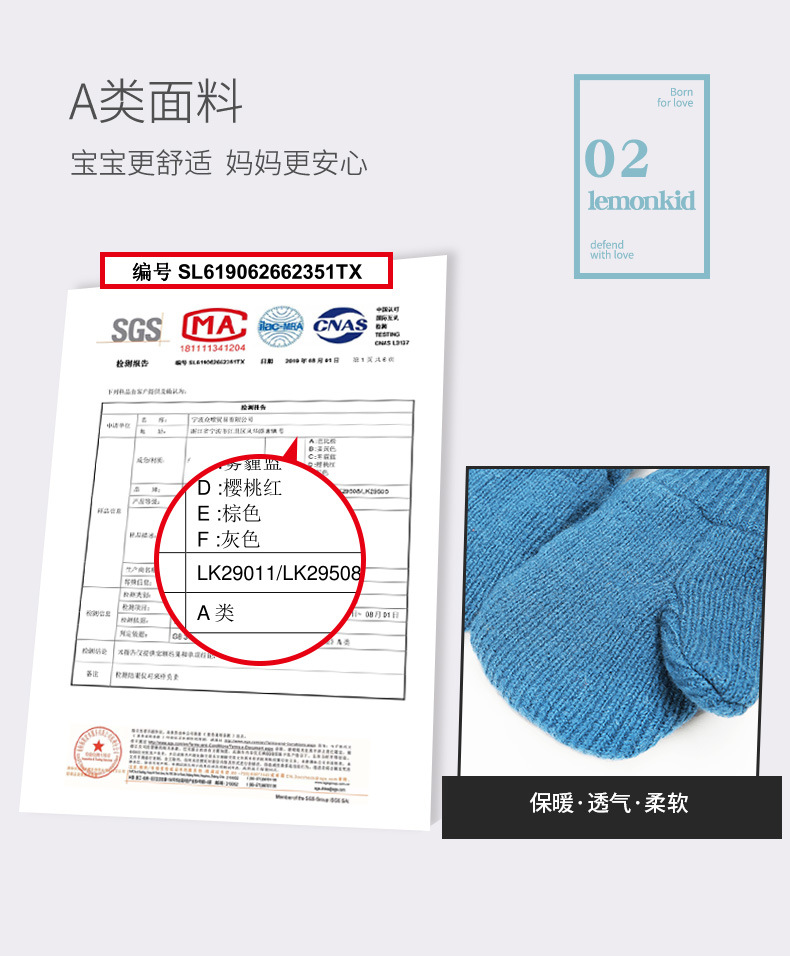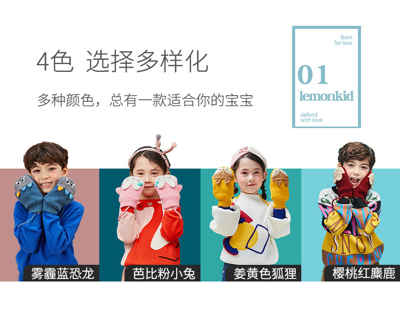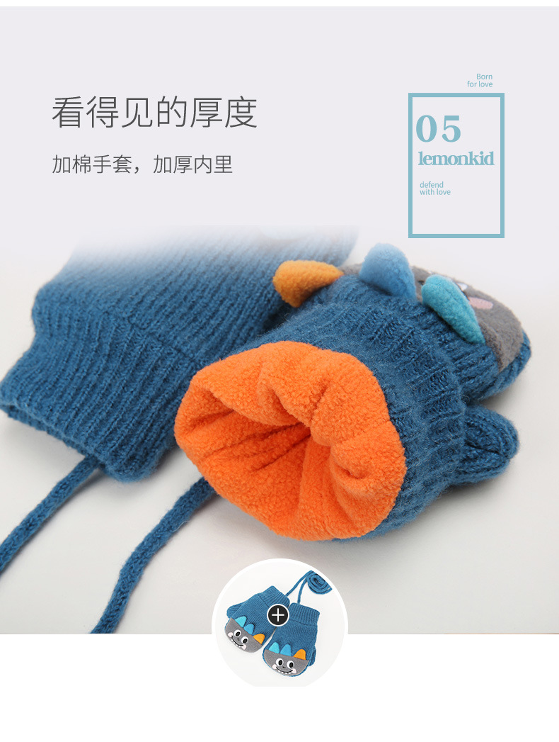 레몬 아기 어린이 장갑 어린이 울 장갑 목에 매달려 따뜻한 장갑 겨울 도매