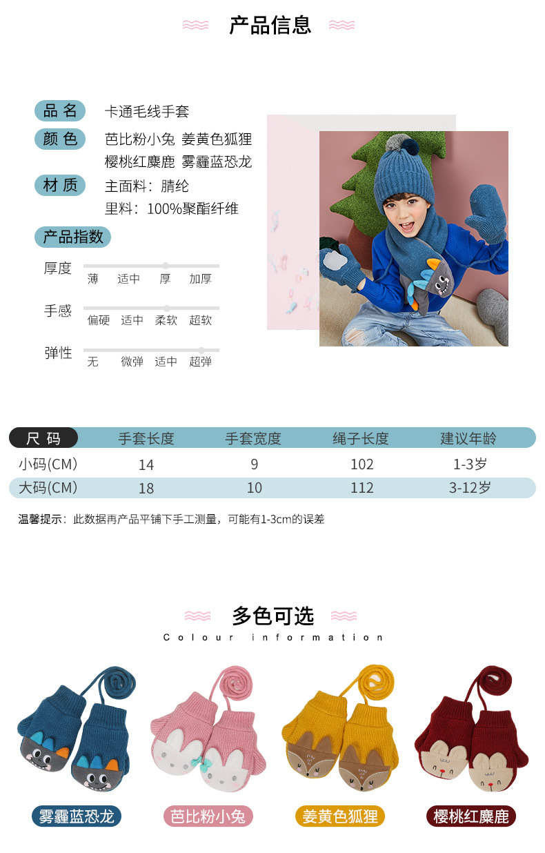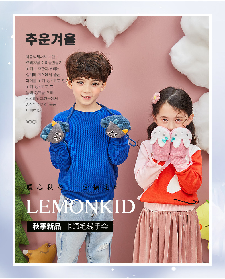 레몬 아기 어린이 장갑 어린이 울 장갑 목에 매달려 따뜻한 장갑 겨울 도매스토어 가기