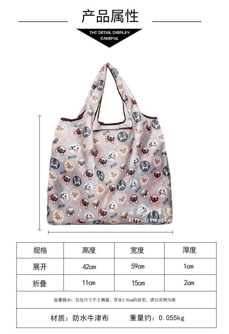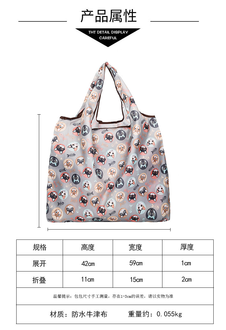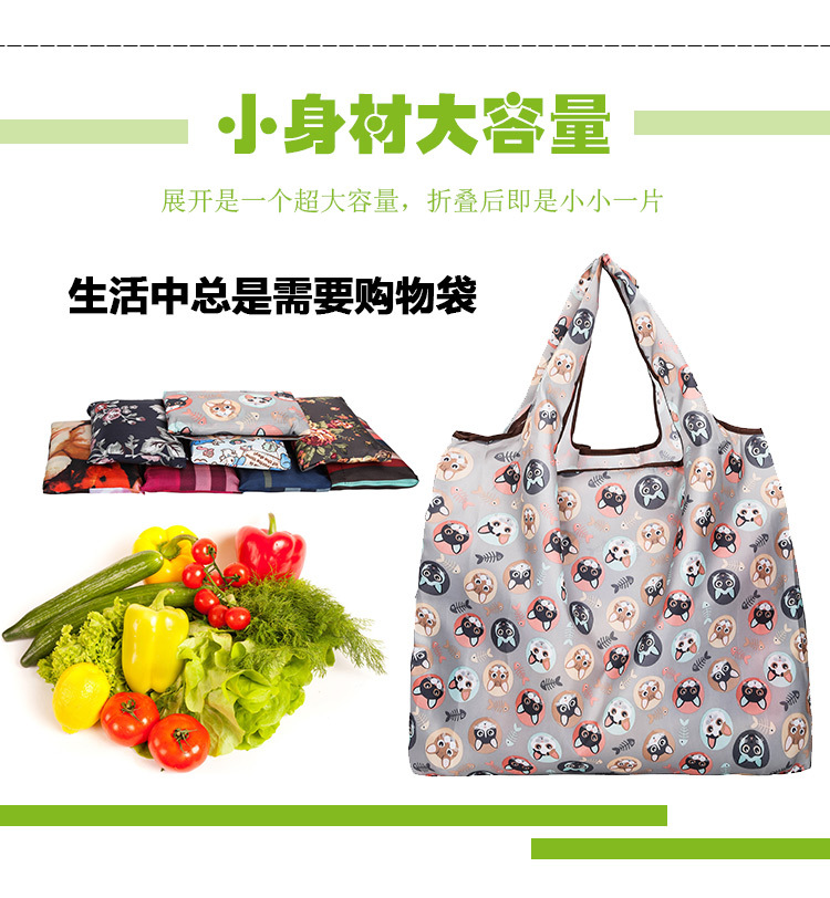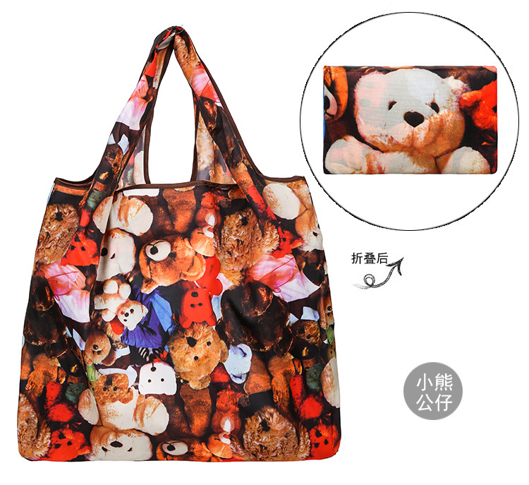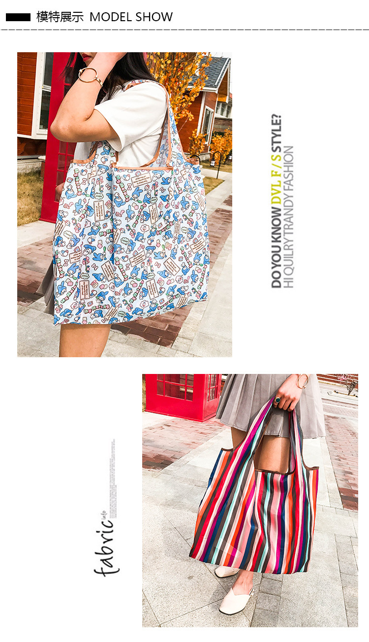 국경 간 새로운 만화 접이식 어깨 쇼핑백 대형 휴대용 대용량 쇼핑백 슈퍼마켓 쇼핑백