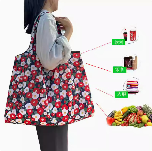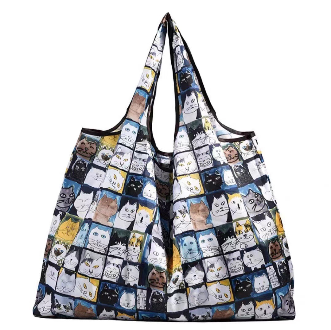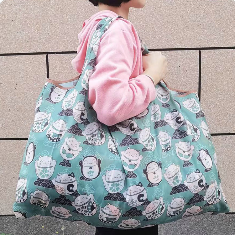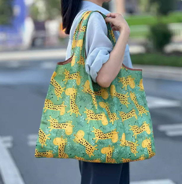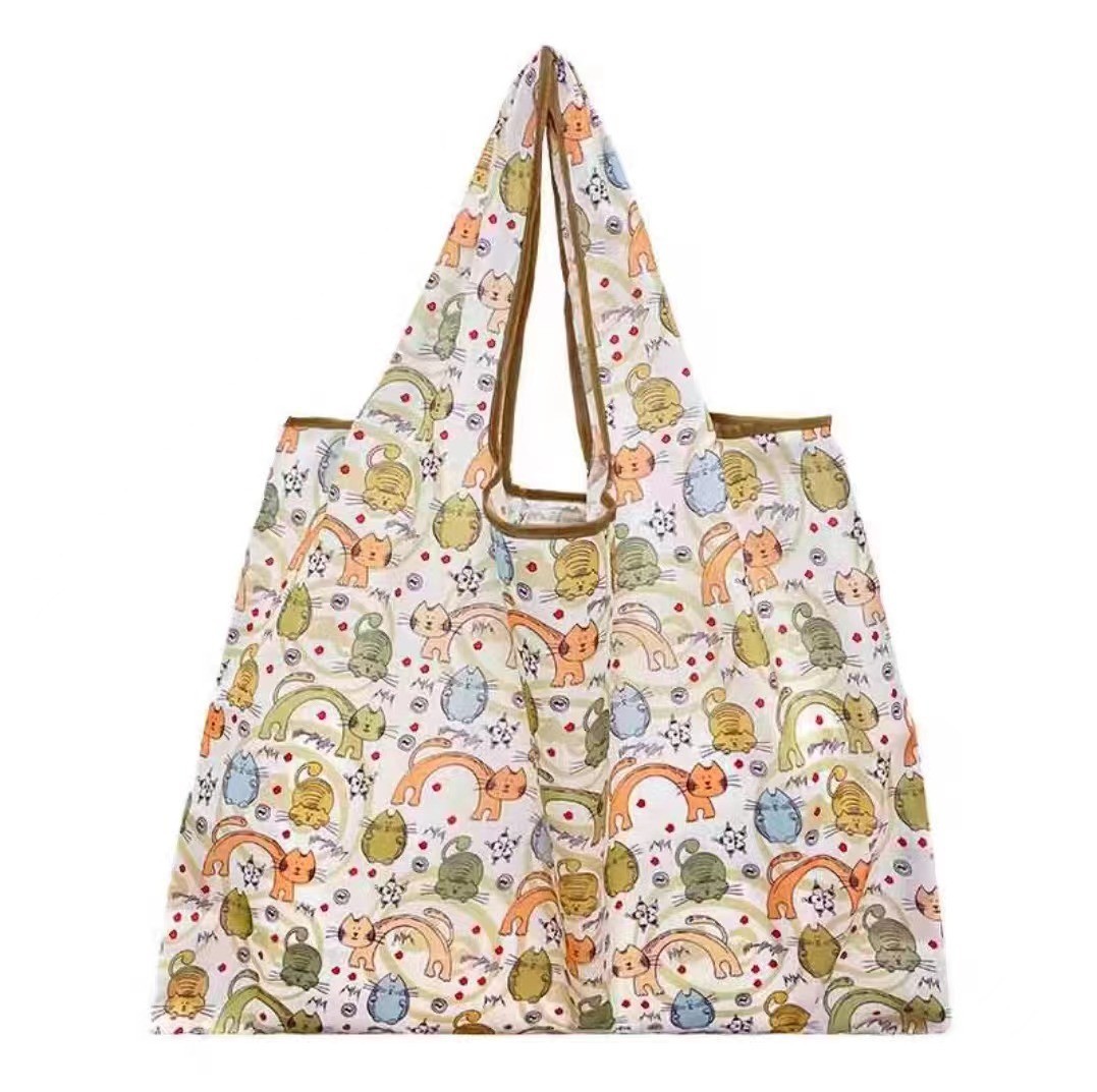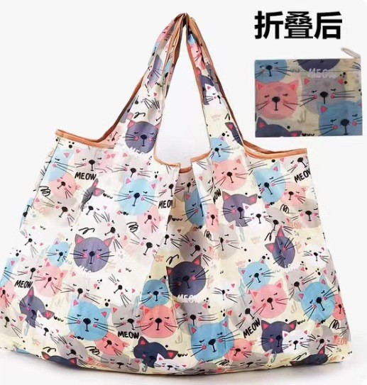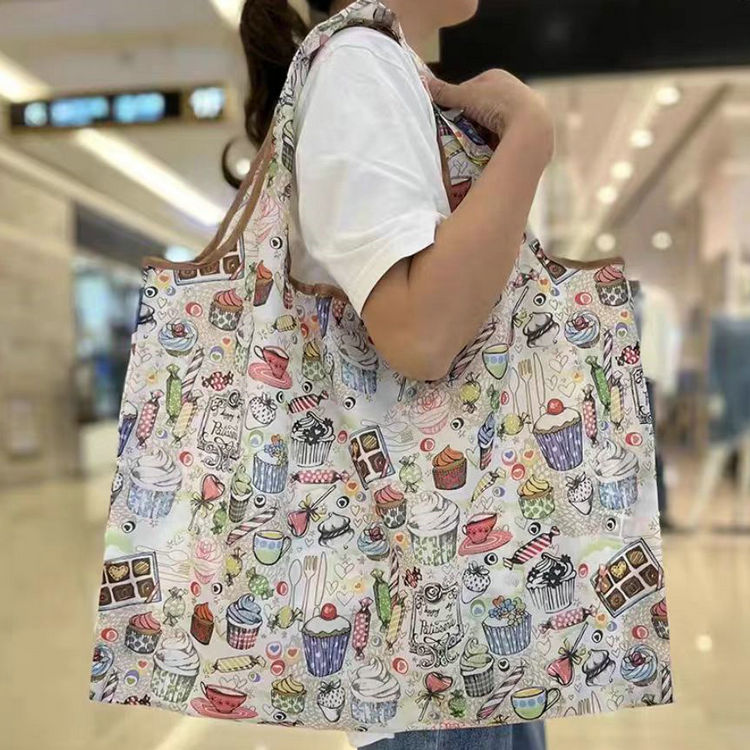 국경 간 새로운 만화 접이식 어깨 쇼핑백 대형 휴대용 대용량 쇼핑백 슈퍼마켓 쇼핑백스토어 가기
