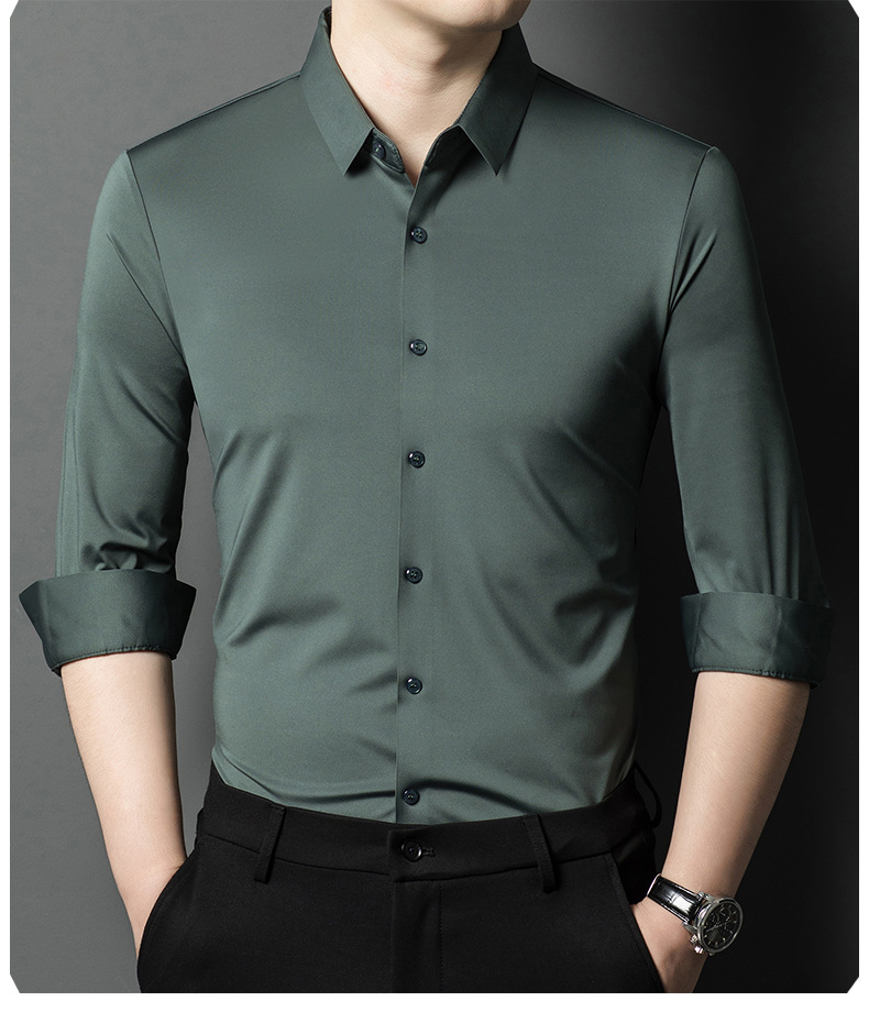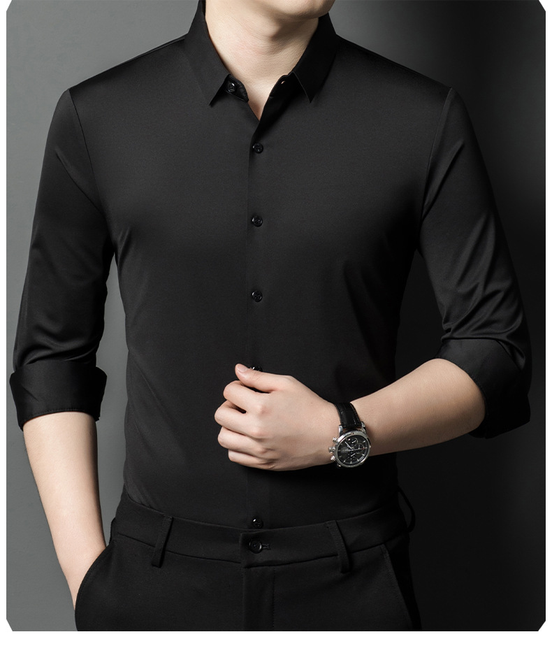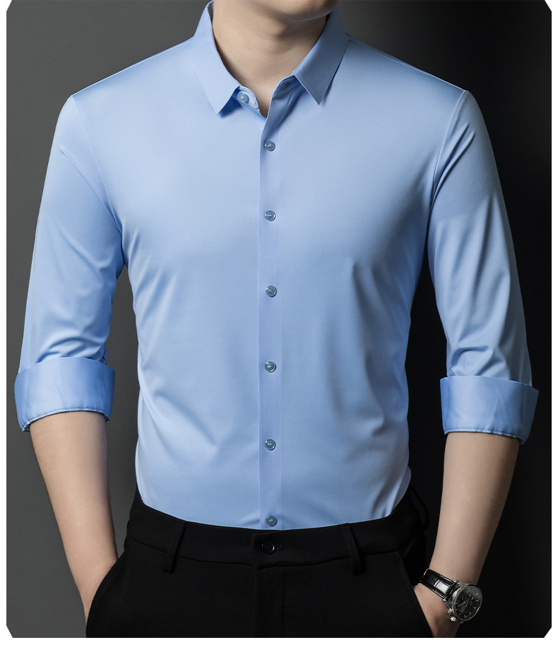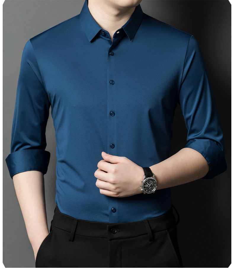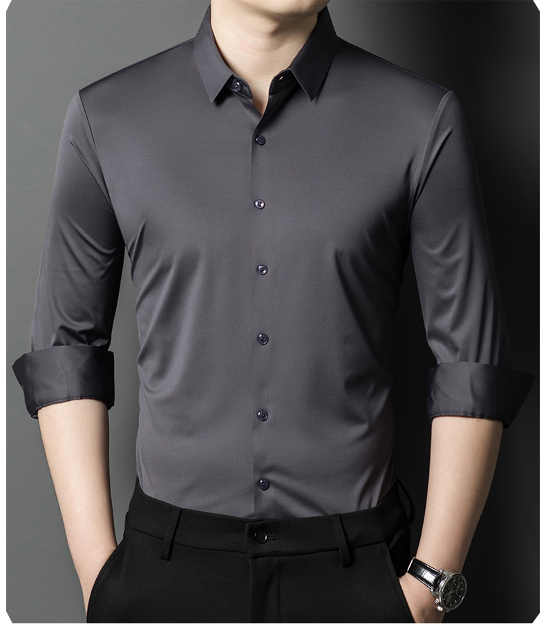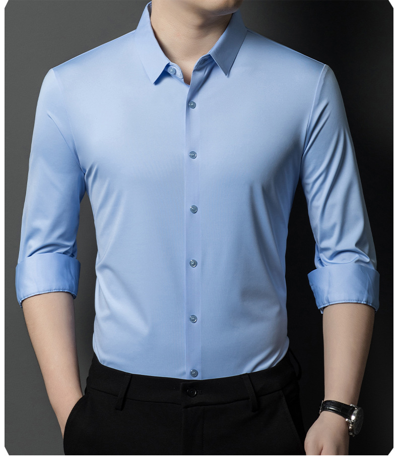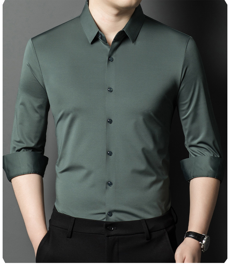 원활한 높은 탄성 남성 빛 럭셔리 스판덱스 원활한 긴 소매 셔츠 하이 퀄리티 비 다림질 부드러운 비즈니스 스타일 패션 셔츠스토어 가기