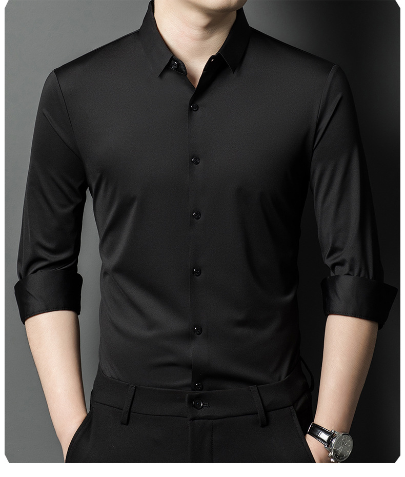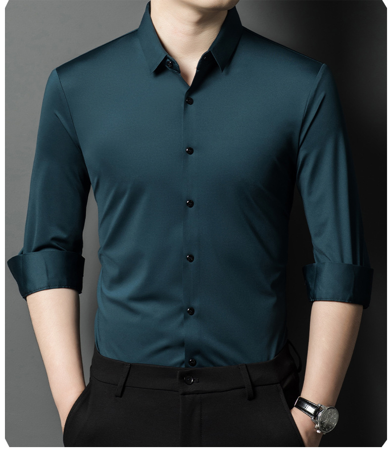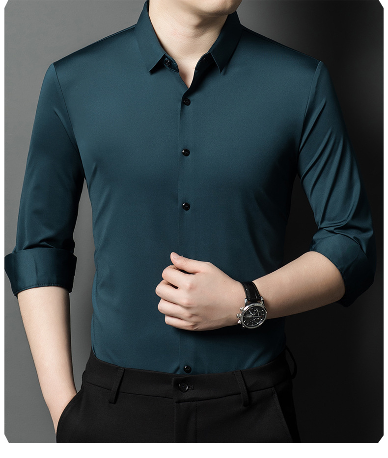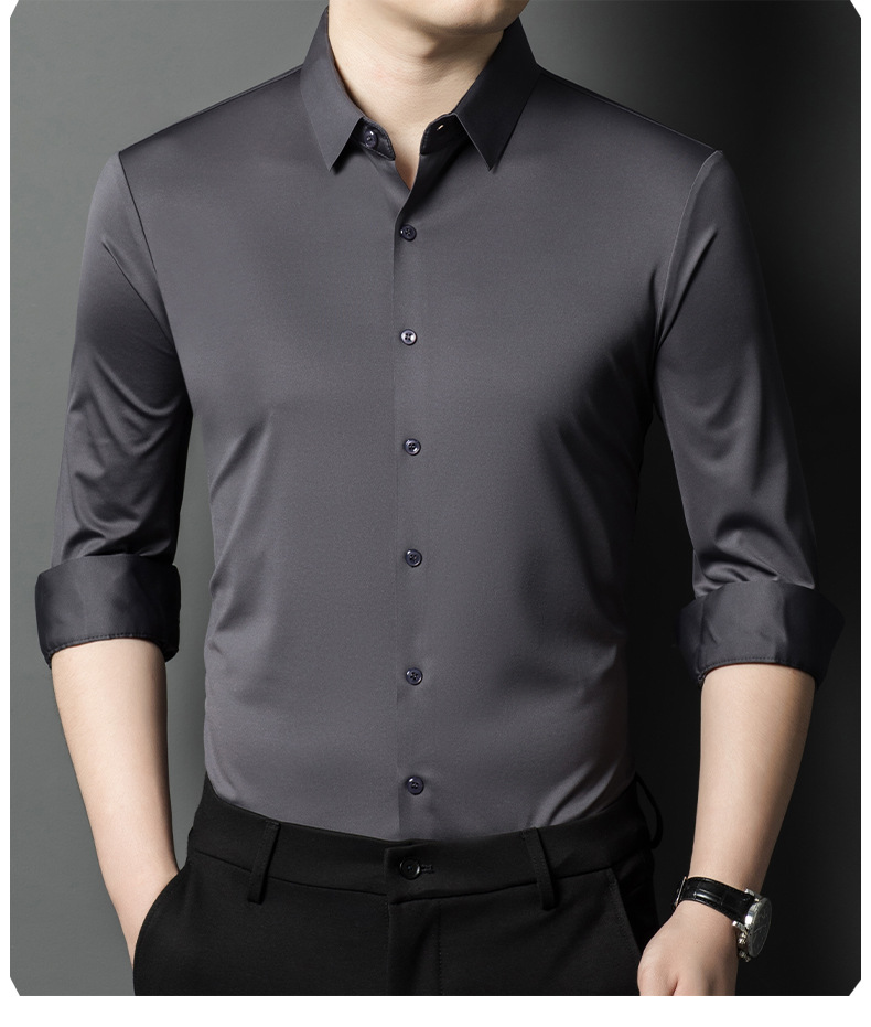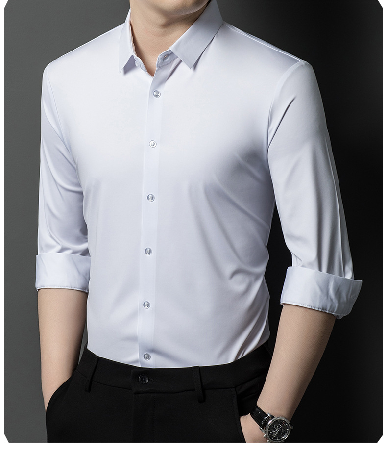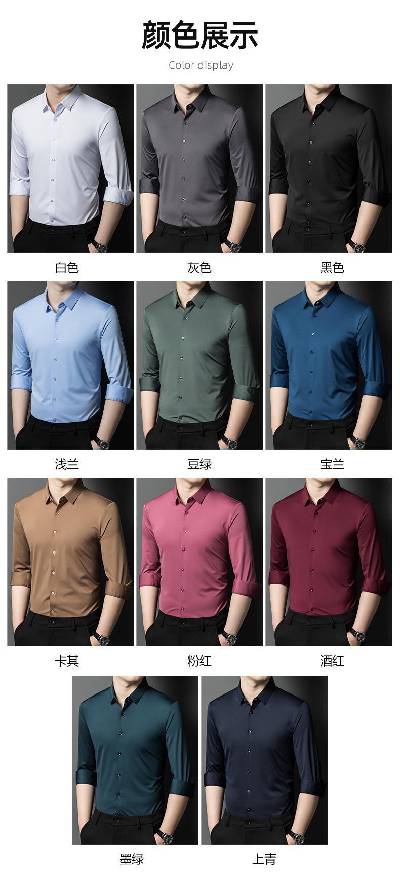 원활한 높은 탄성 남성 빛 럭셔리 스판덱스 원활한 긴 소매 셔츠 하이 퀄리티 비 다림질 부드러운 비즈니스 스타일 패션 셔츠스토어 가기