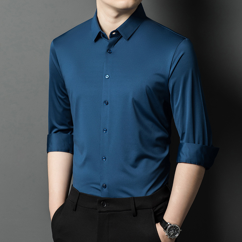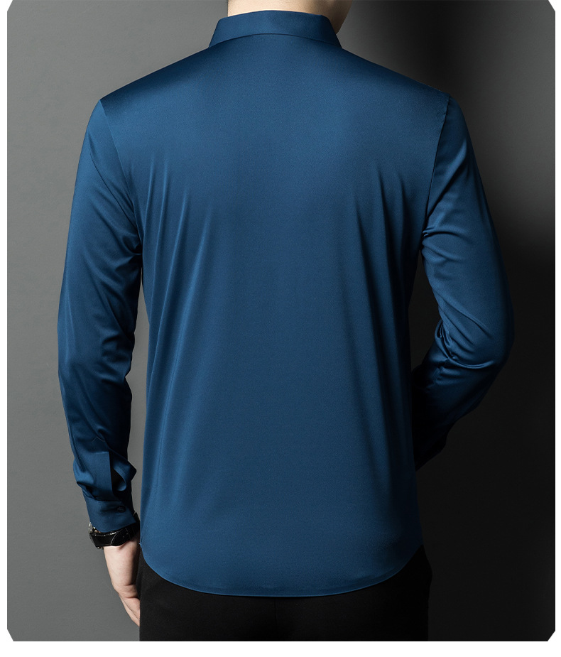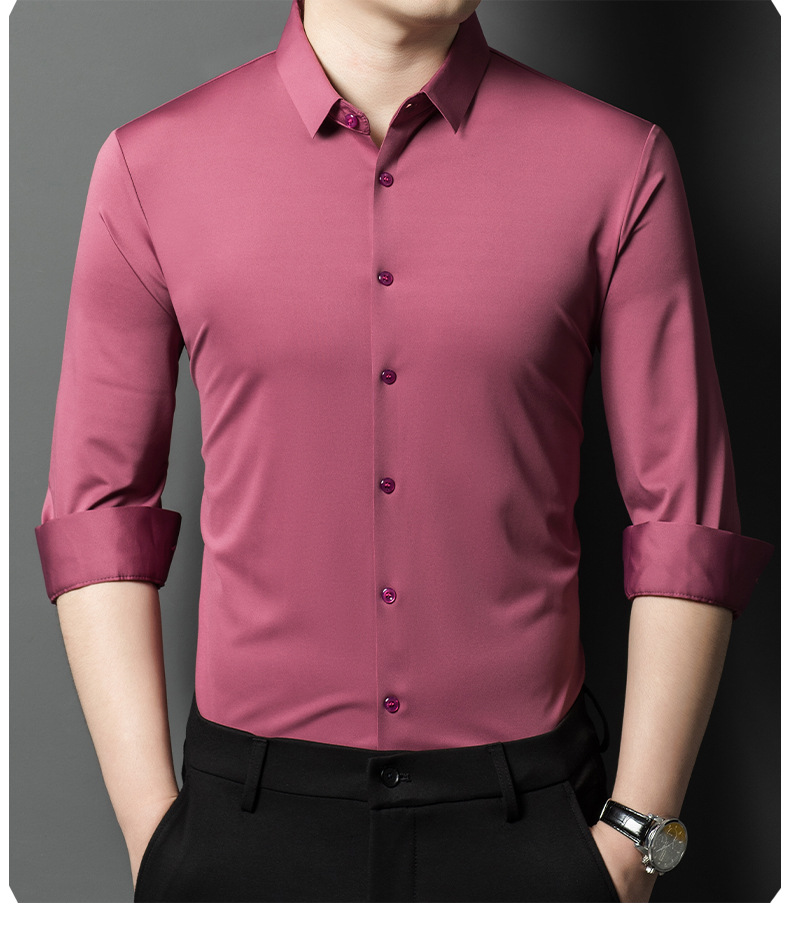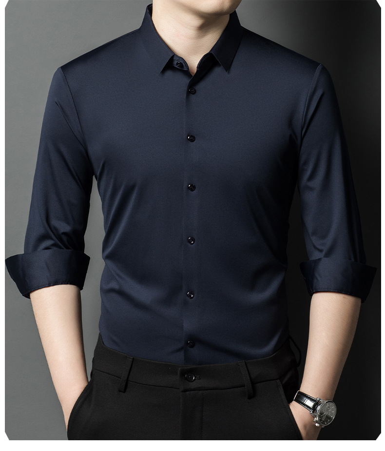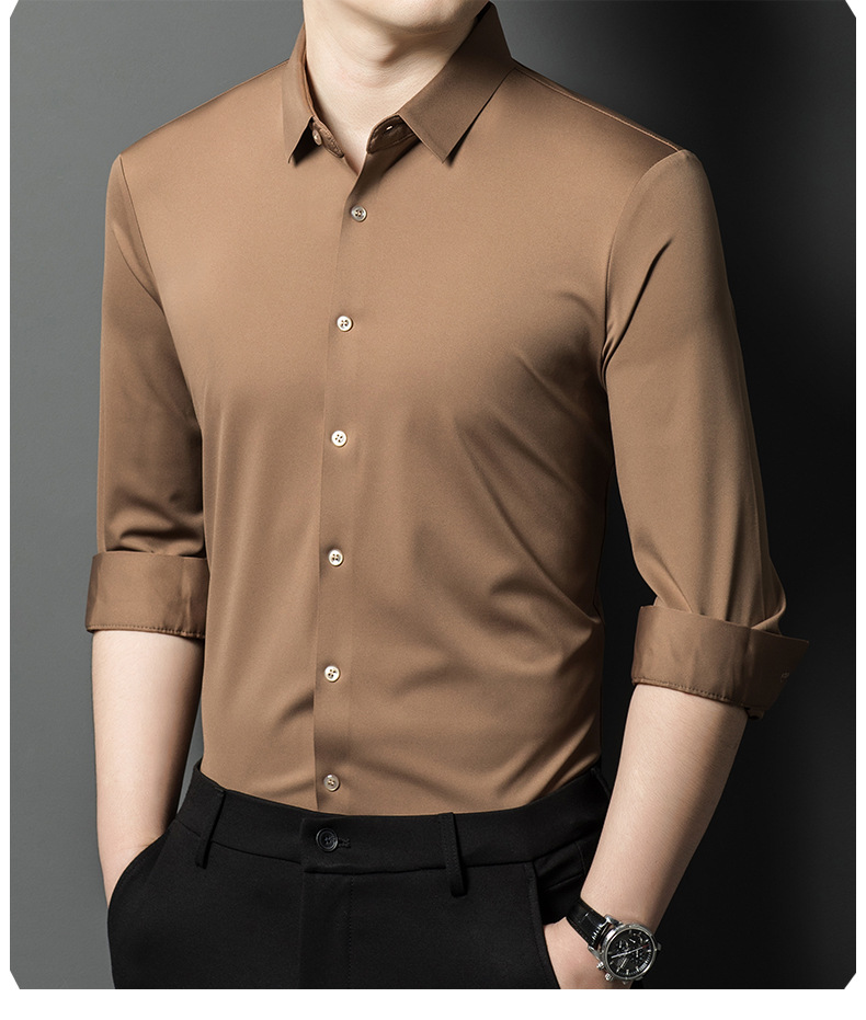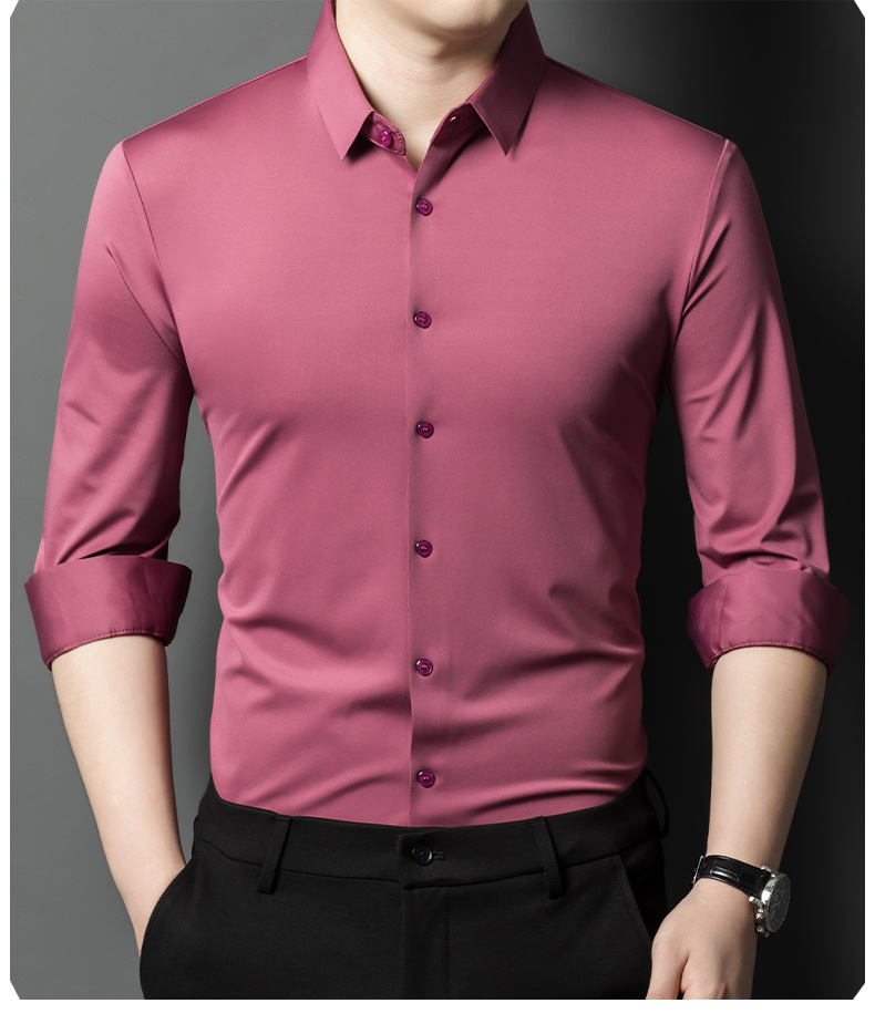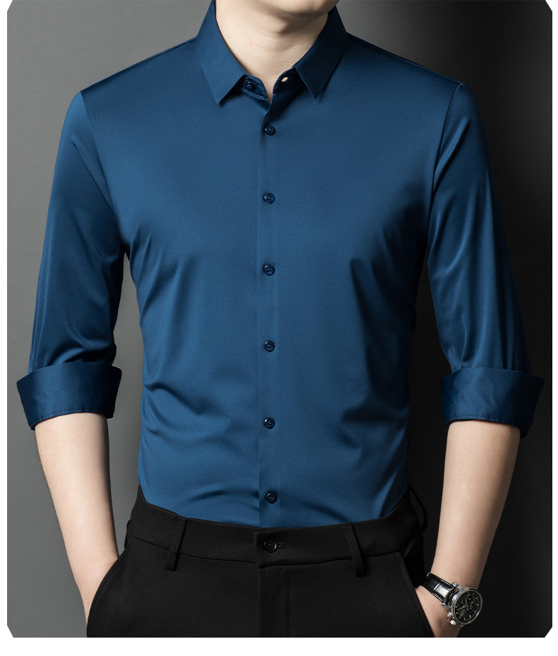 원활한 높은 탄성 남성 빛 럭셔리 스판덱스 원활한 긴 소매 셔츠 하이 퀄리티 비 다림질 부드러운 비즈니스 스타일 패션 셔츠스토어 가기