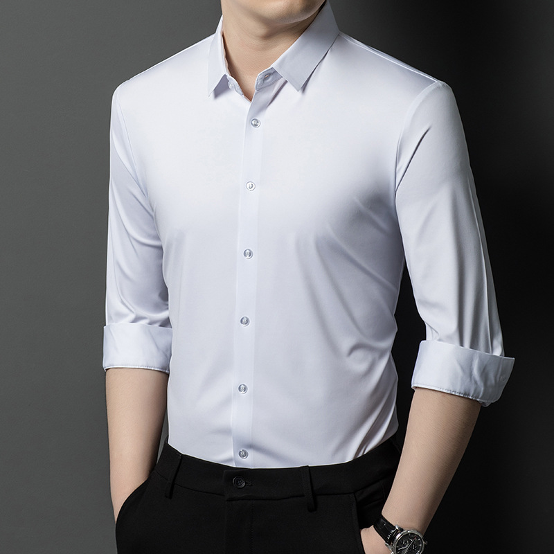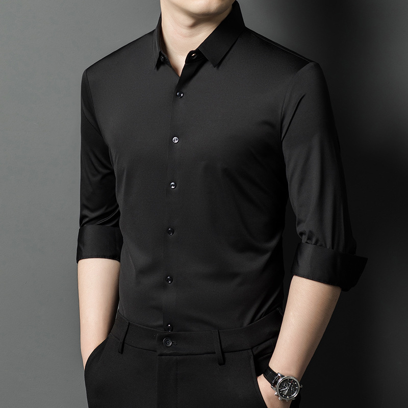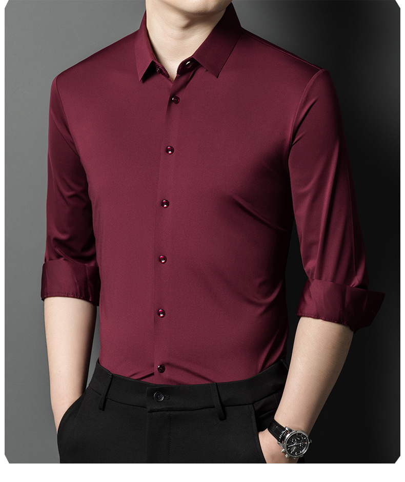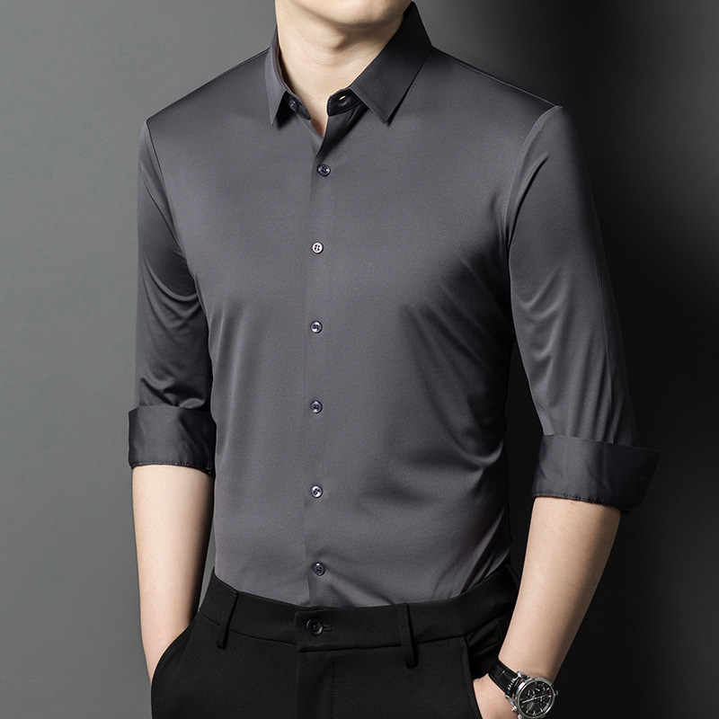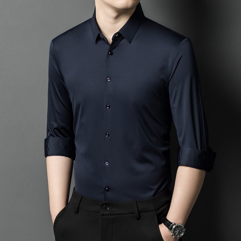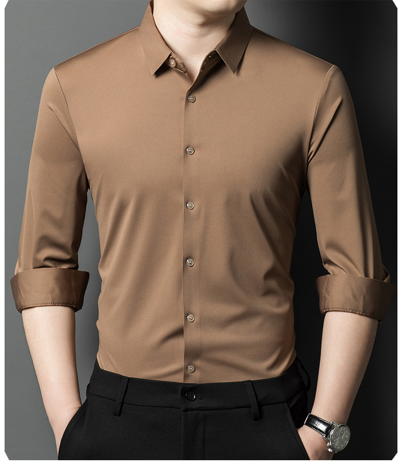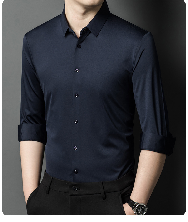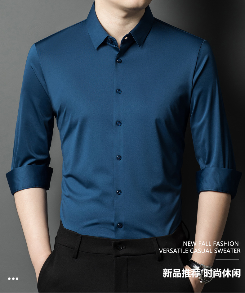 원활한 높은 탄성 남성 빛 럭셔리 스판덱스 원활한 긴 소매 셔츠 하이 퀄리티 비 다림질 부드러운 비즈니스 스타일 패션 셔츠스토어 가기