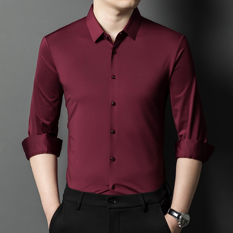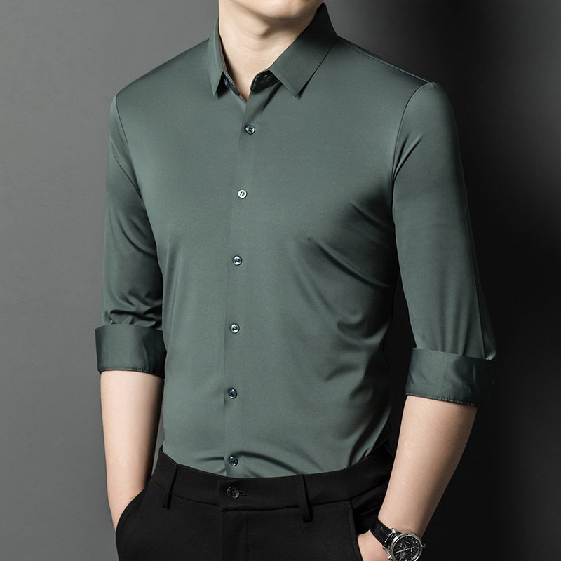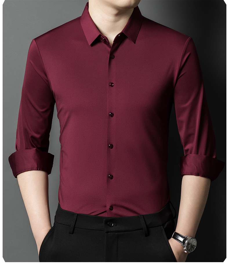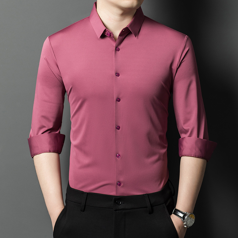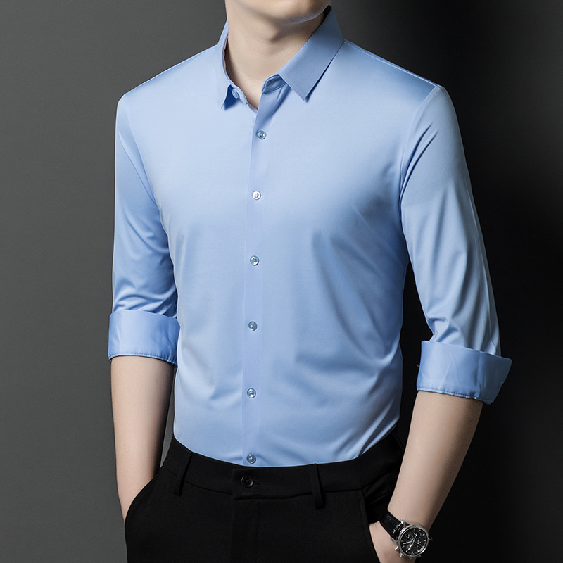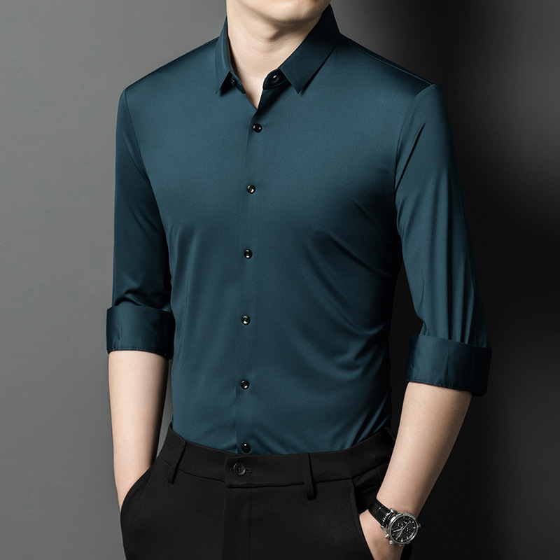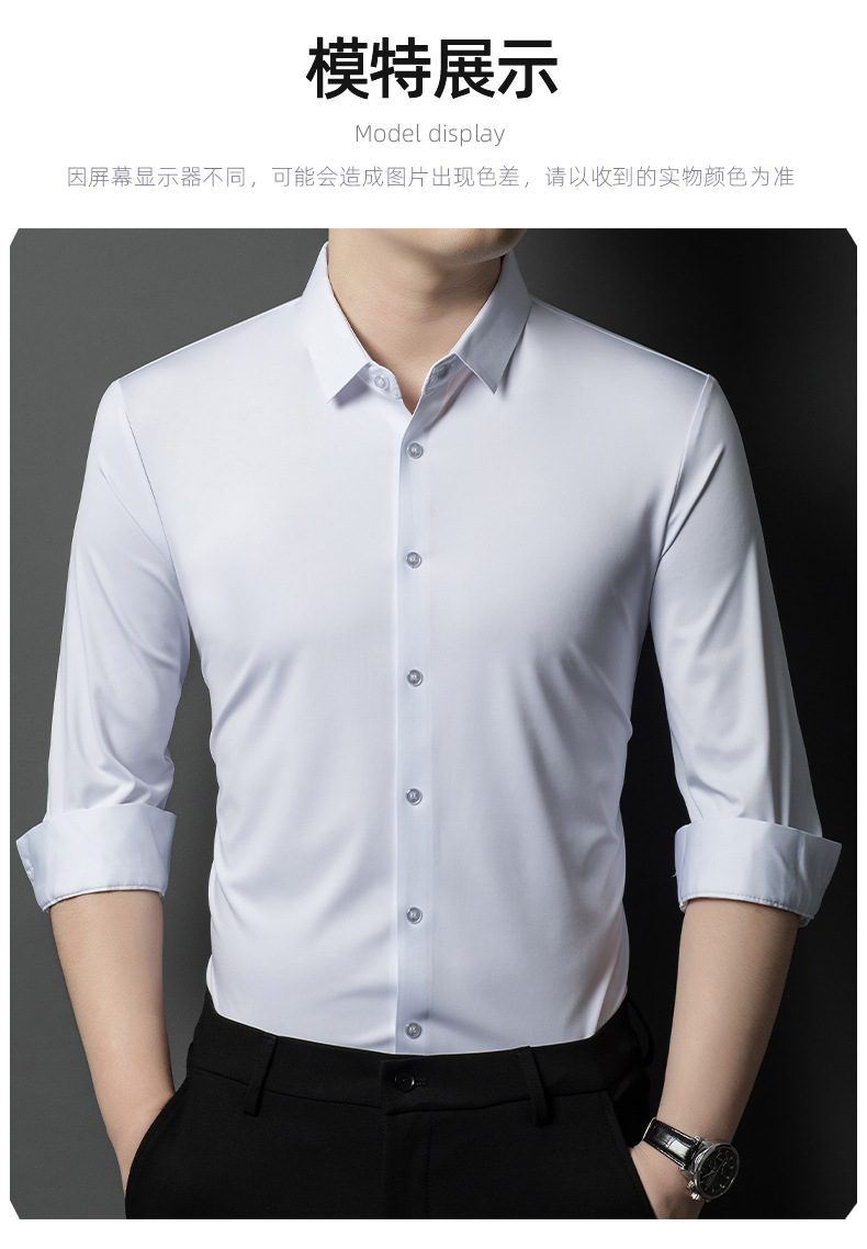 원활한 높은 탄성 남성 빛 럭셔리 스판덱스 원활한 긴 소매 셔츠 하이 퀄리티 비 다림질 부드러운 비즈니스 스타일 패션 셔츠스토어 가기