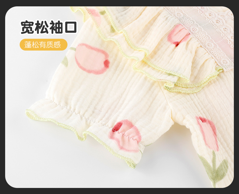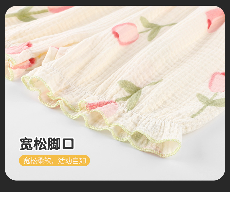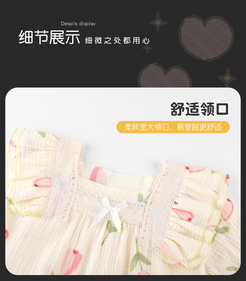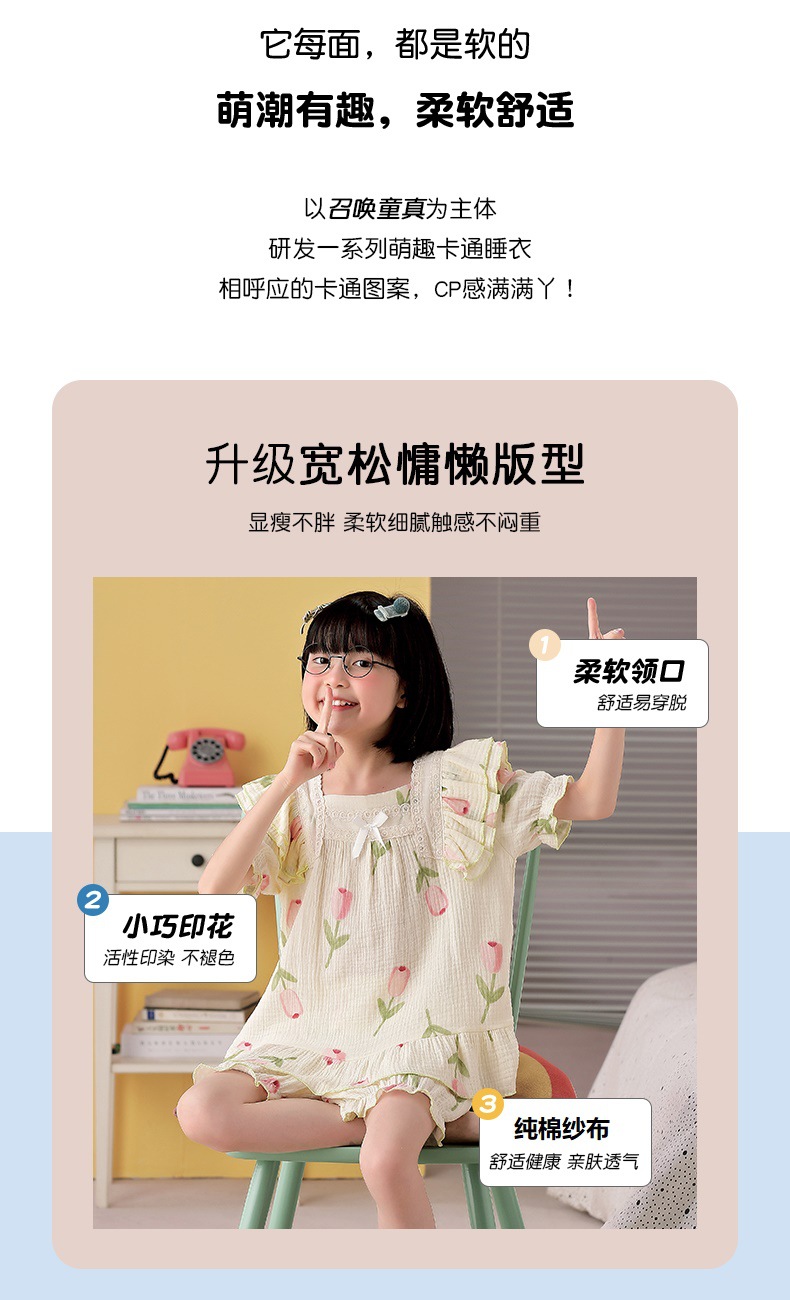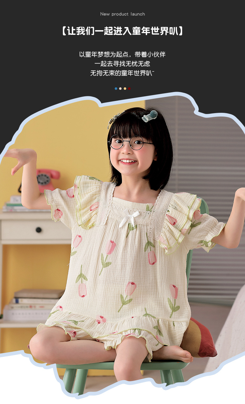 공주 스타일 코튼 거즈 어린이 잠옷 소녀 반팔 학생 귀여운 소녀 여름 홈 의류 세트스토어 가기