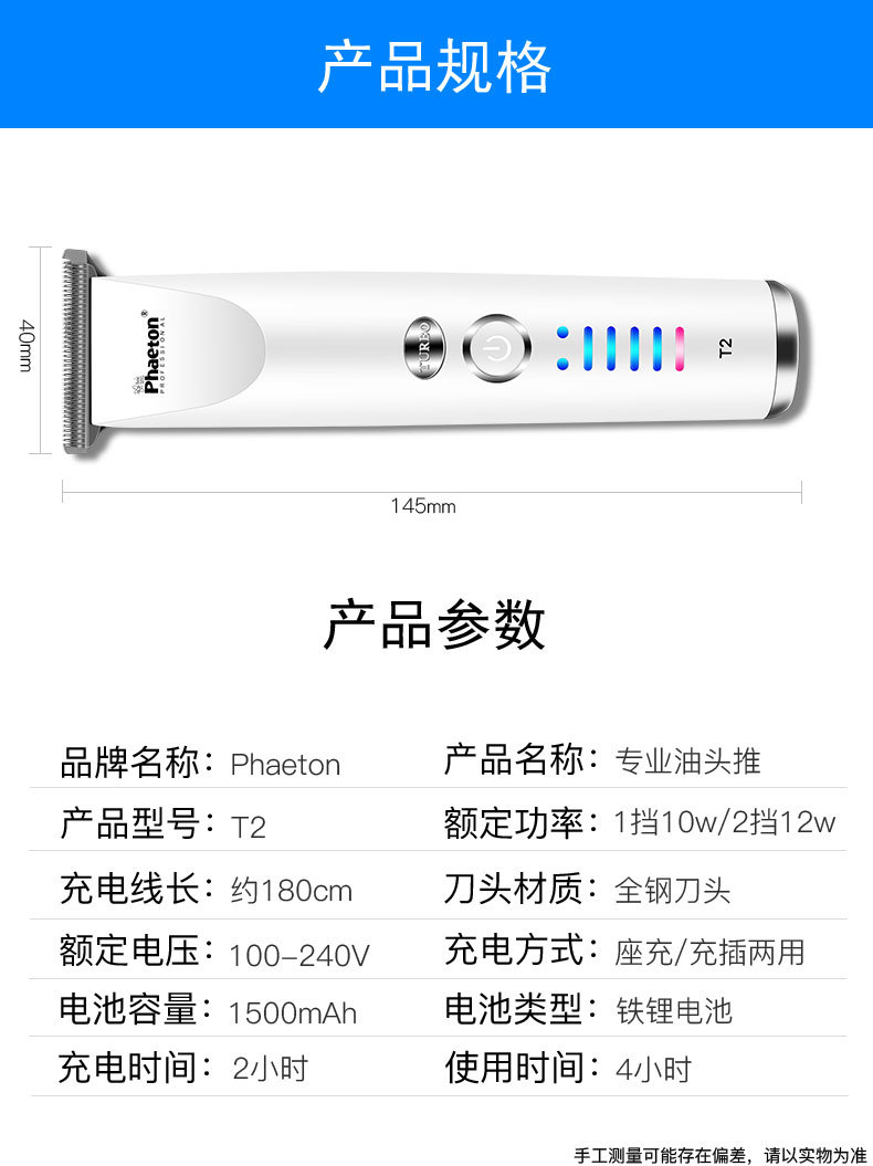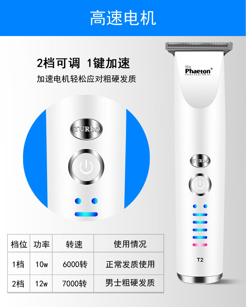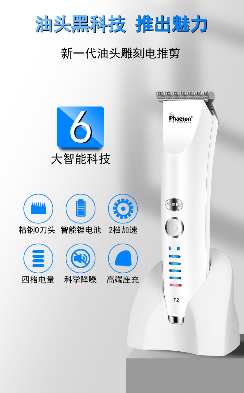 Phaeton T2 레트로 오일 헤드 조각 특수 전기 클리퍼 헤어 살롱 가정용 도매 헤어 클리퍼 충전식 장수