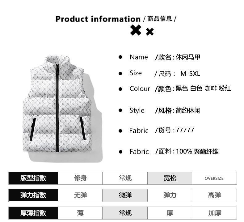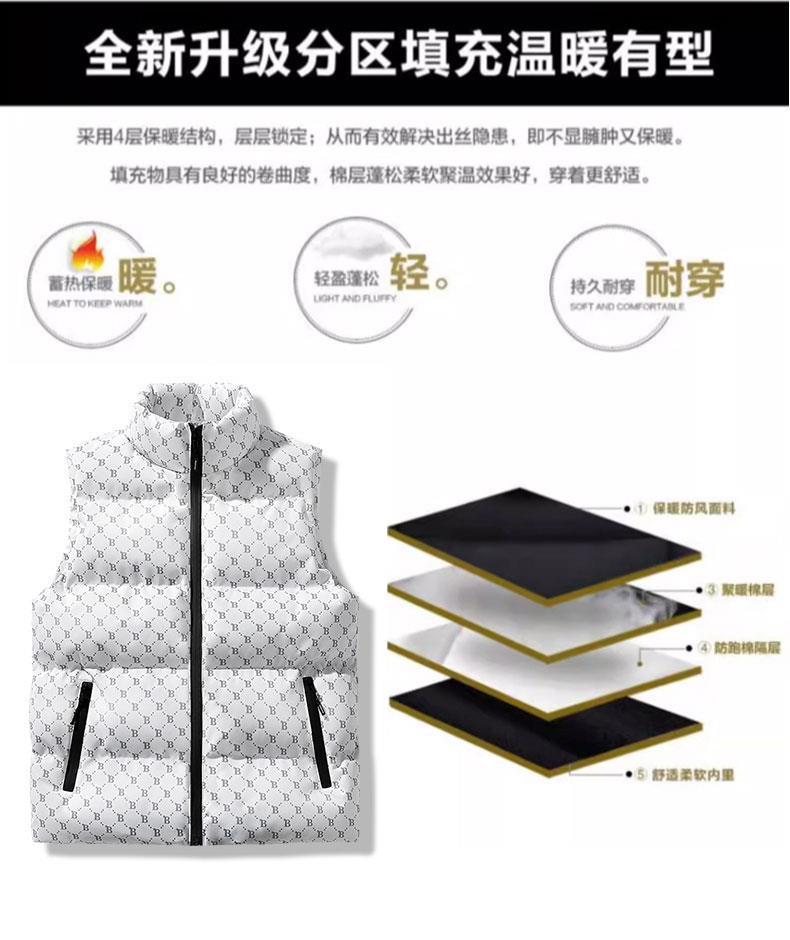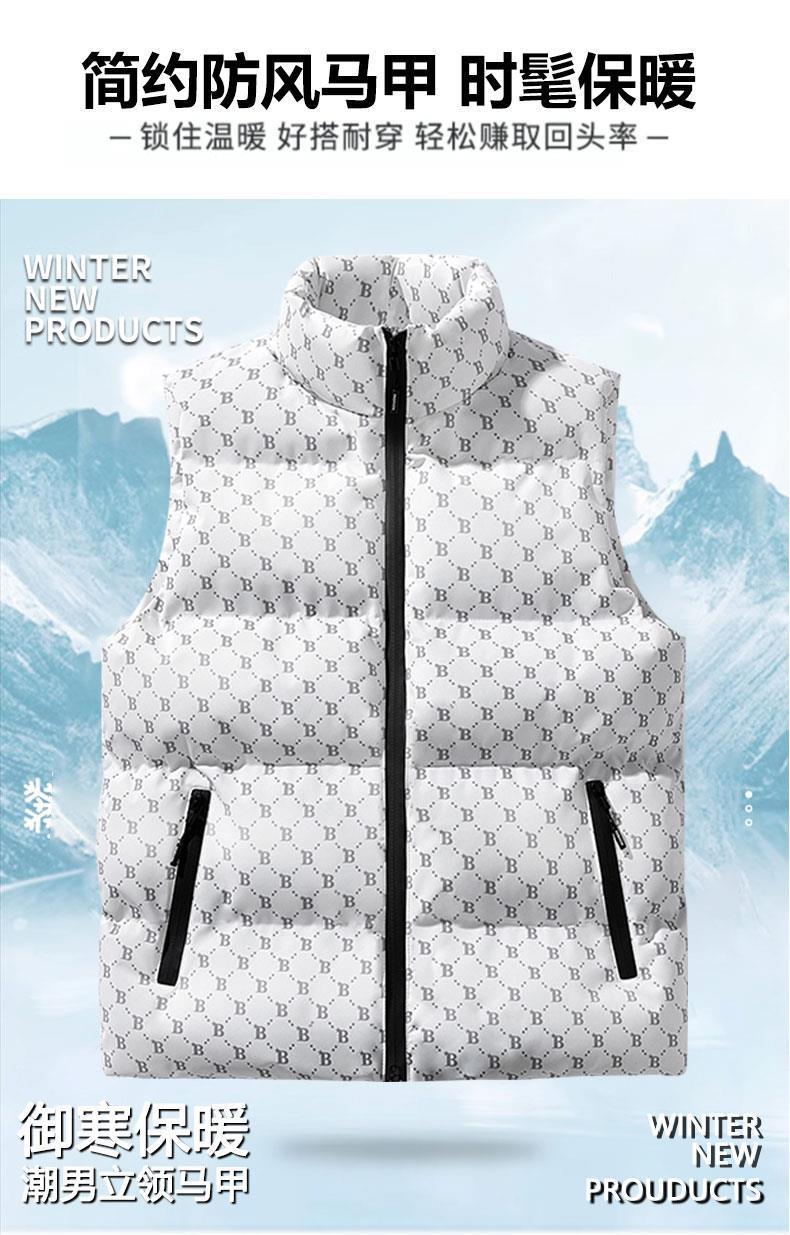 새로운 B-워드 코튼 패딩 조끼 남성용 빵면 패딩 민소매 조끼 두꺼운 따뜻한 조끼 지퍼 포켓 스탠드스토어 가기