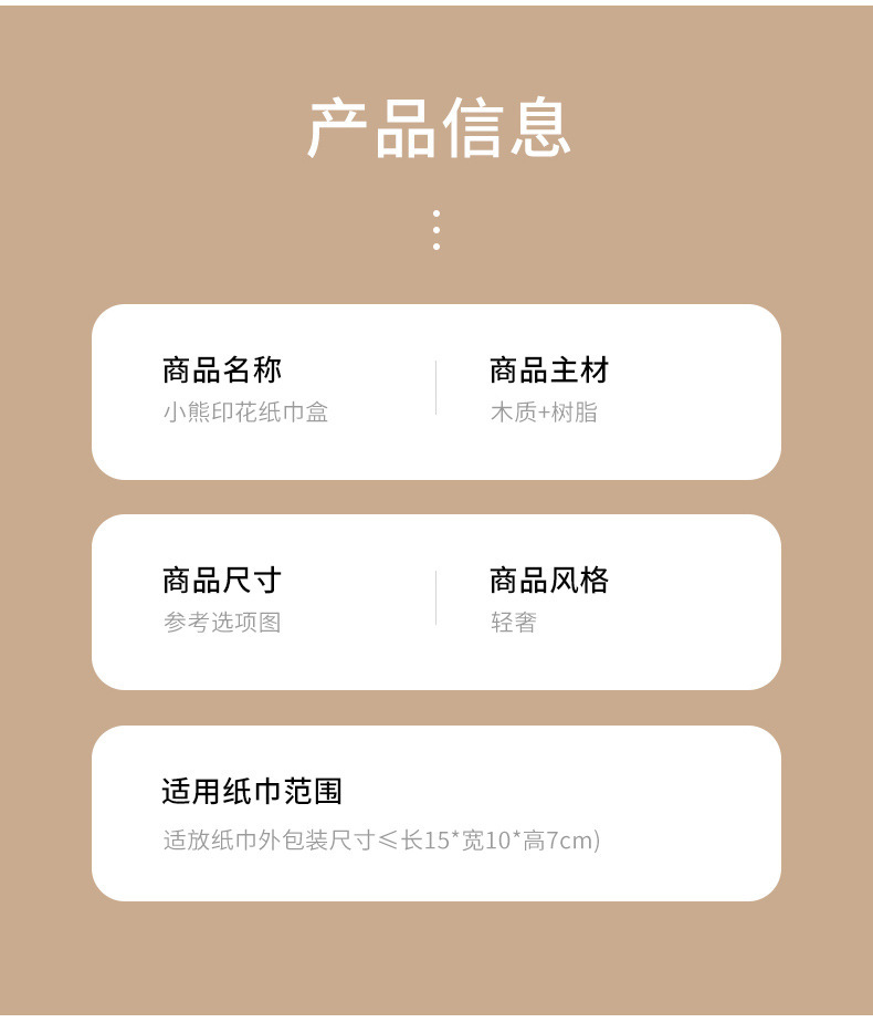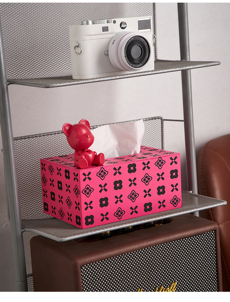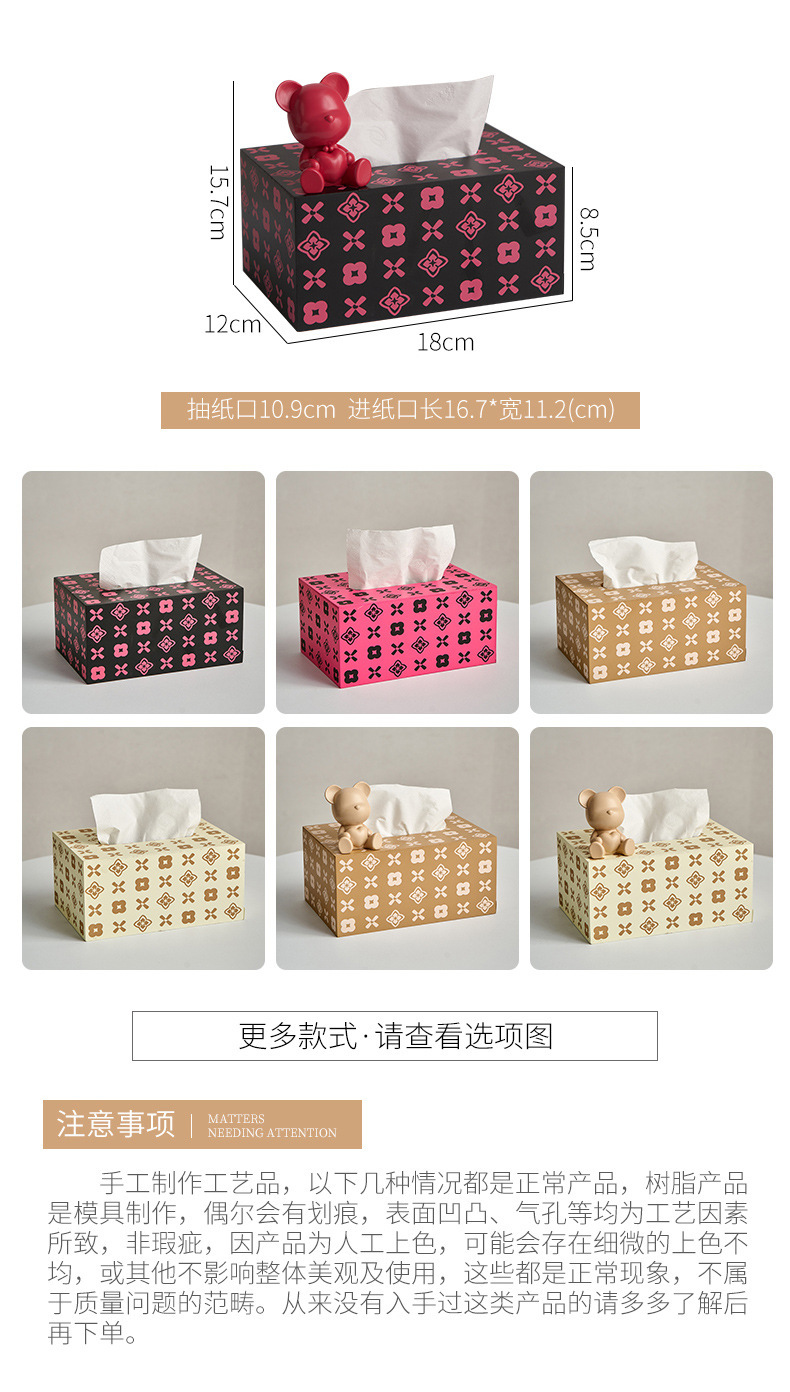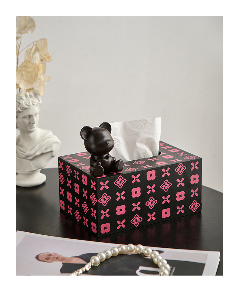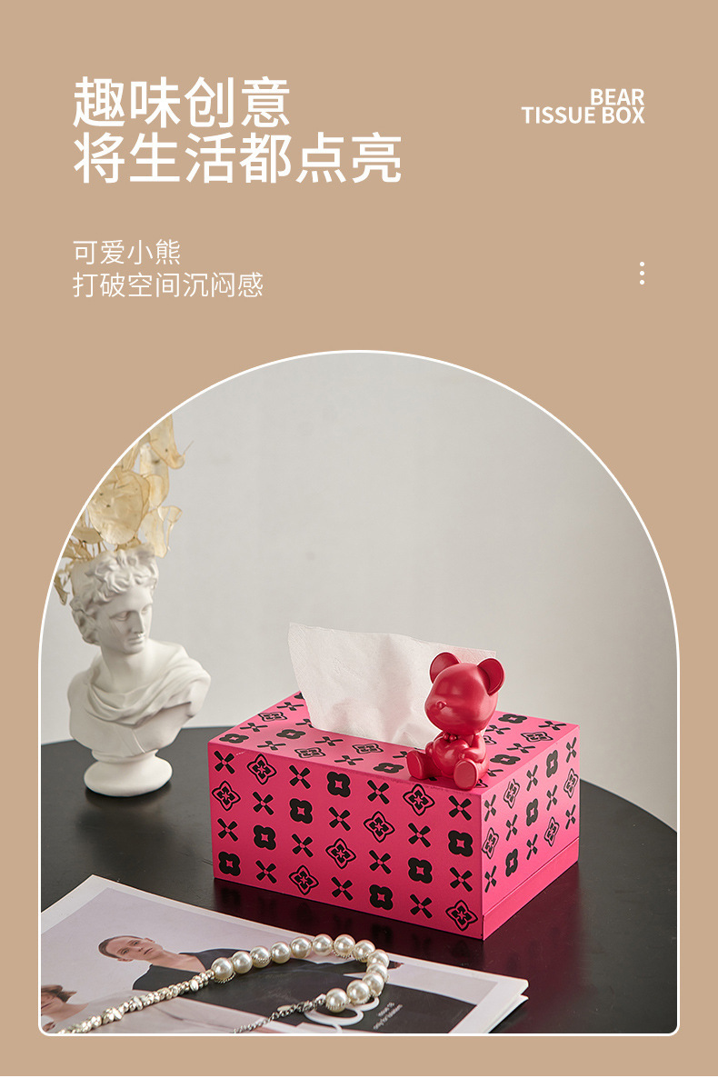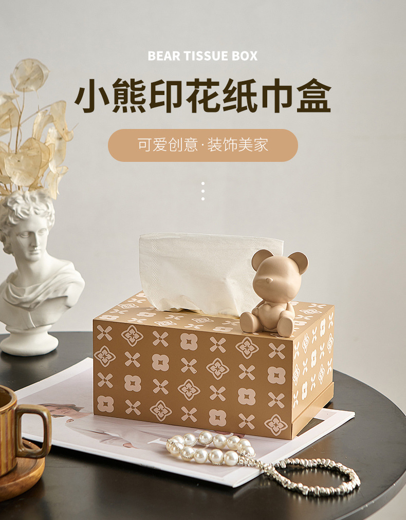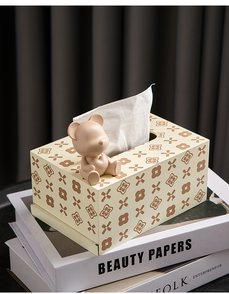 현대 미니멀리스트 곰 티슈 박스 가정용 종이 드로우 백 거실 주방 커피 테이블 장식 가벼운 럭셔리